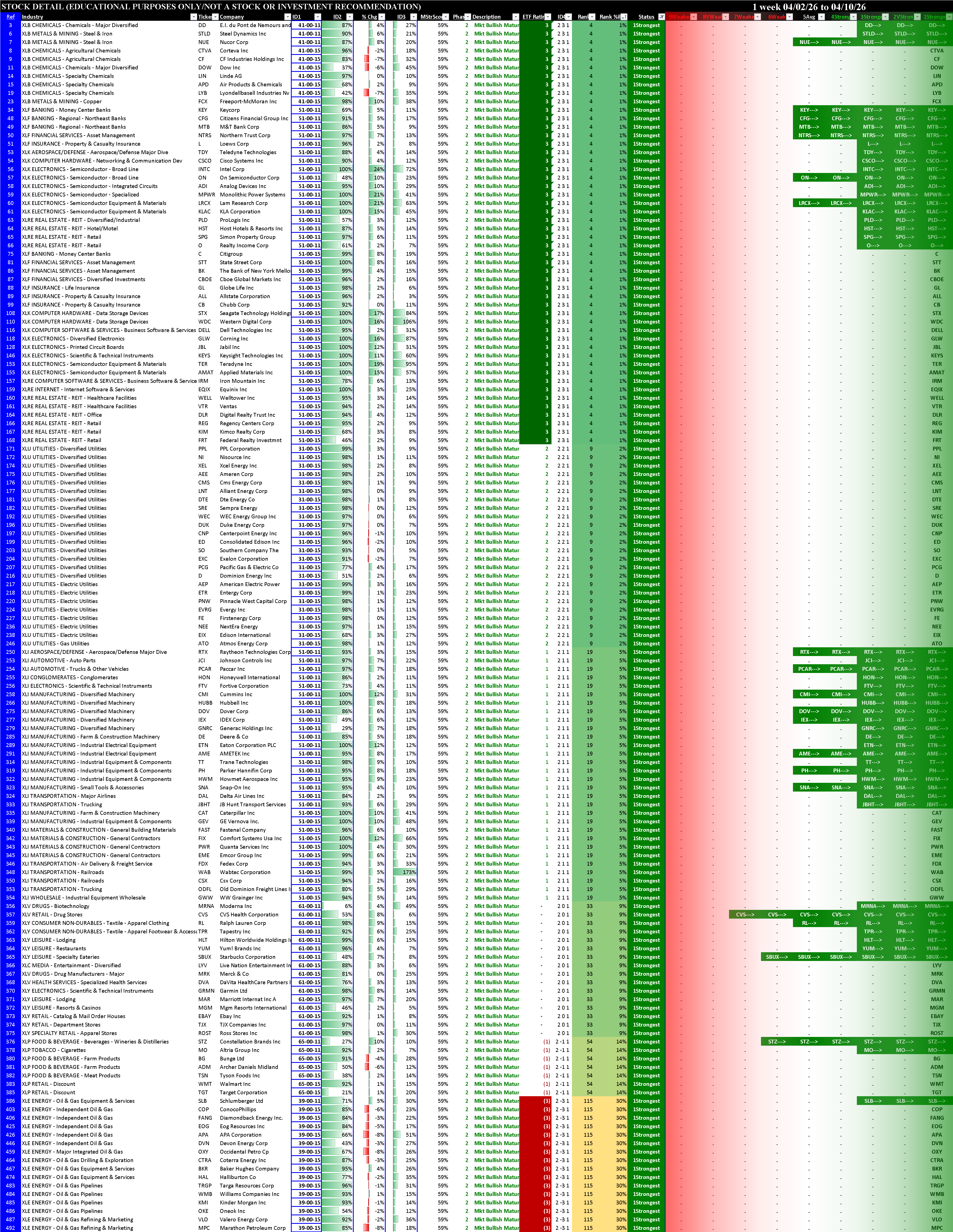 The Market Strength Score is currently +59% in a Bullish Maturing Phase. Changed to positive as of last Wednesday, April 1 and turbocharged with the cease-fire.