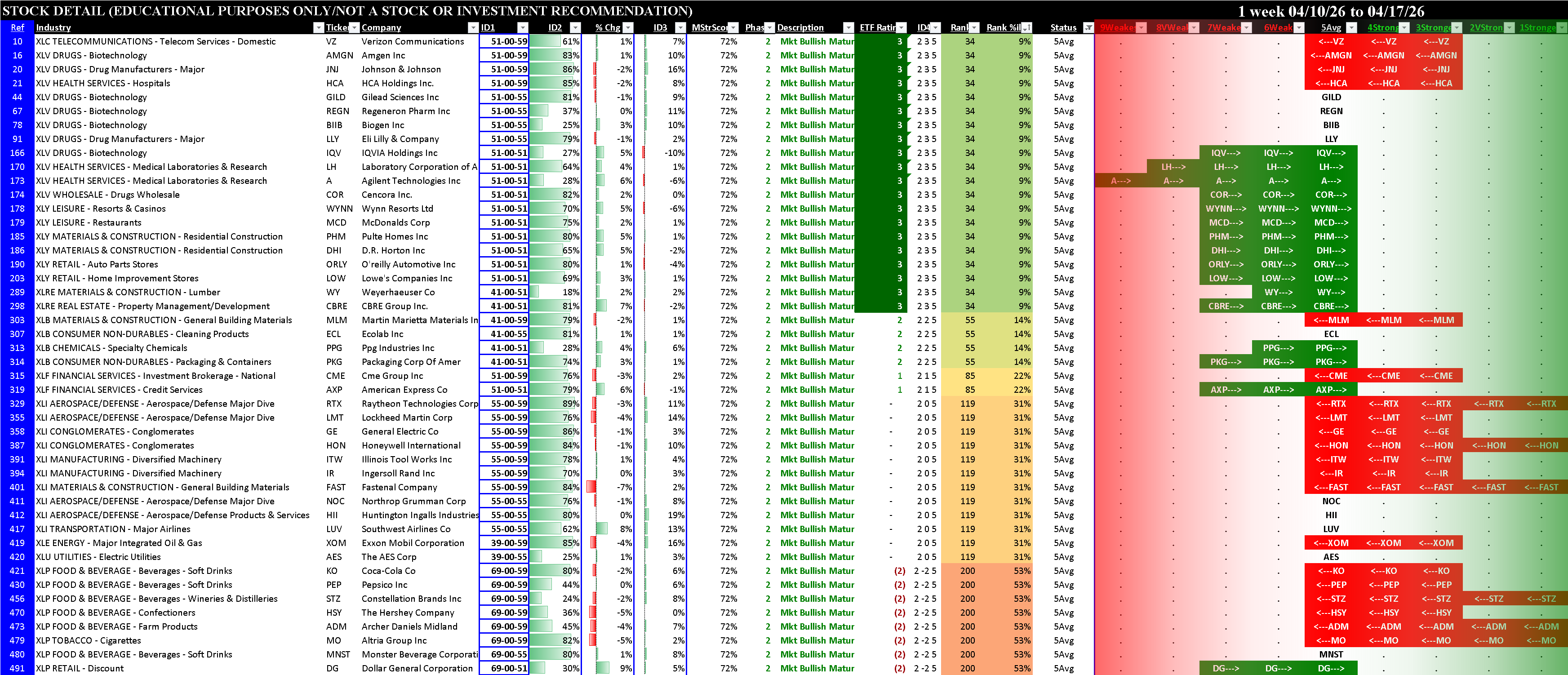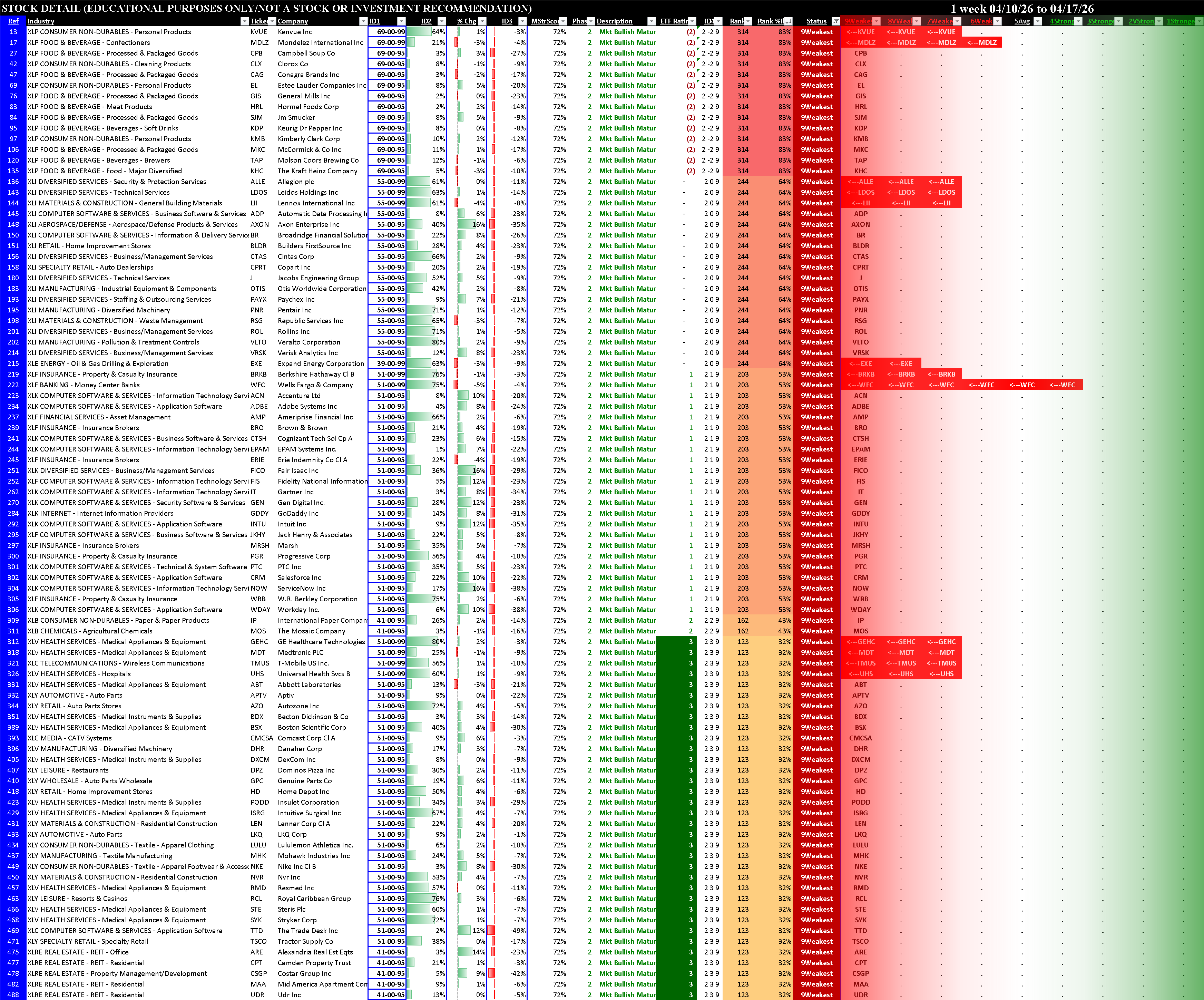 Sector ETFs Stocks Rated 1Strongest and 9Weakest