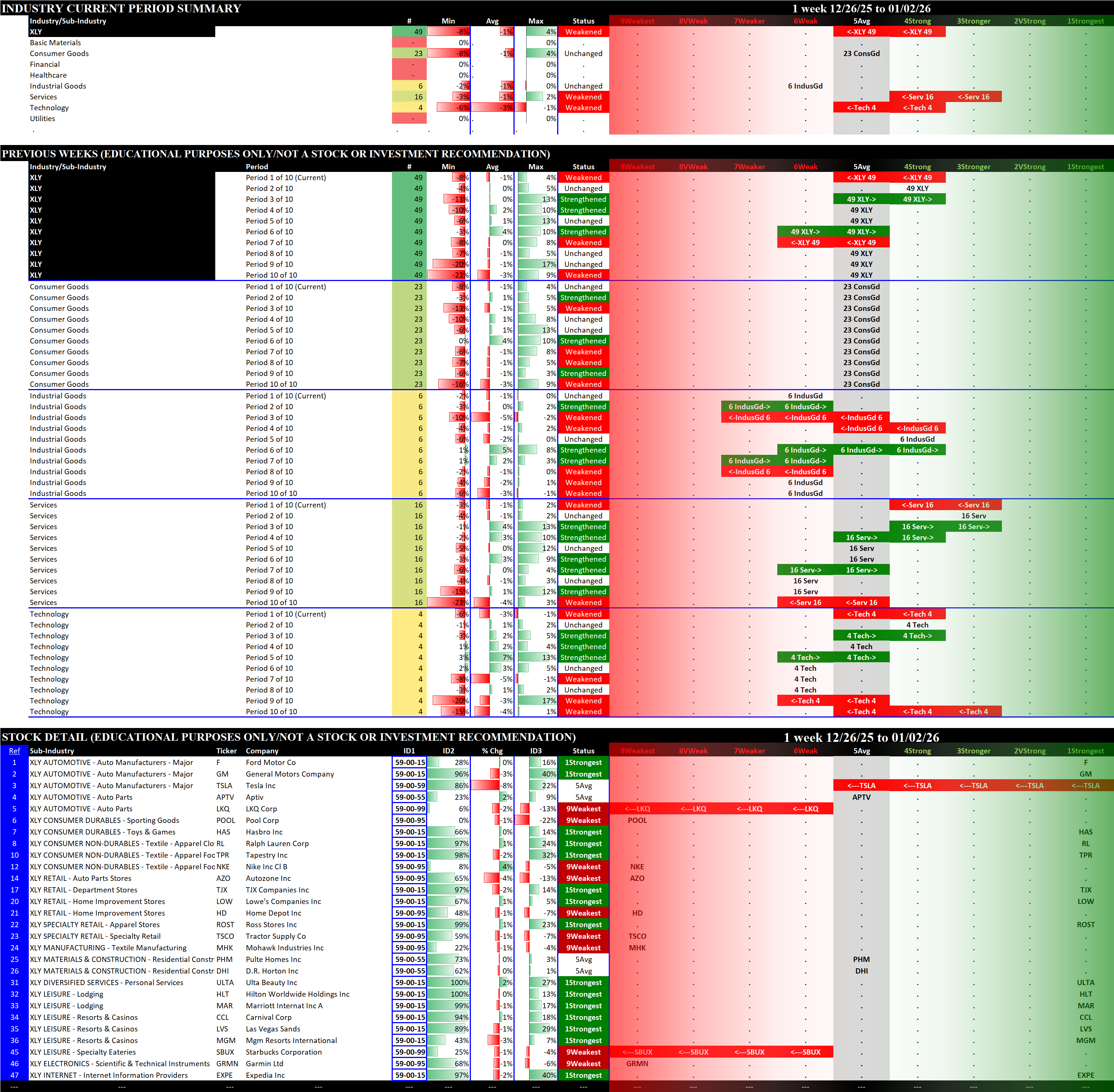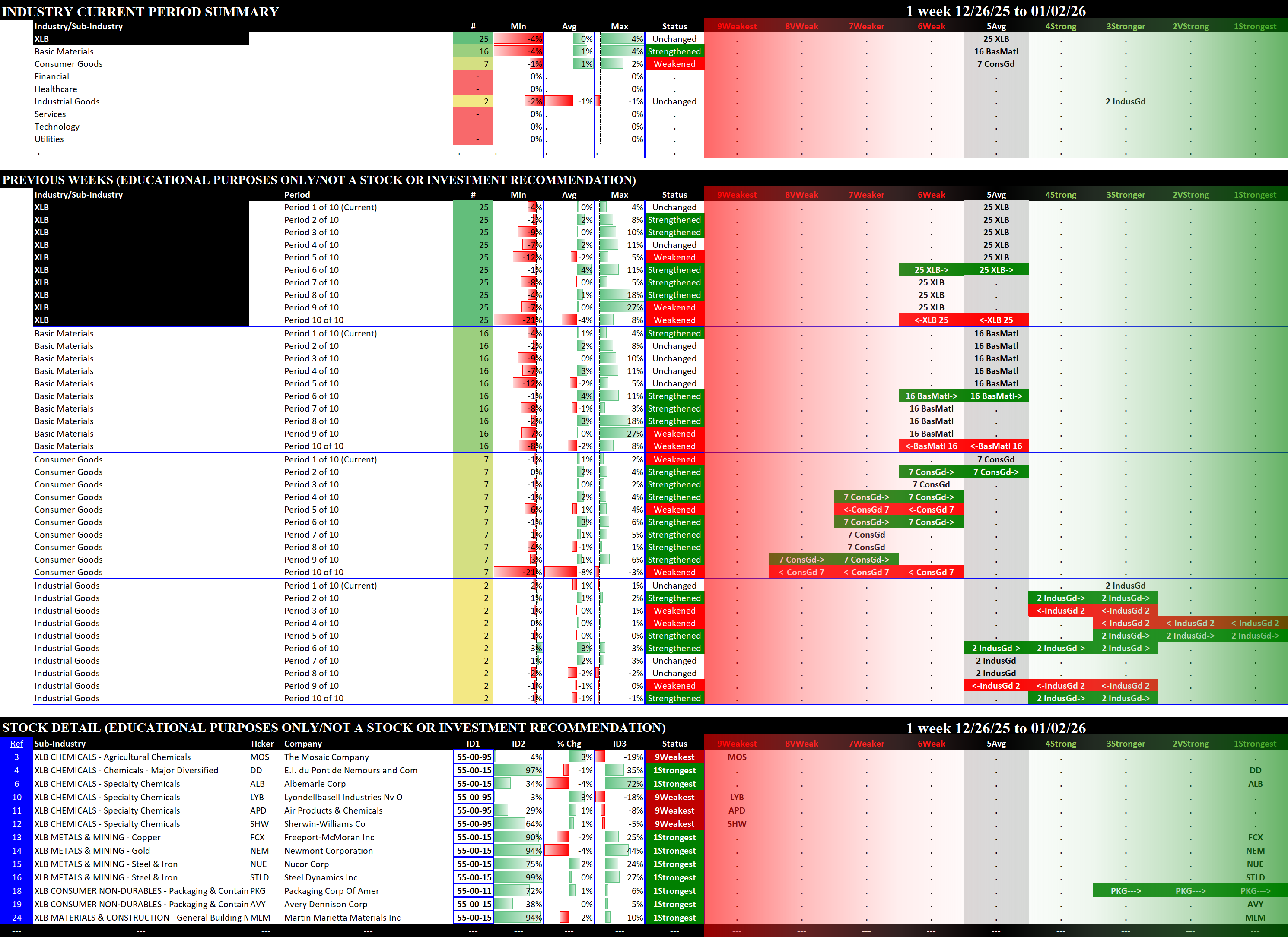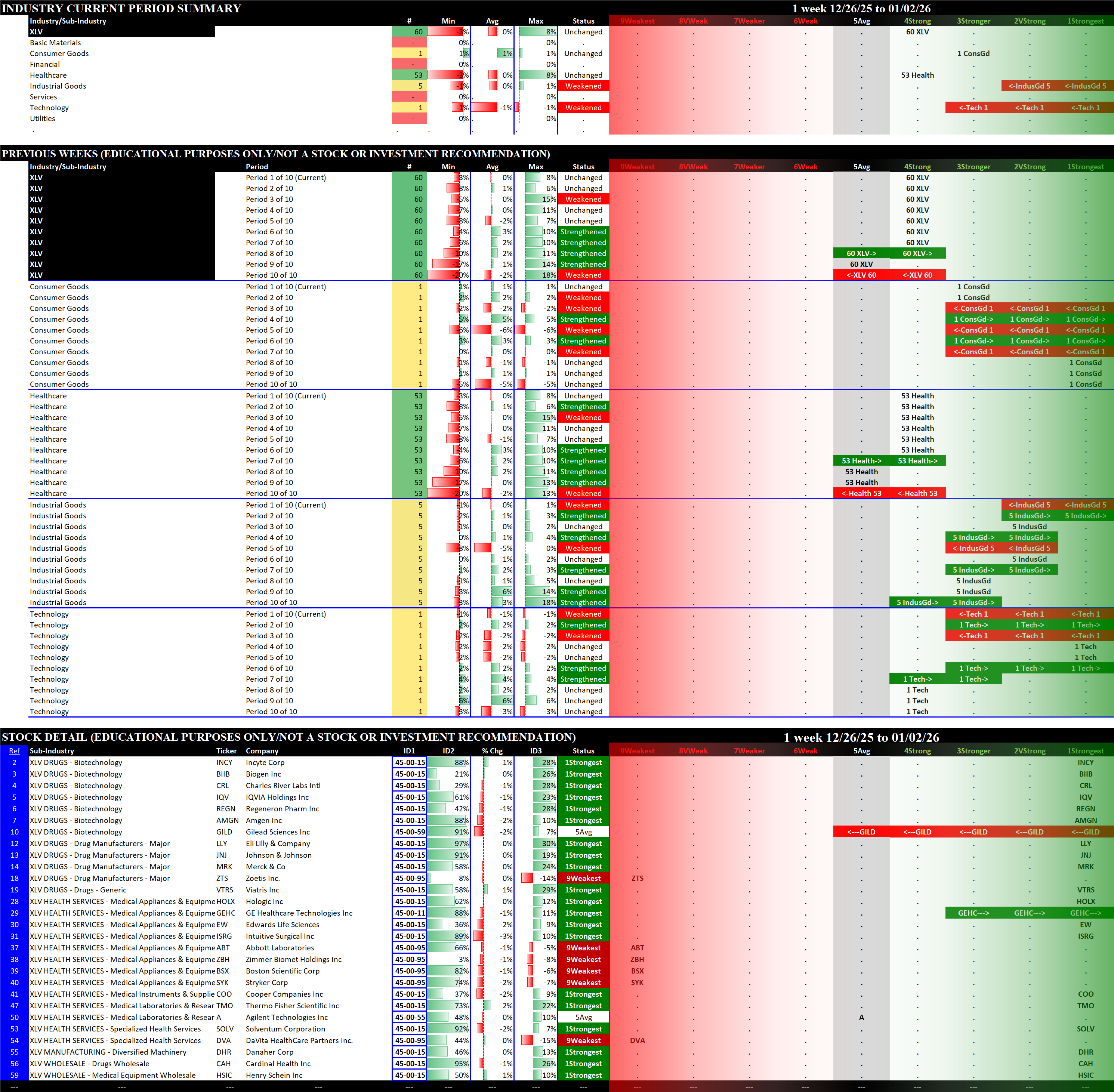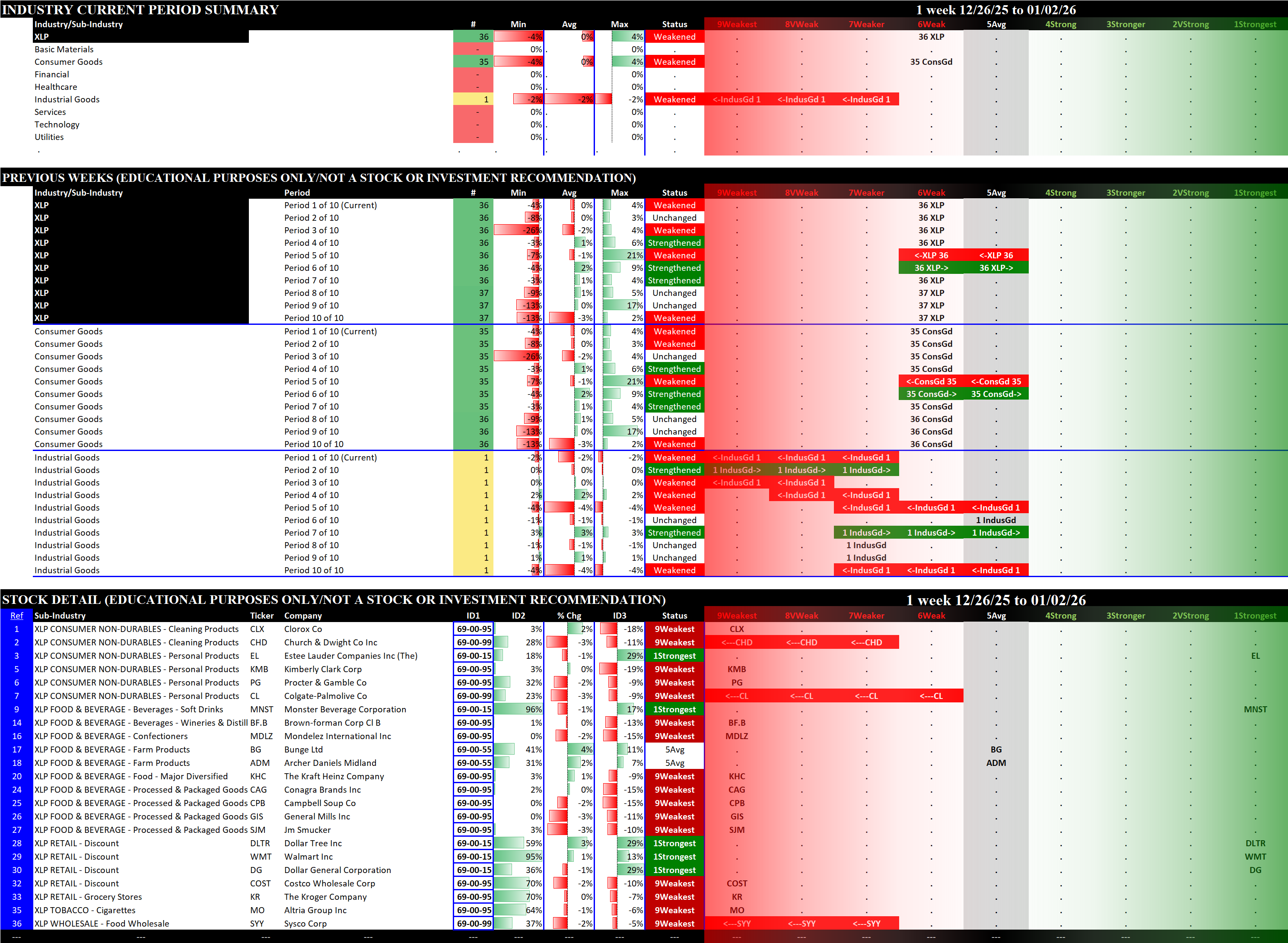 Referred to as Spectrum format (these are presented as the spectrum of possibilities from 9Weakest to 1Strongest), here are the raw strength readings for each sector with their change for the just-completed week: