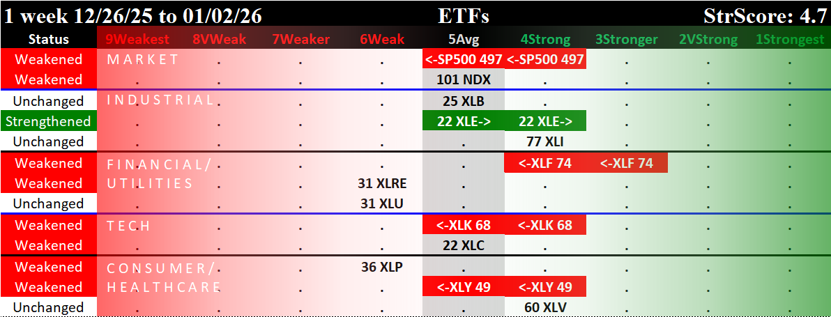 The Market Strength Score changed to negative = Bearish as of Tuesday, December 30, 2025.