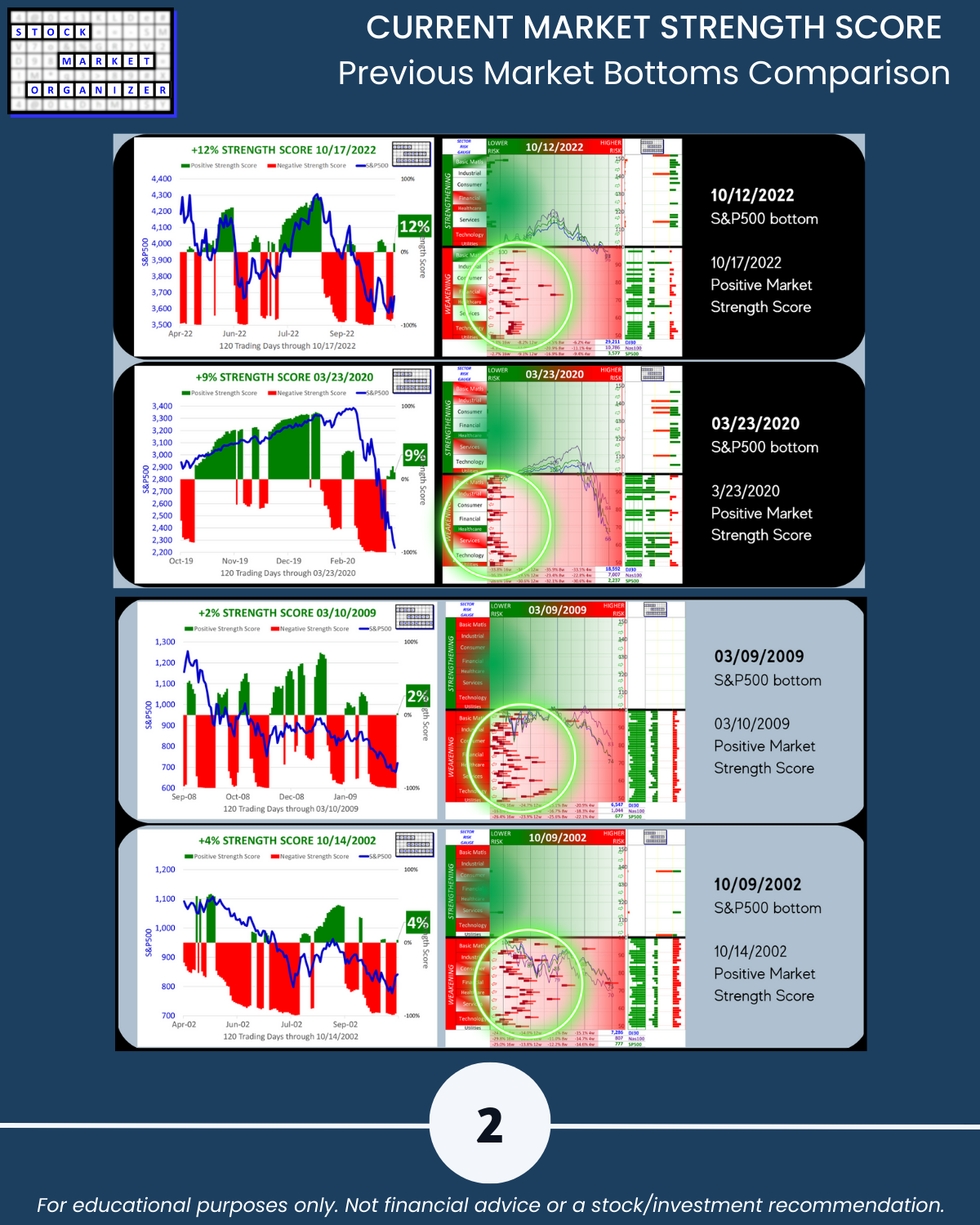 Given the negative strength score, Page 2 shows what bottoms have historically looked like through a Sector Risk Gauge perspective.
