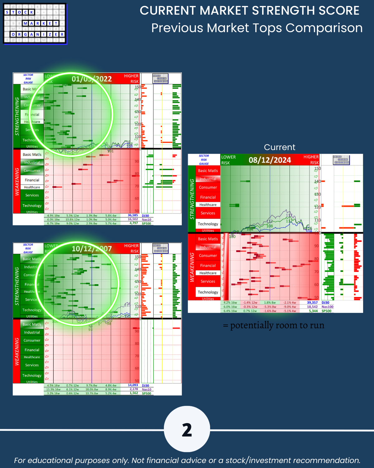 Given the positive strength score, Page 2 shows what tops have historically looked like through a Sector Risk Gauge perspective.