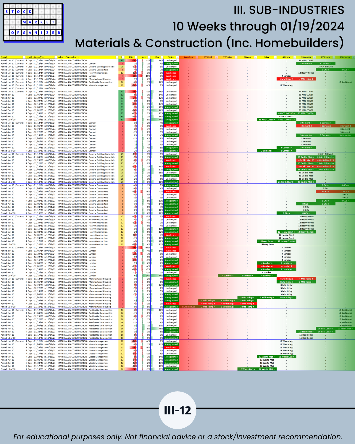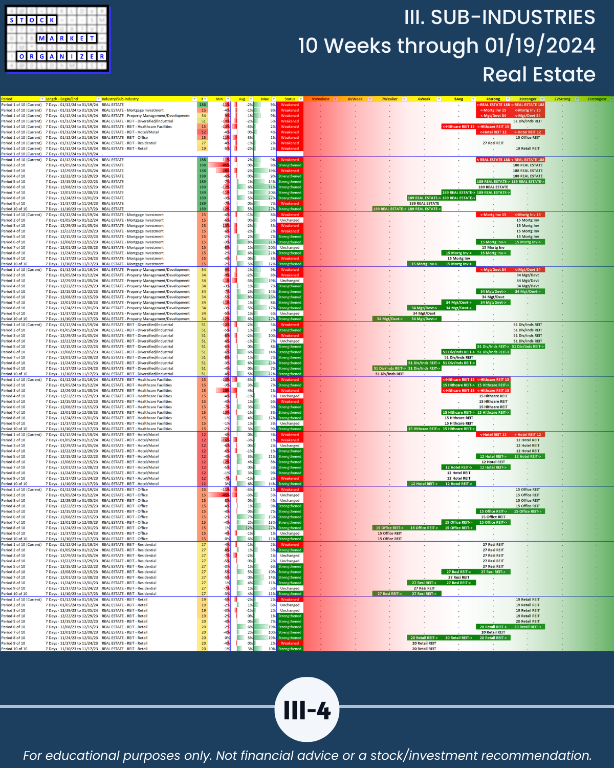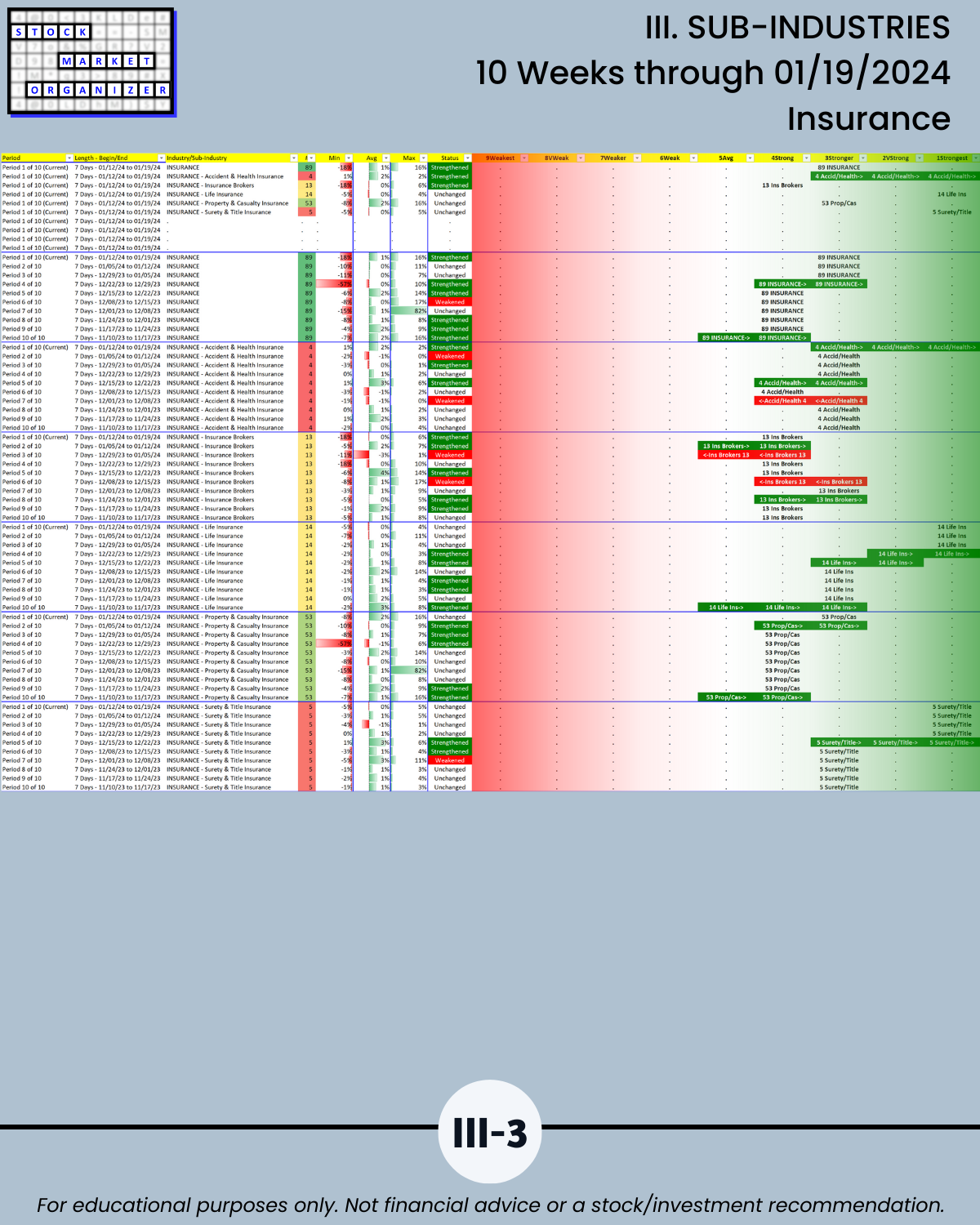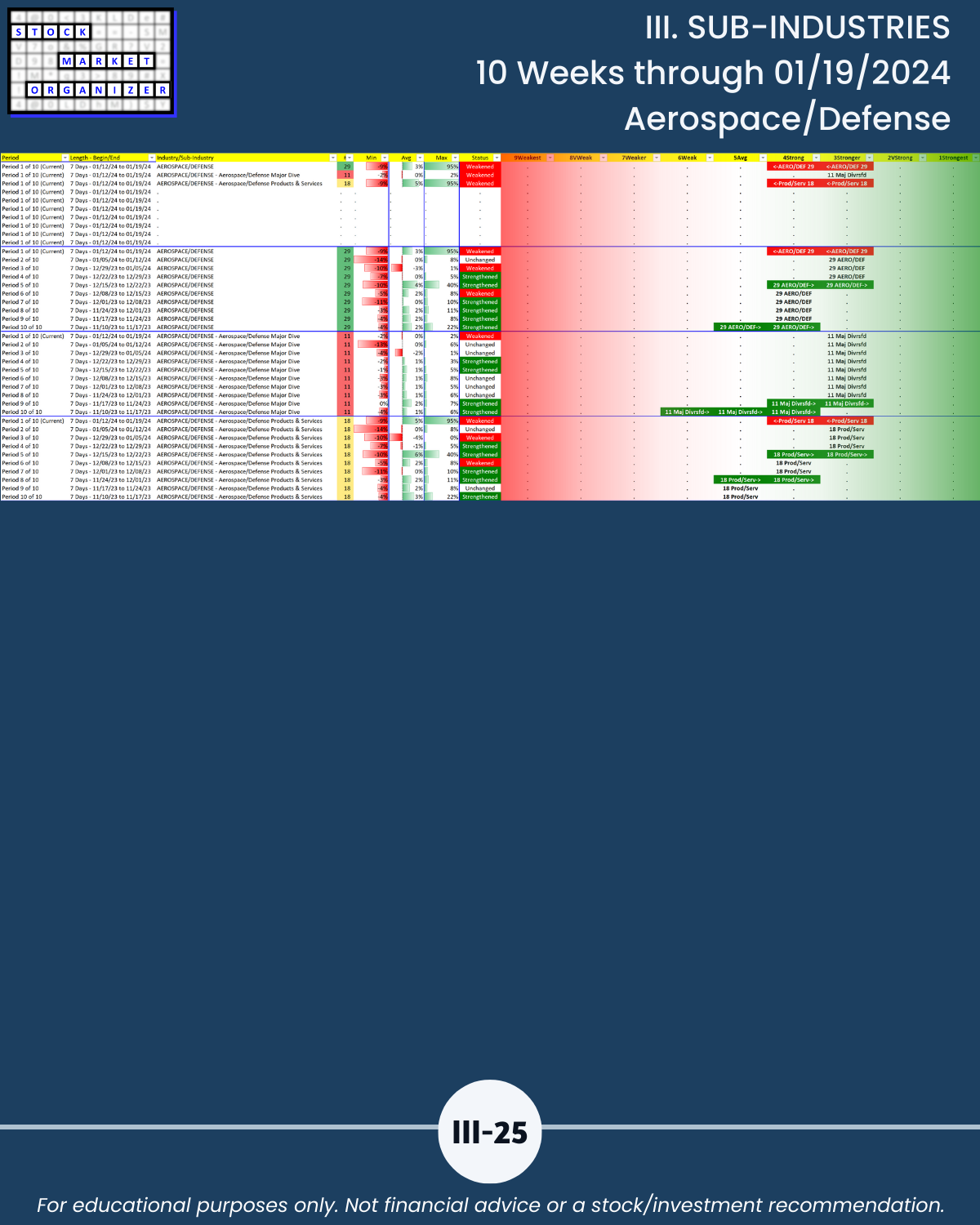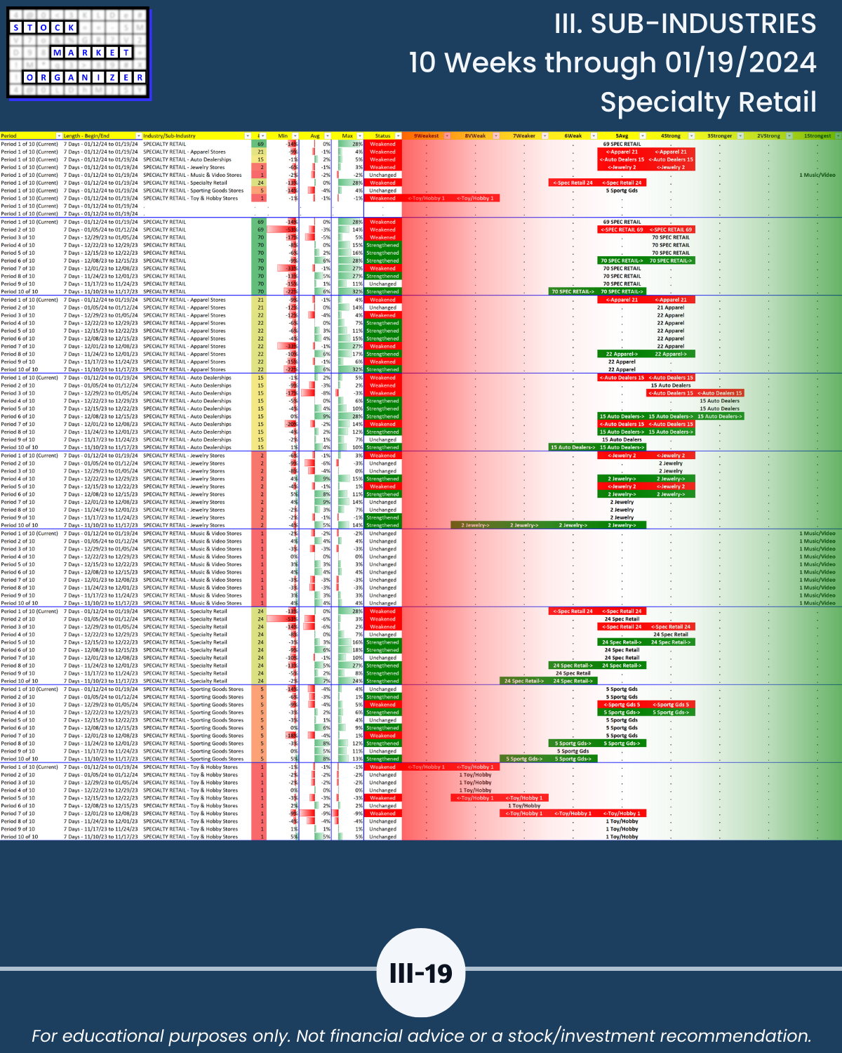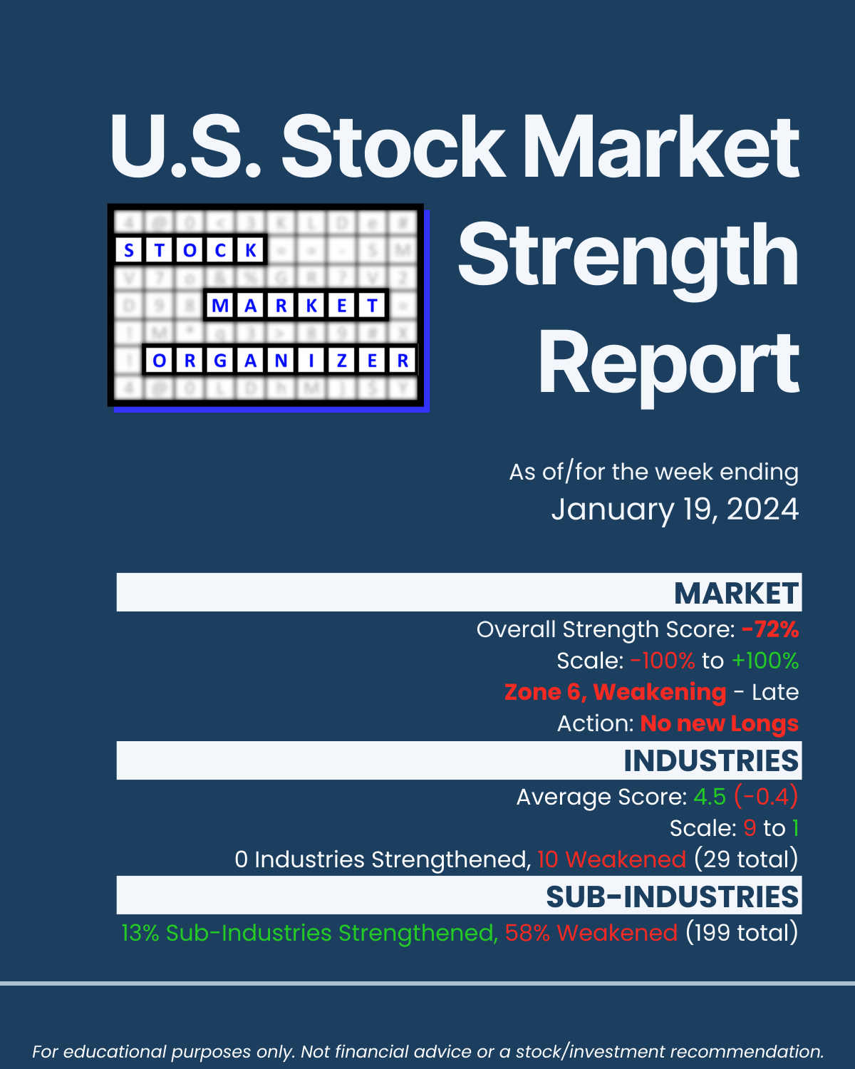 🔹 12/29/23 = 12 industries rated Stronger (3rd strongest of 9 levels), 1/19/24 = 4