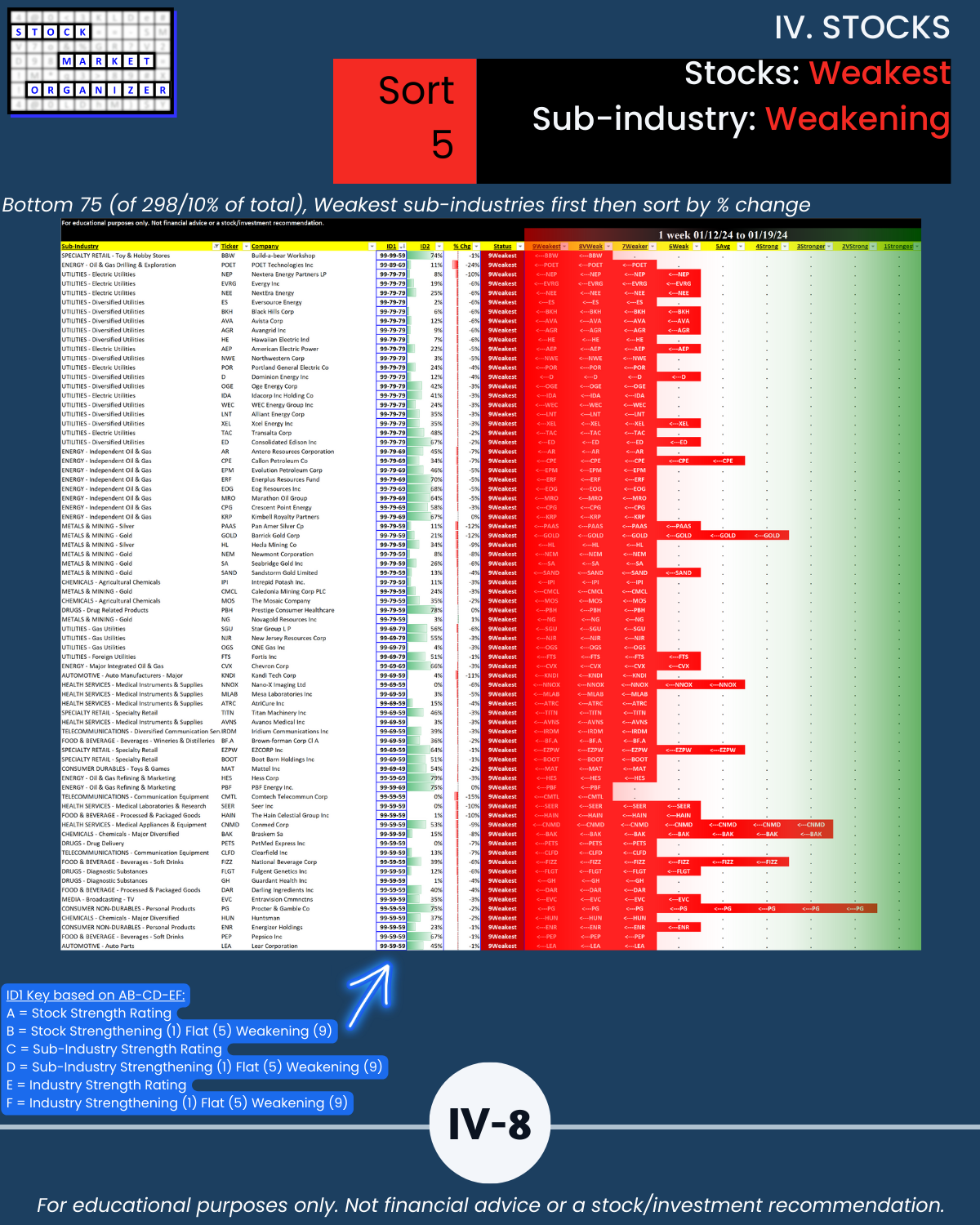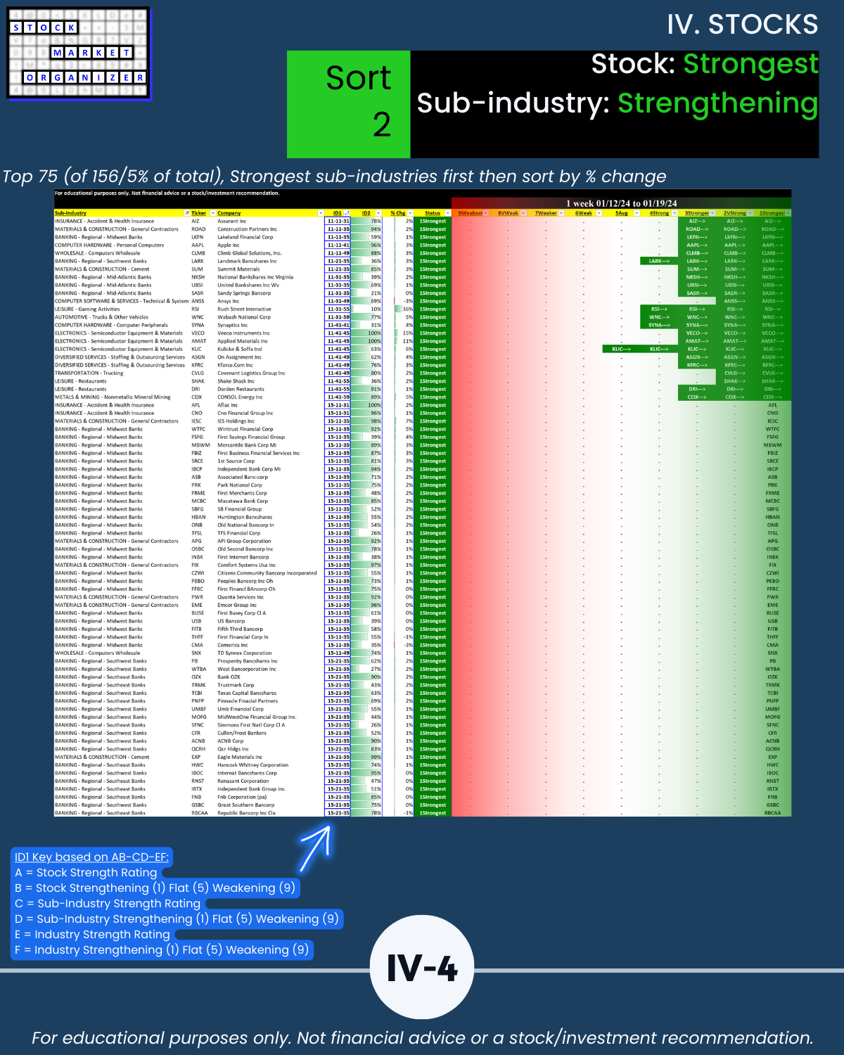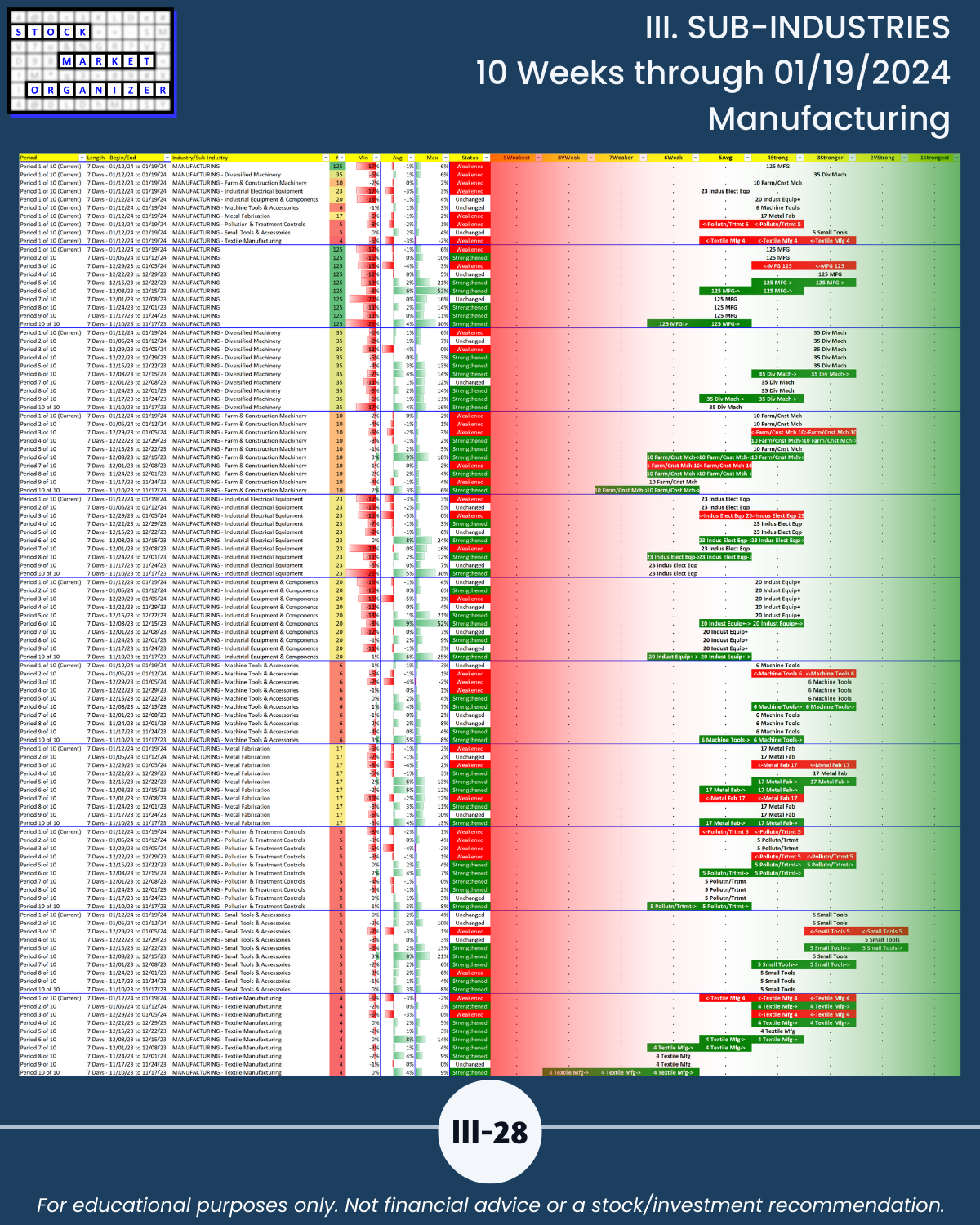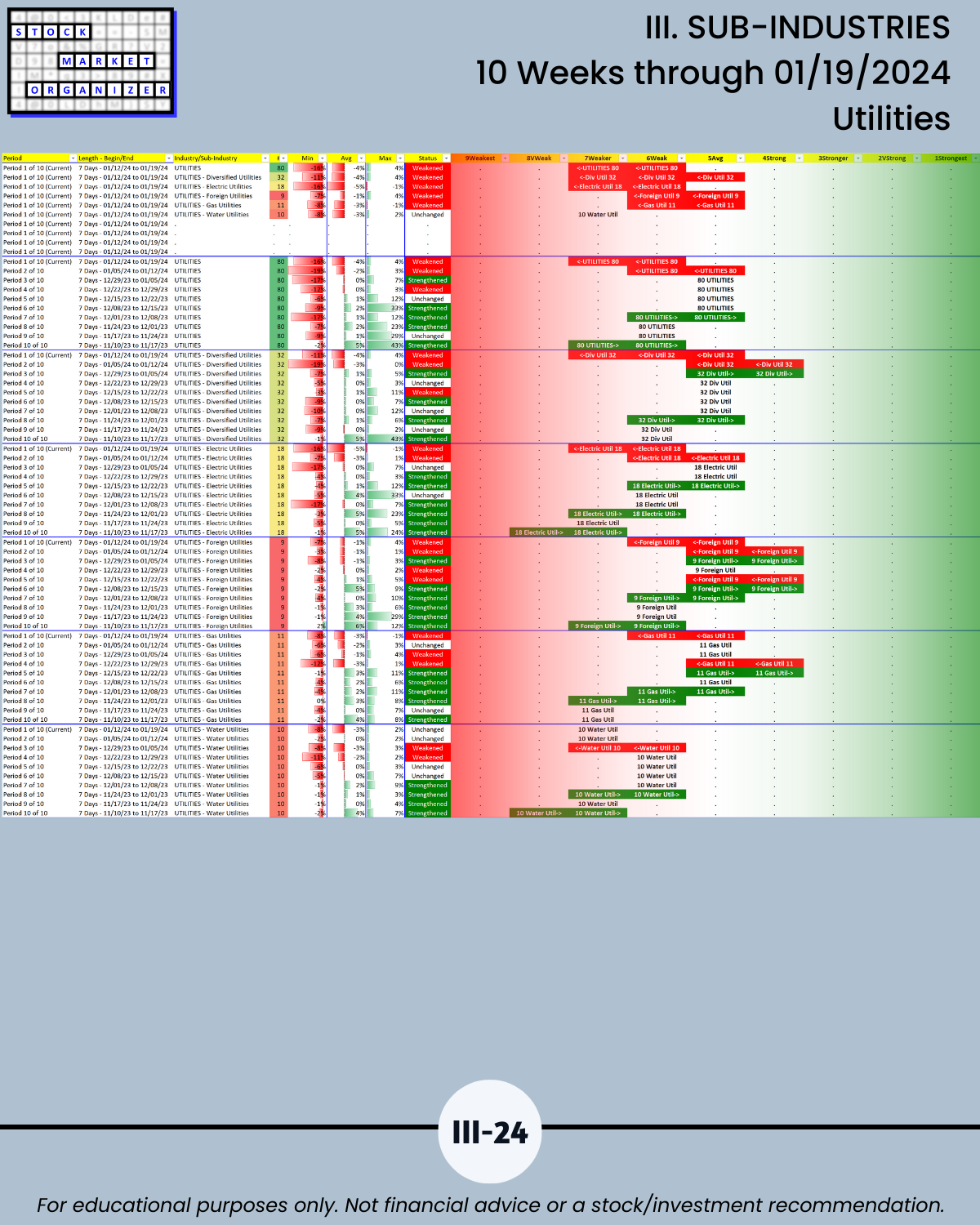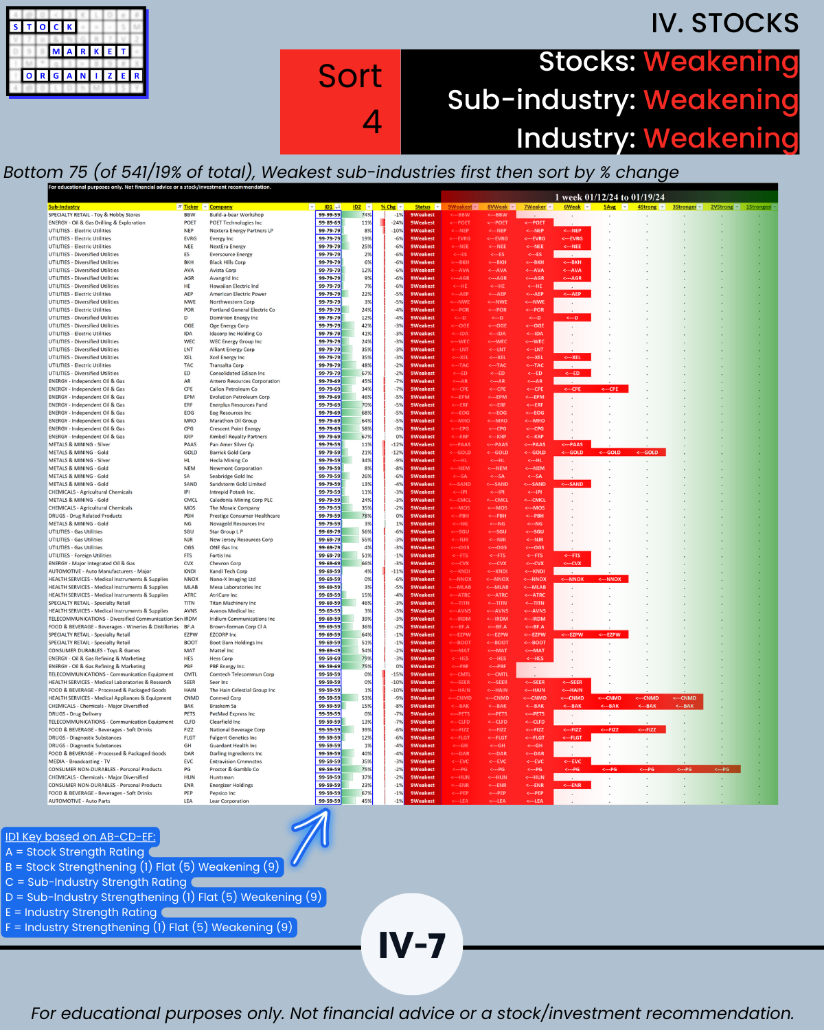 🔹 12/29/23 = 12 industries rated Stronger (3rd strongest of 9 levels), 1/19/24 = 4