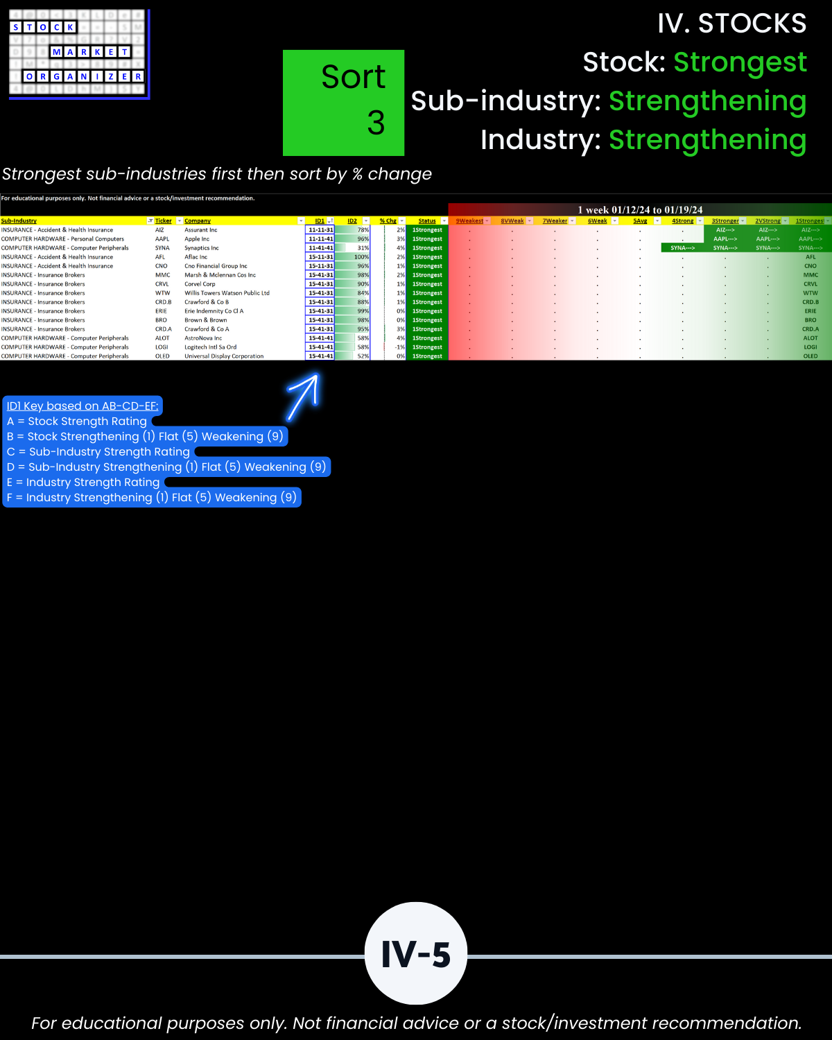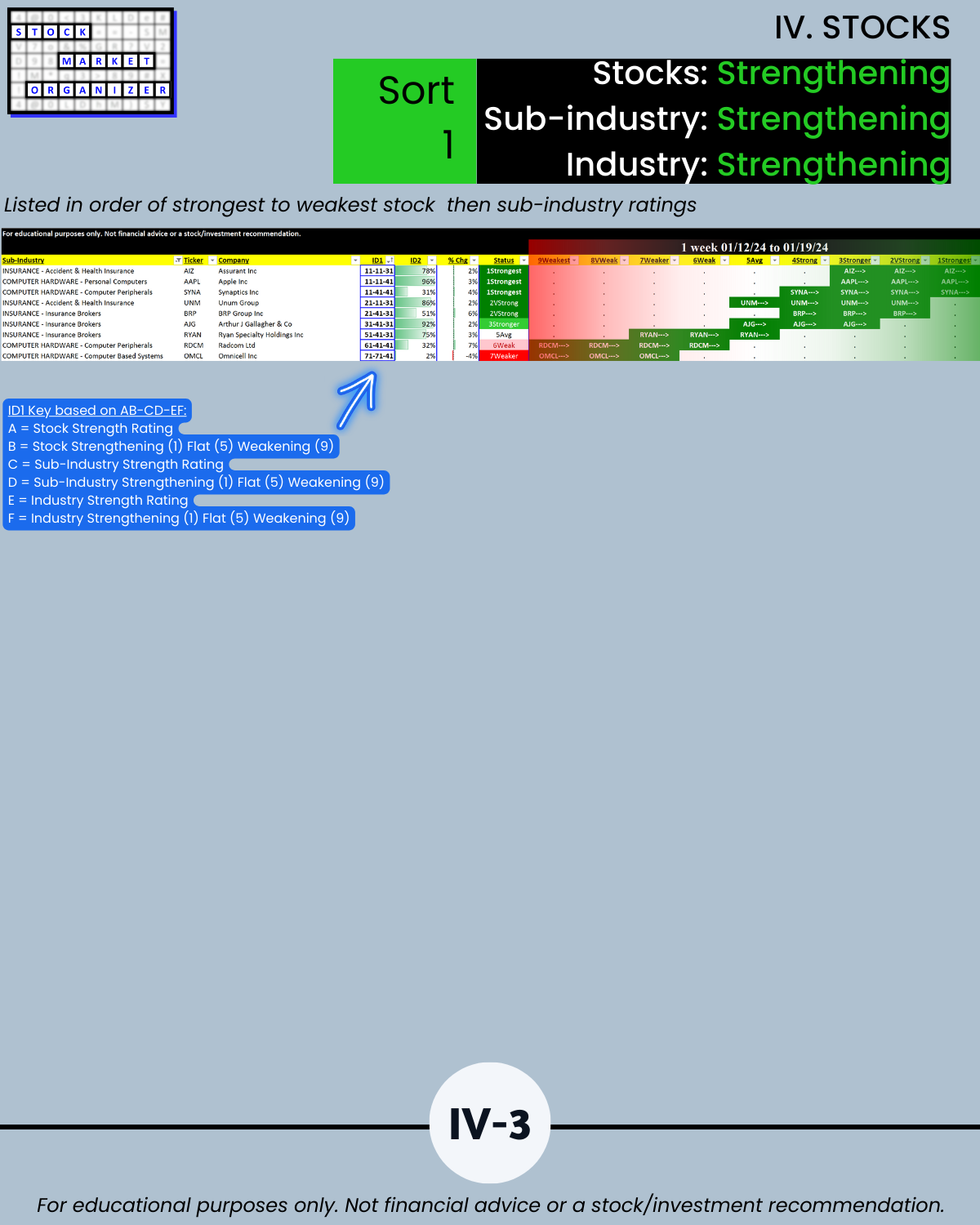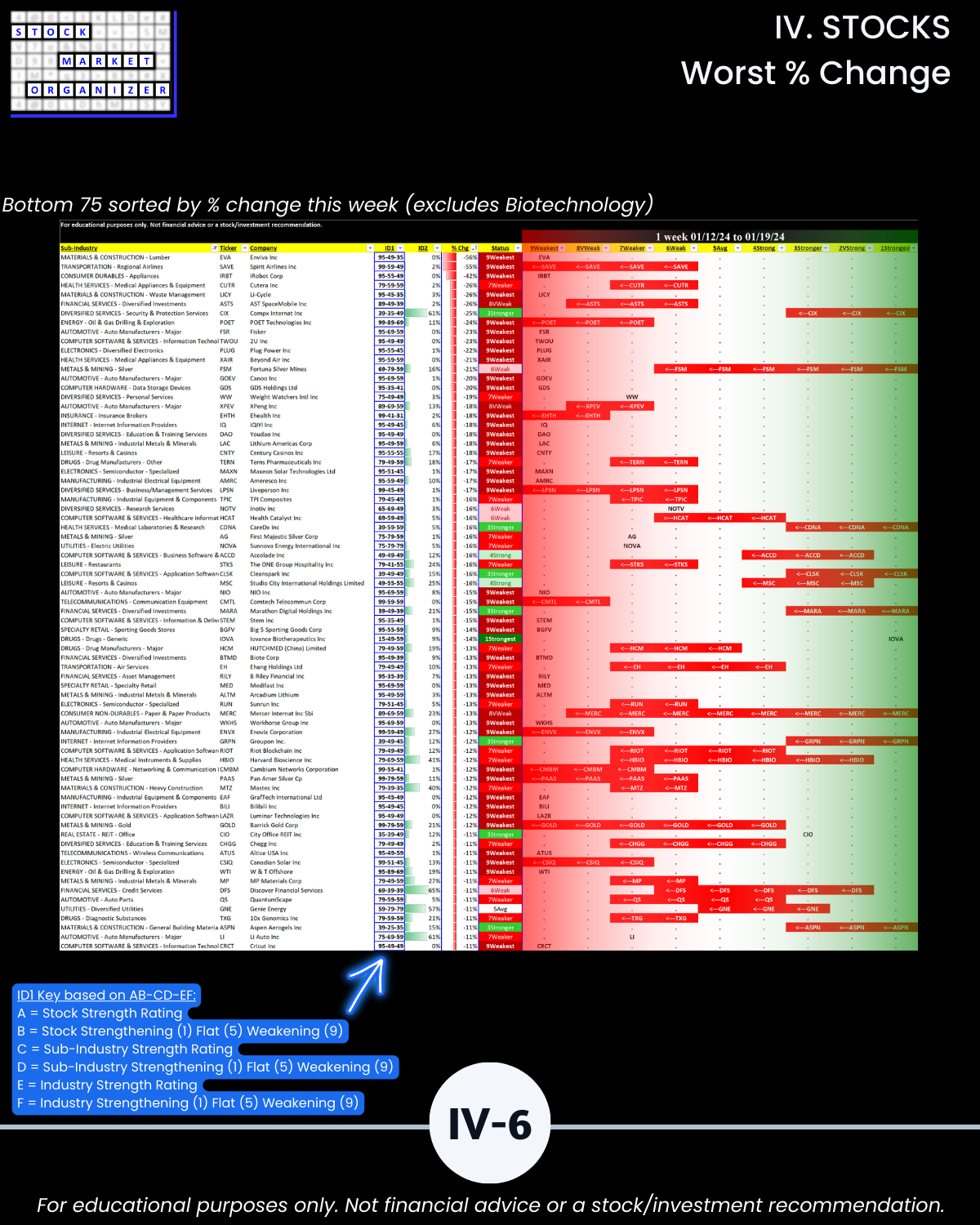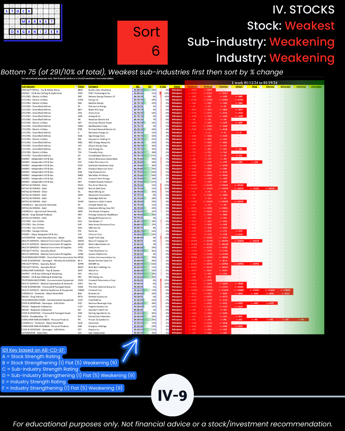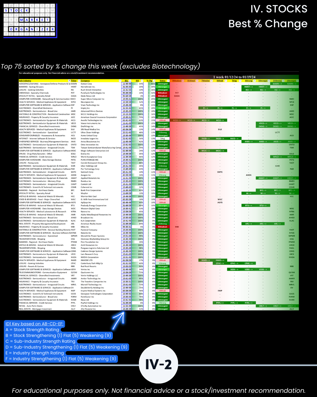 🔹 12/29/23 = 12 industries rated Stronger (3rd strongest of 9 levels), 1/19/24 = 4