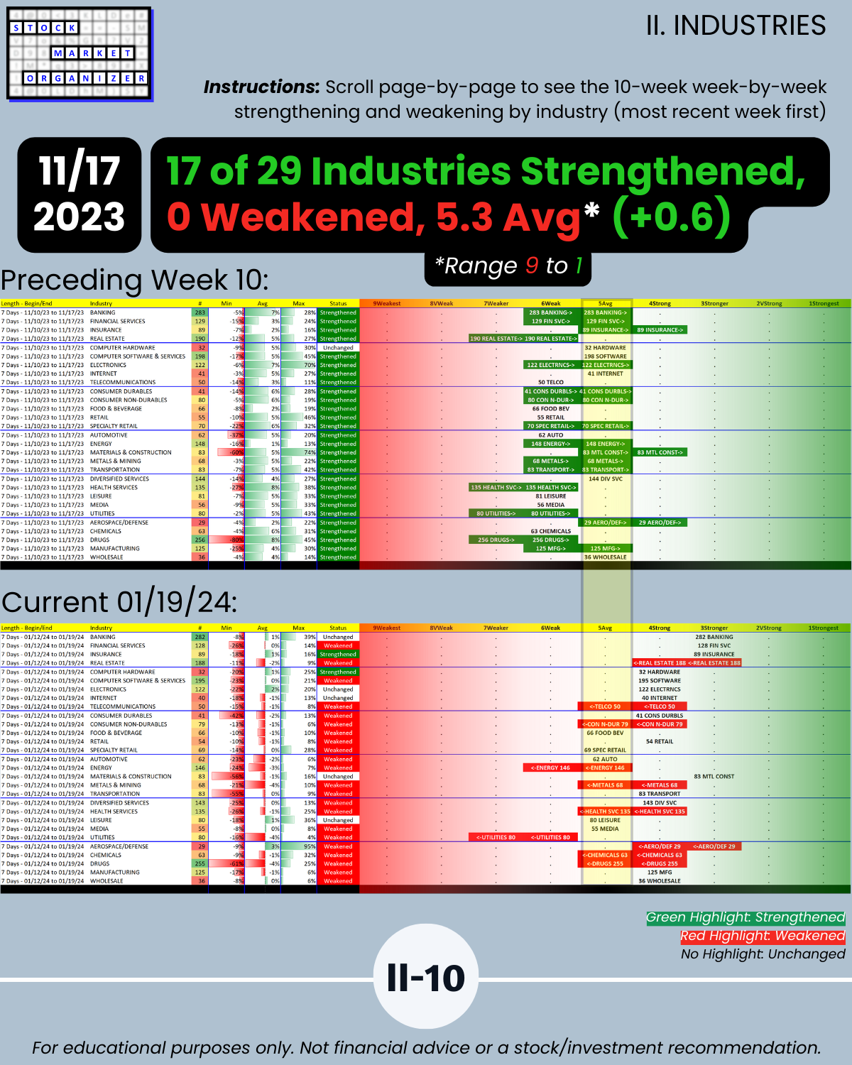 II. 10-Week Week-by-Week Industry Strength