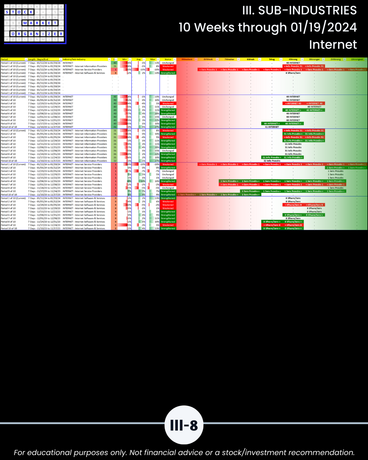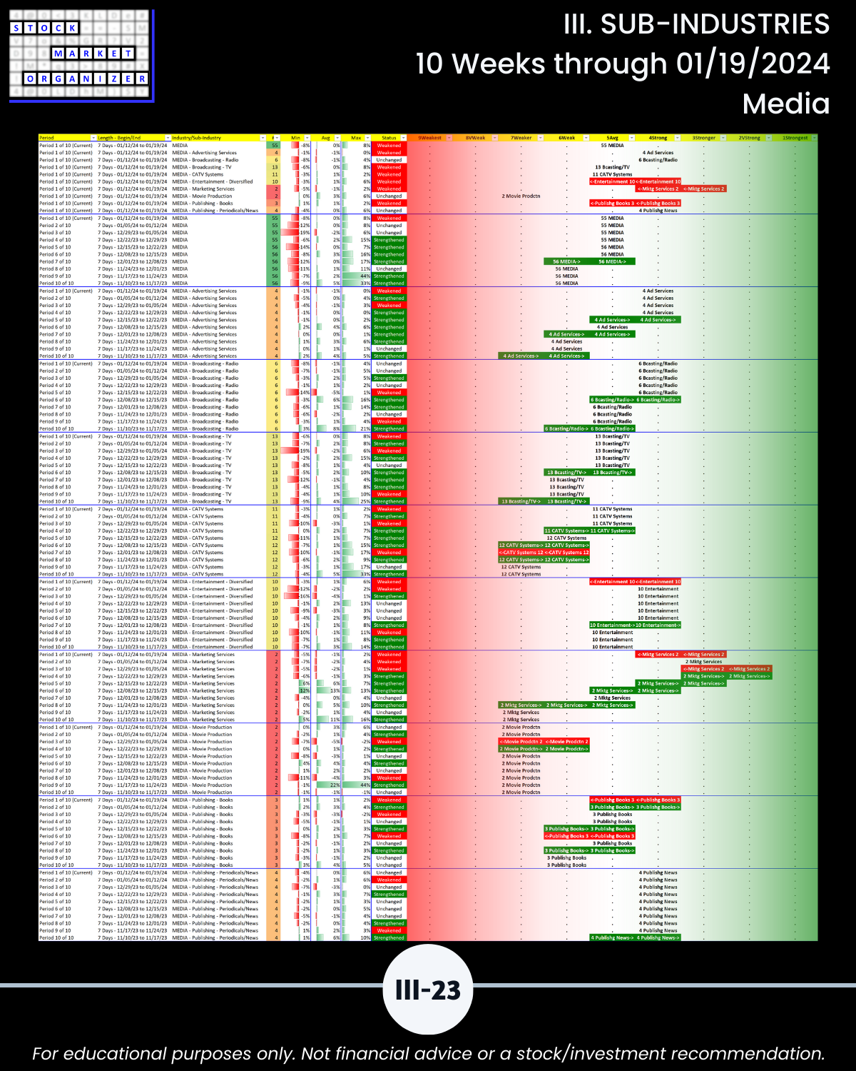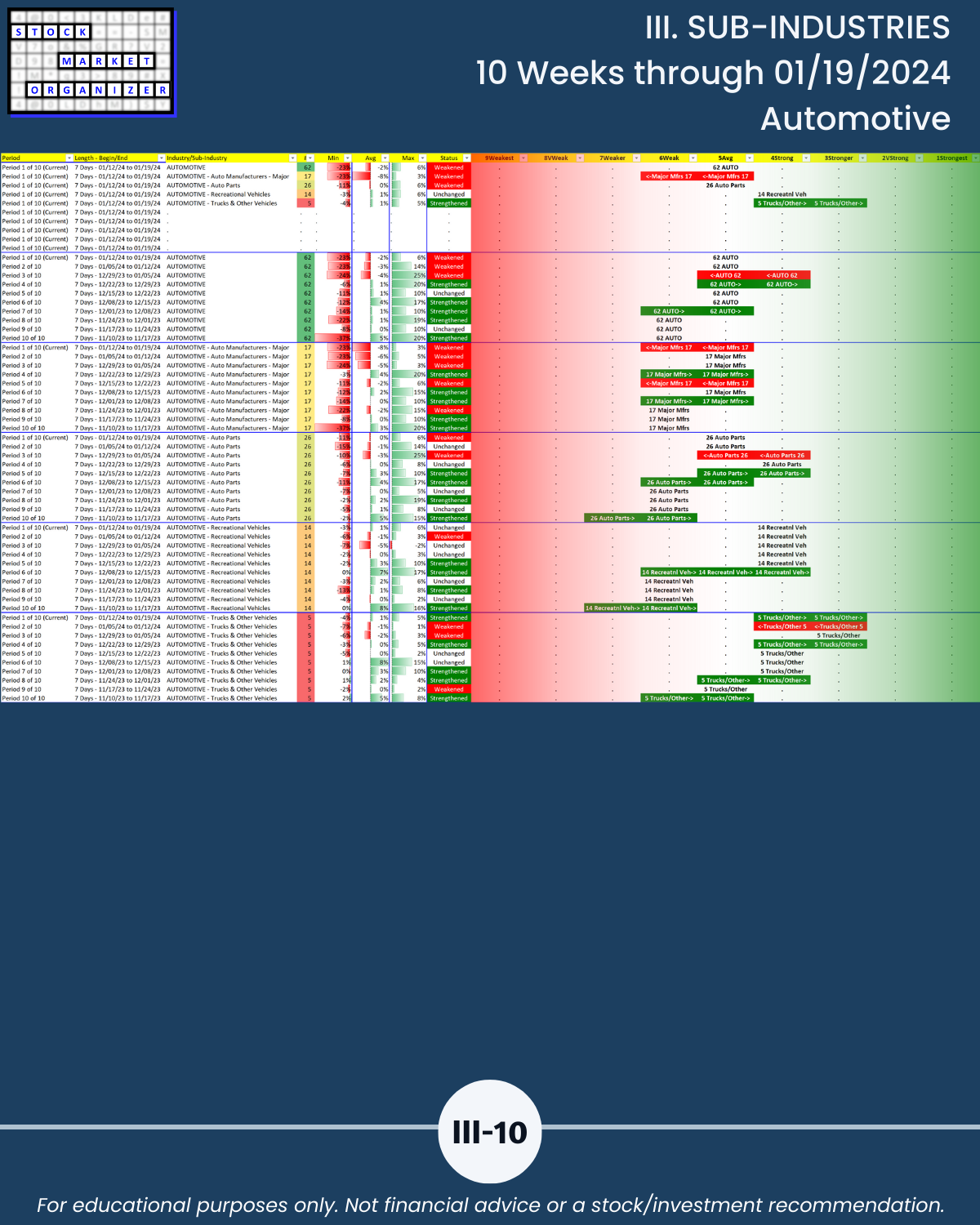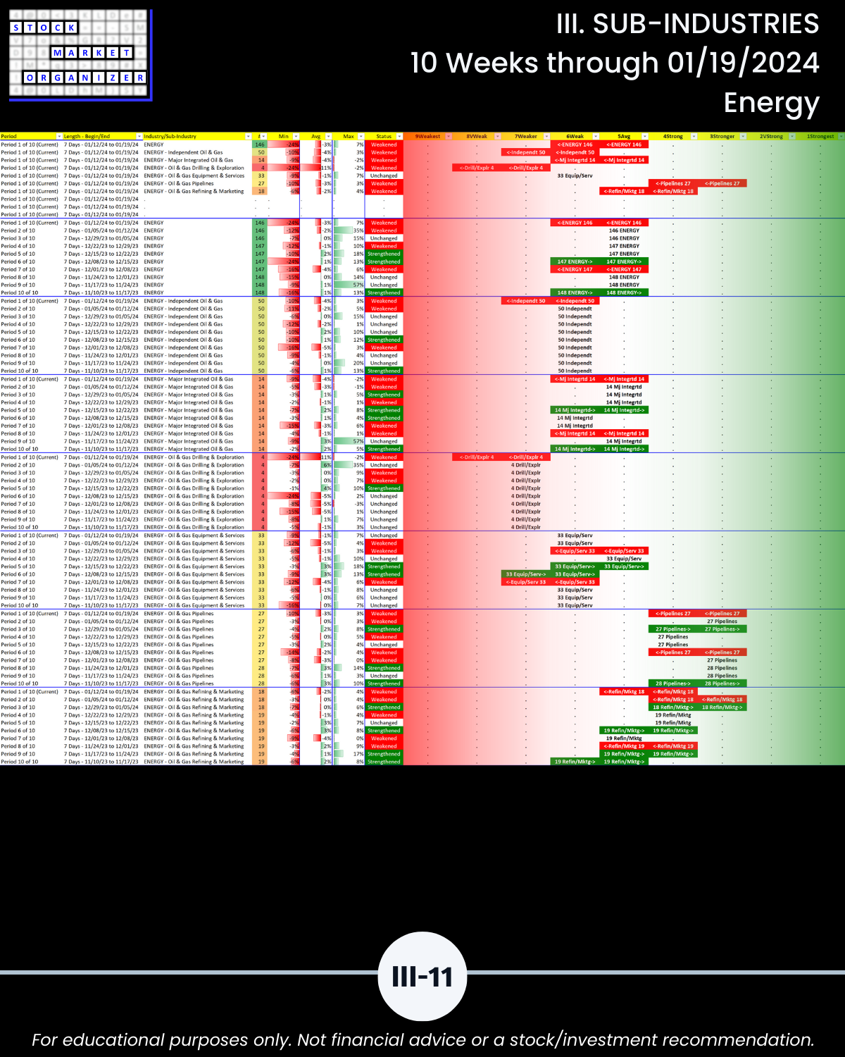 III. 10-Week Individual Sub-Industry Strength Reports