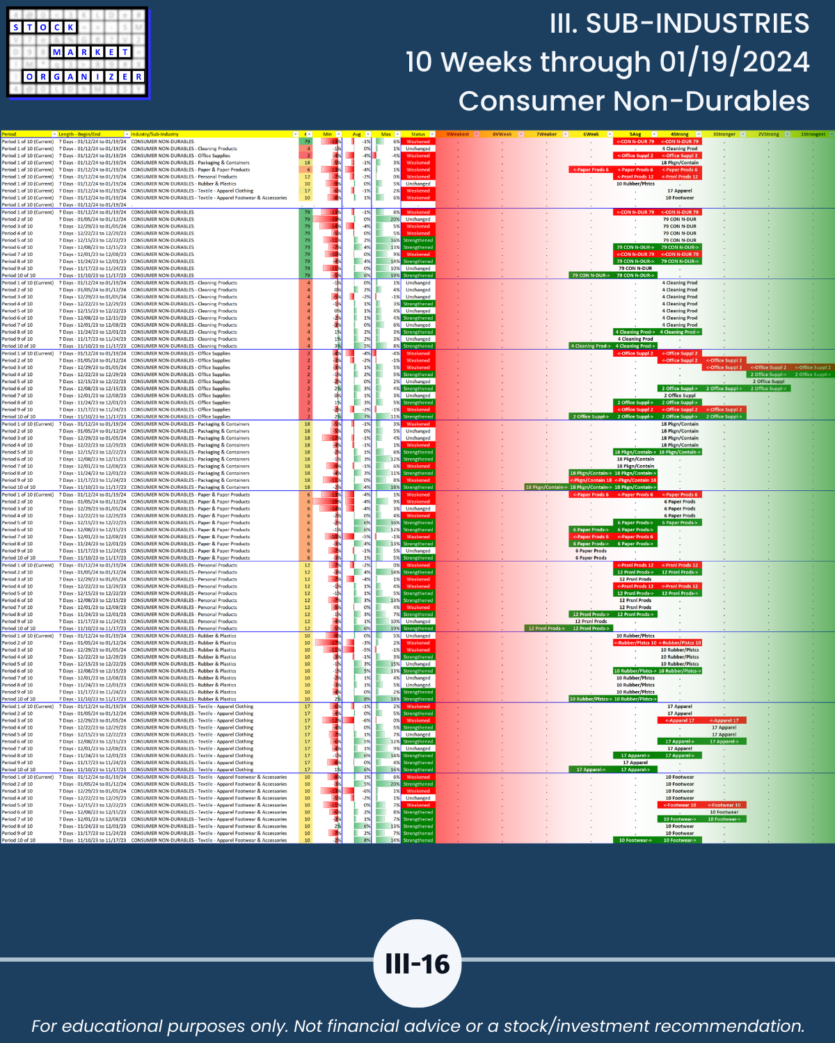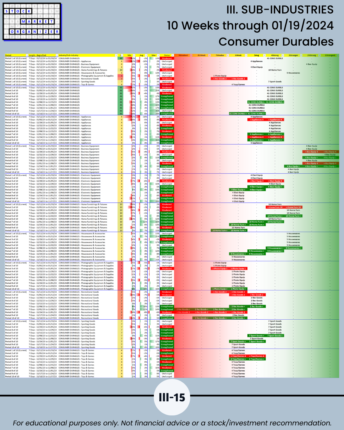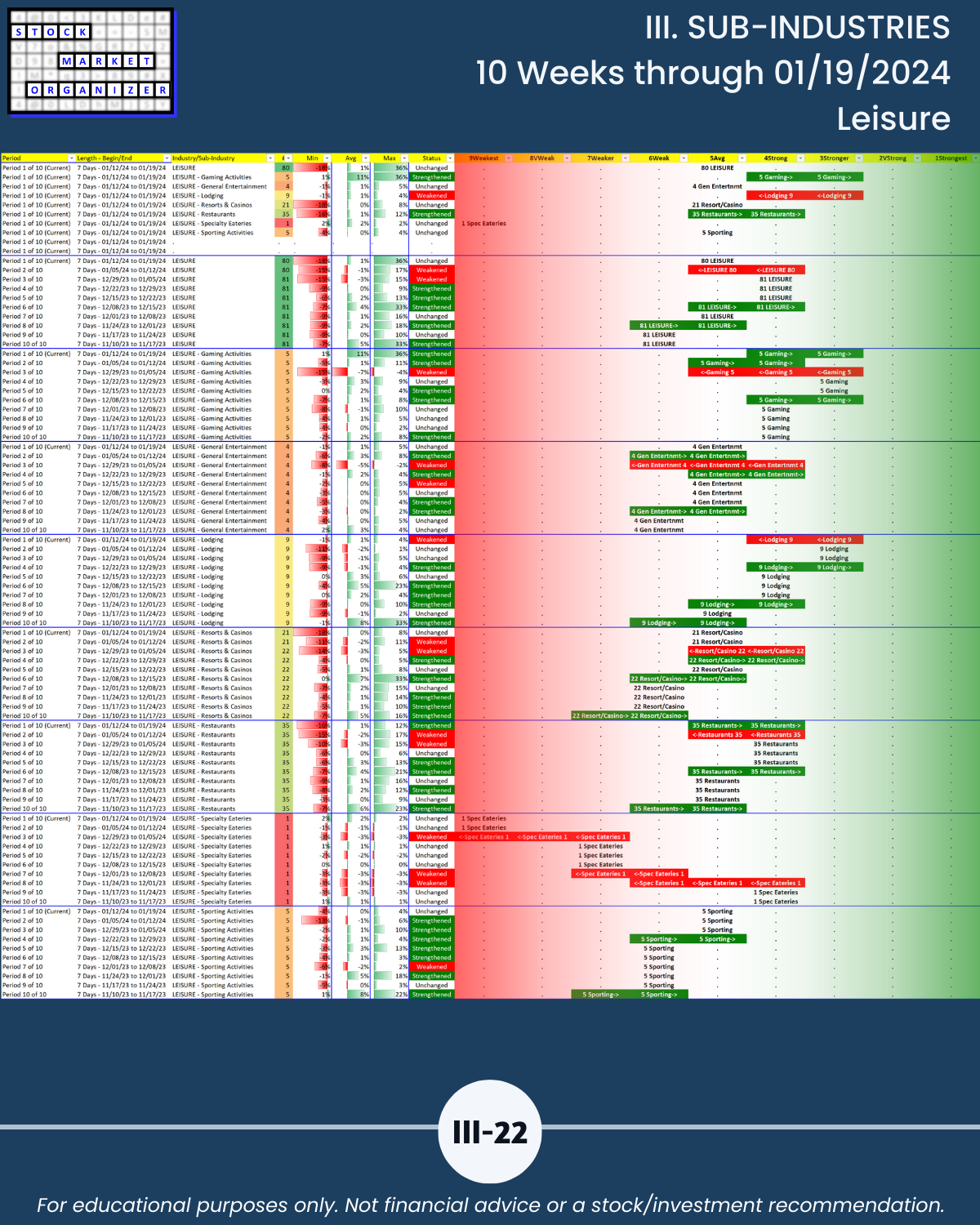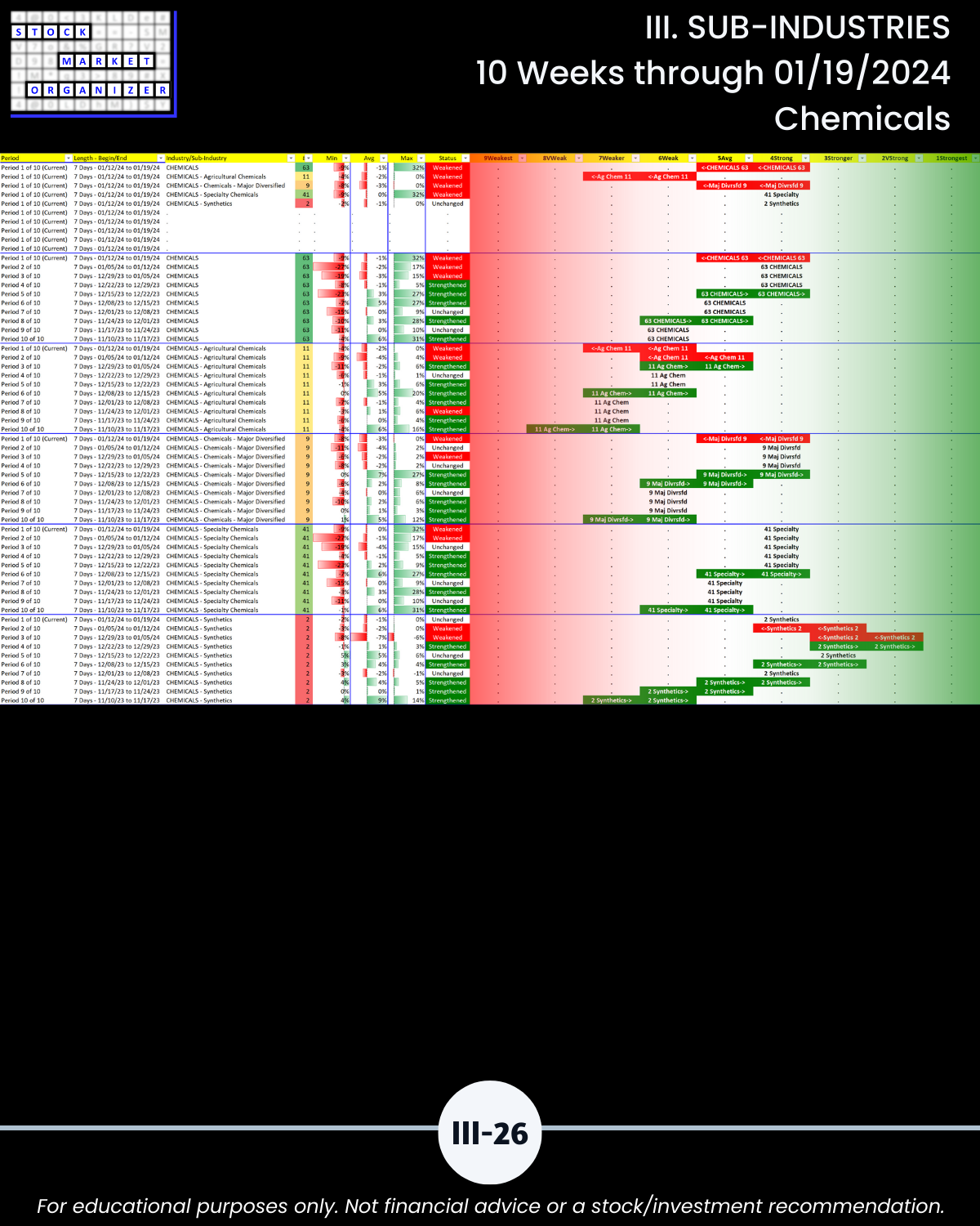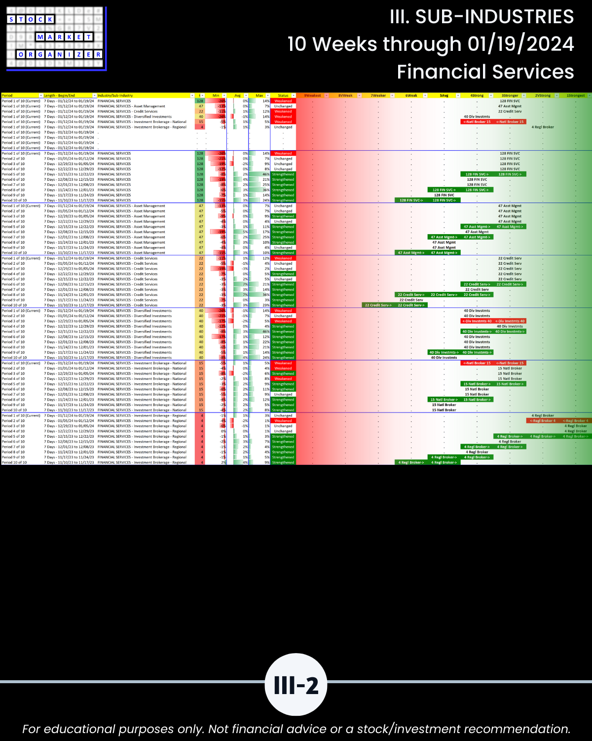III. 10-Week Individual Sub-Industry Strength Reports