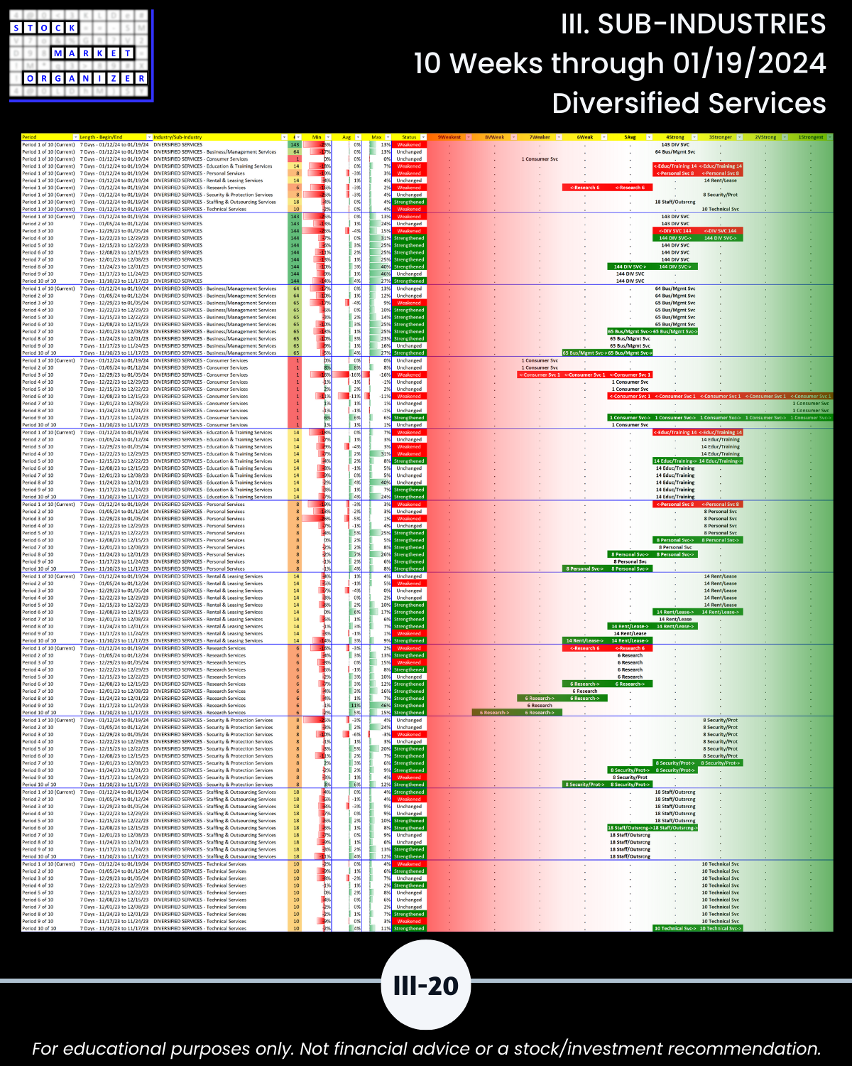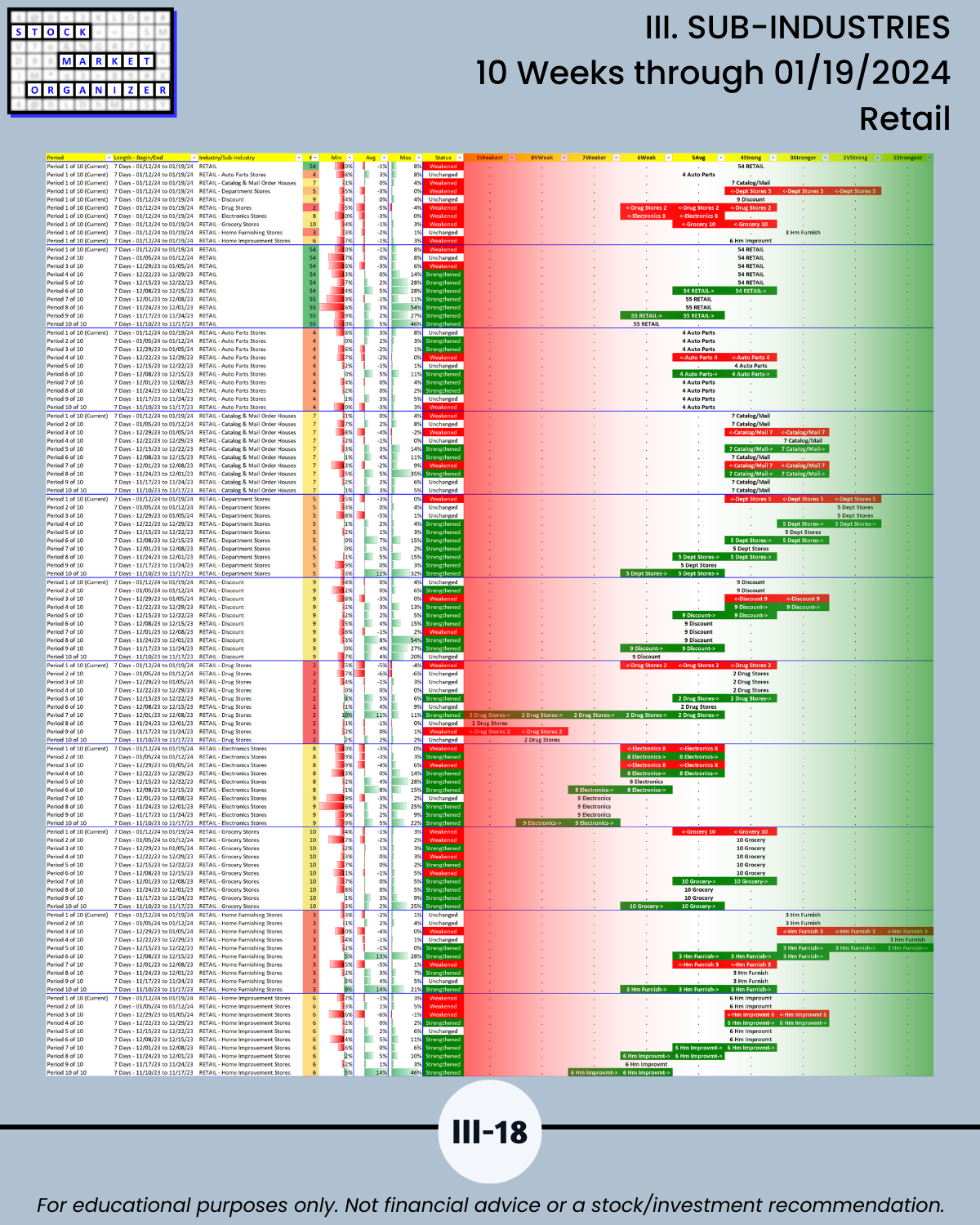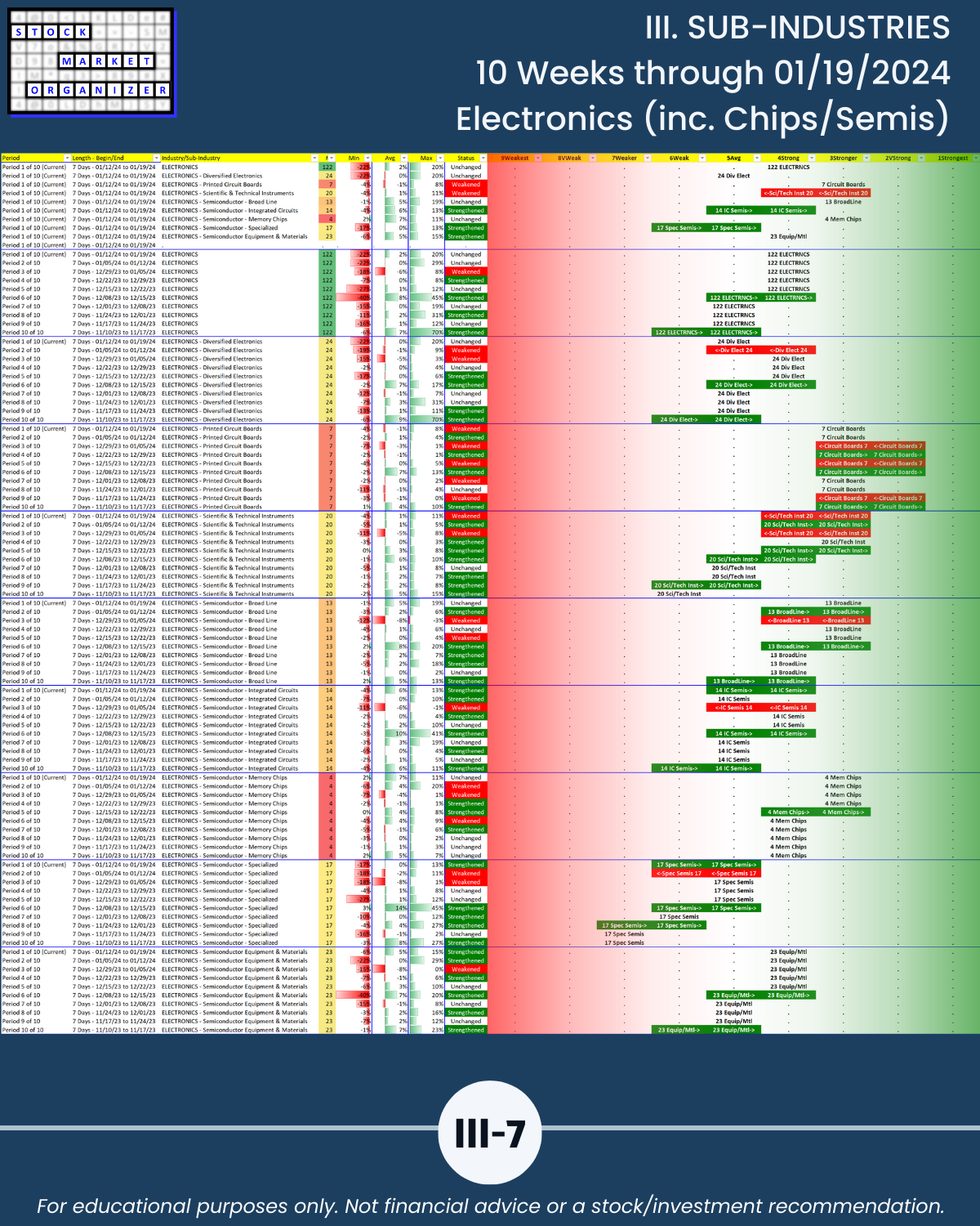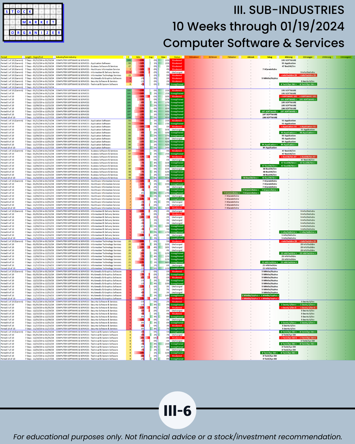 III. 10-Week Individual Sub-Industry Strength Reports