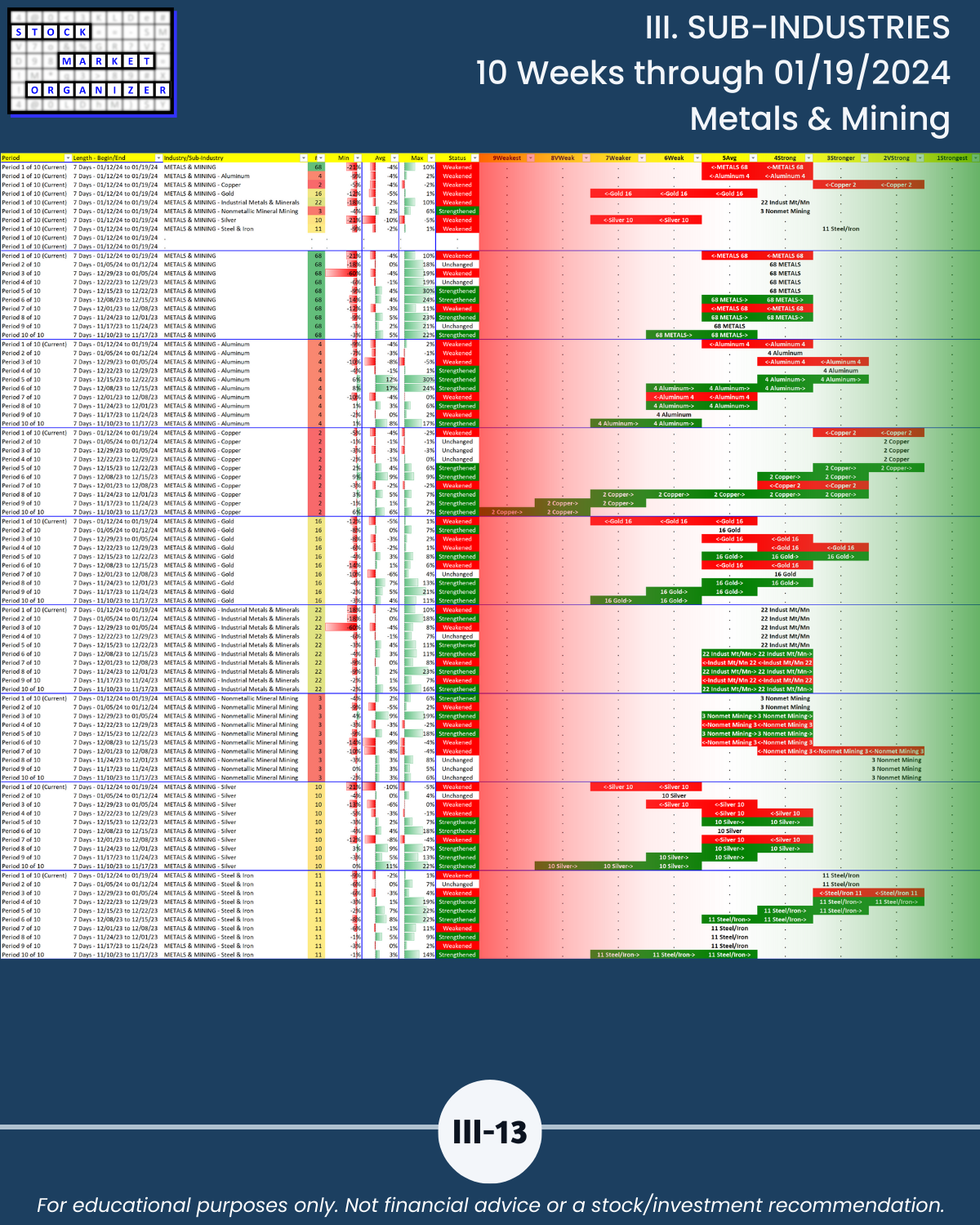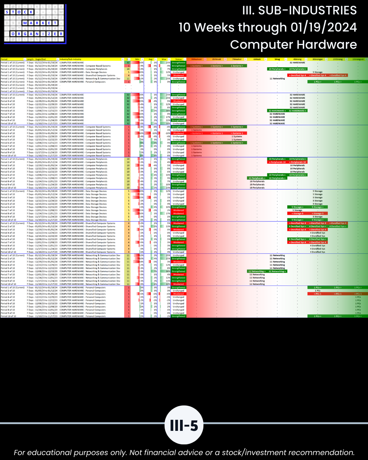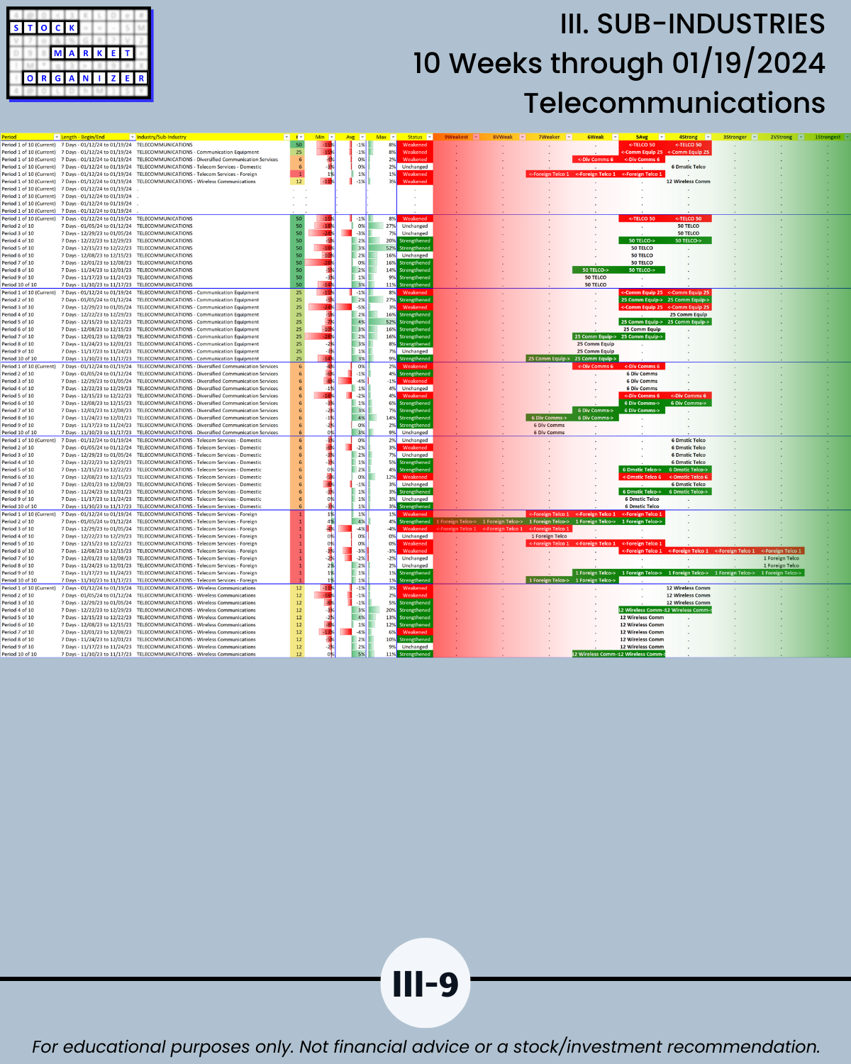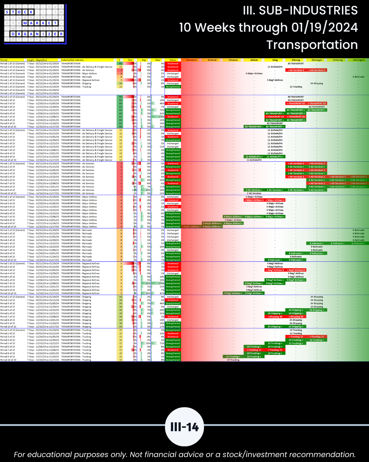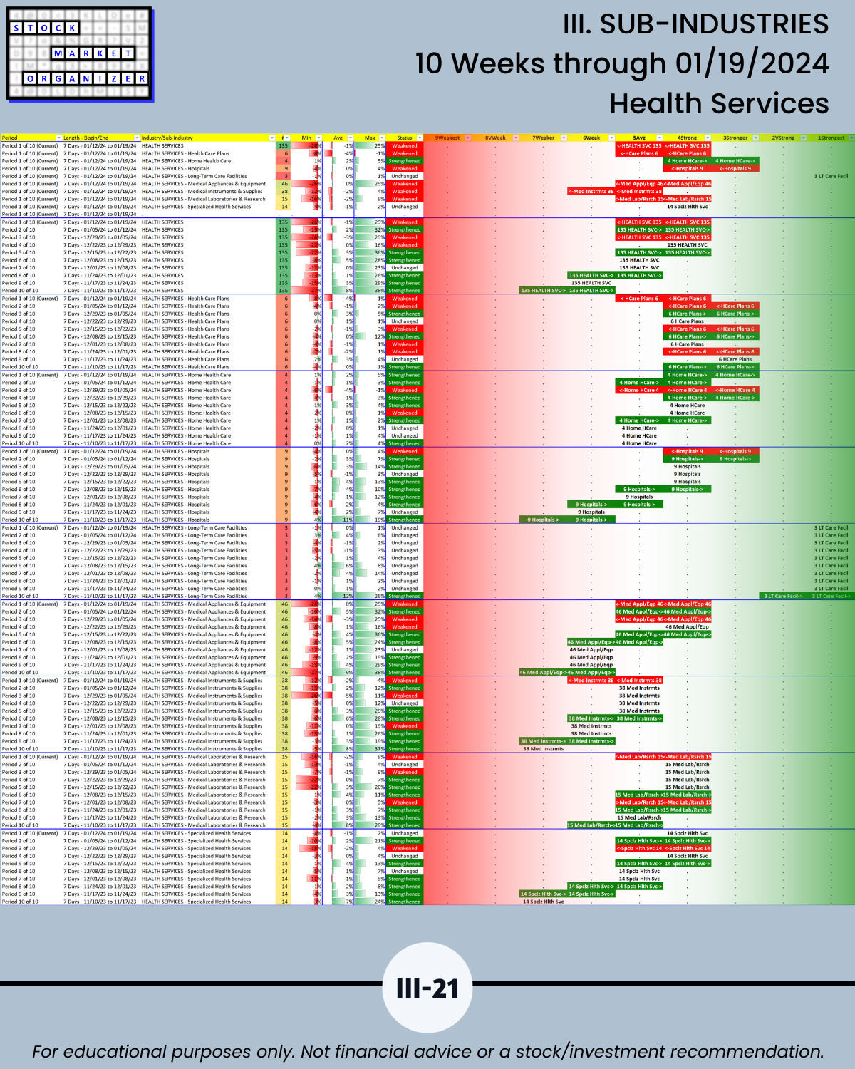 III. 10-Week Individual Sub-Industry Strength Reports