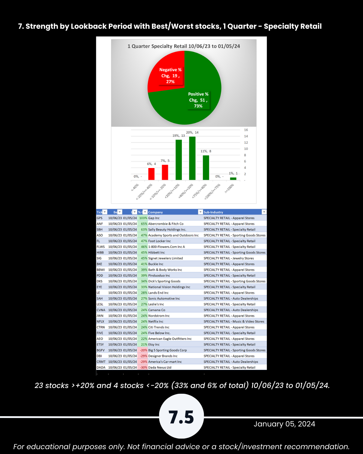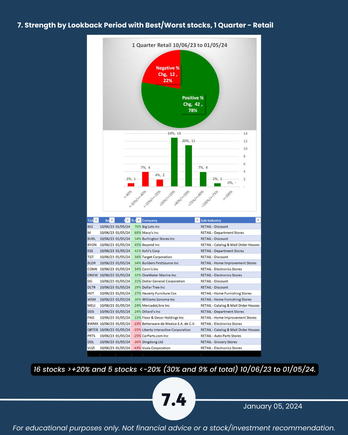 7. Lookback Period - 1 Quarter by Industry with Best/Worst Stocks