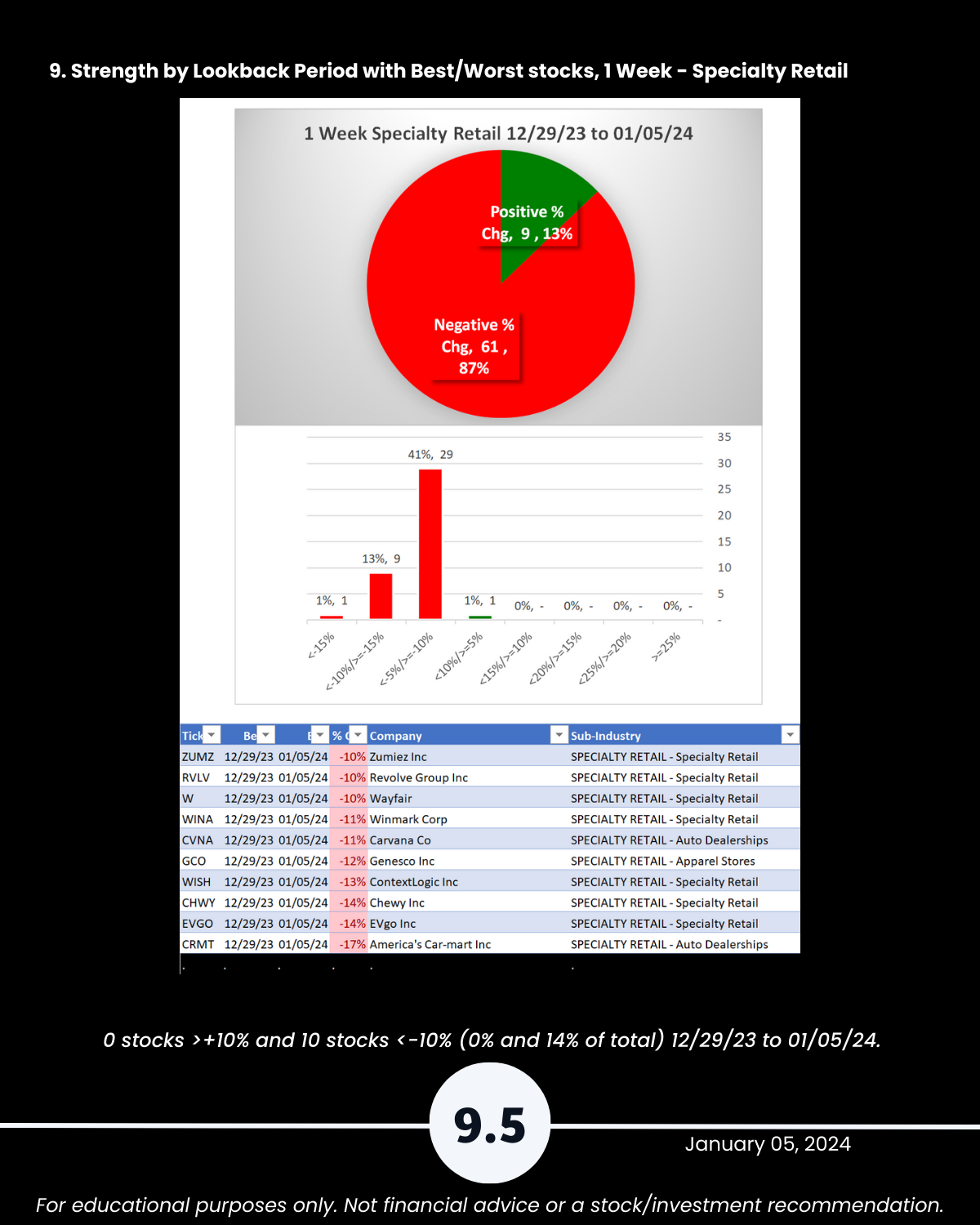 9. Lookback Period - 1 Week by Industry with Best/Worst Stocks