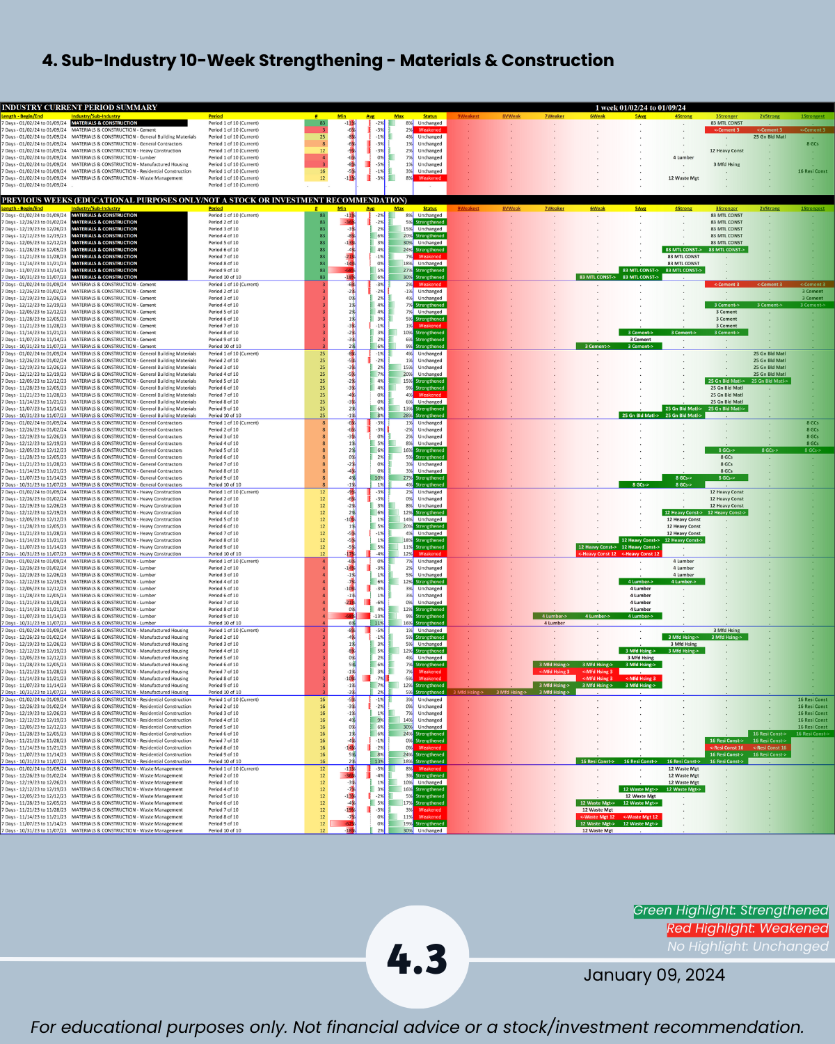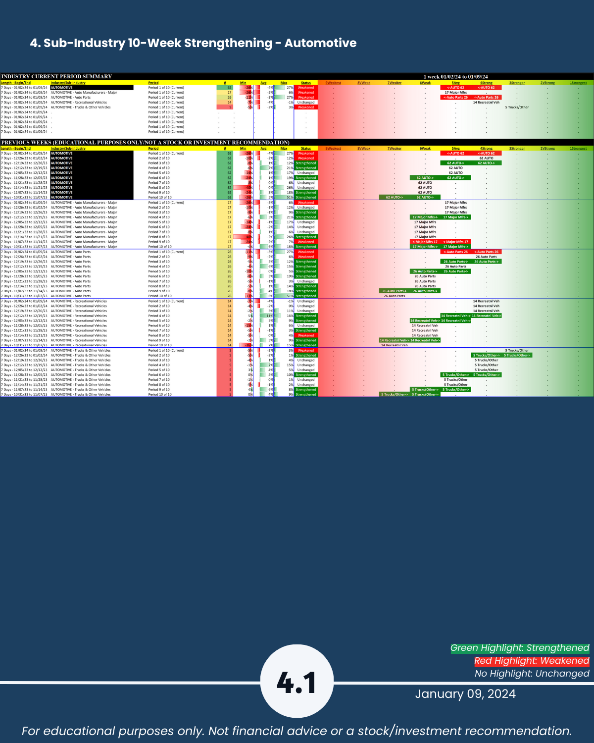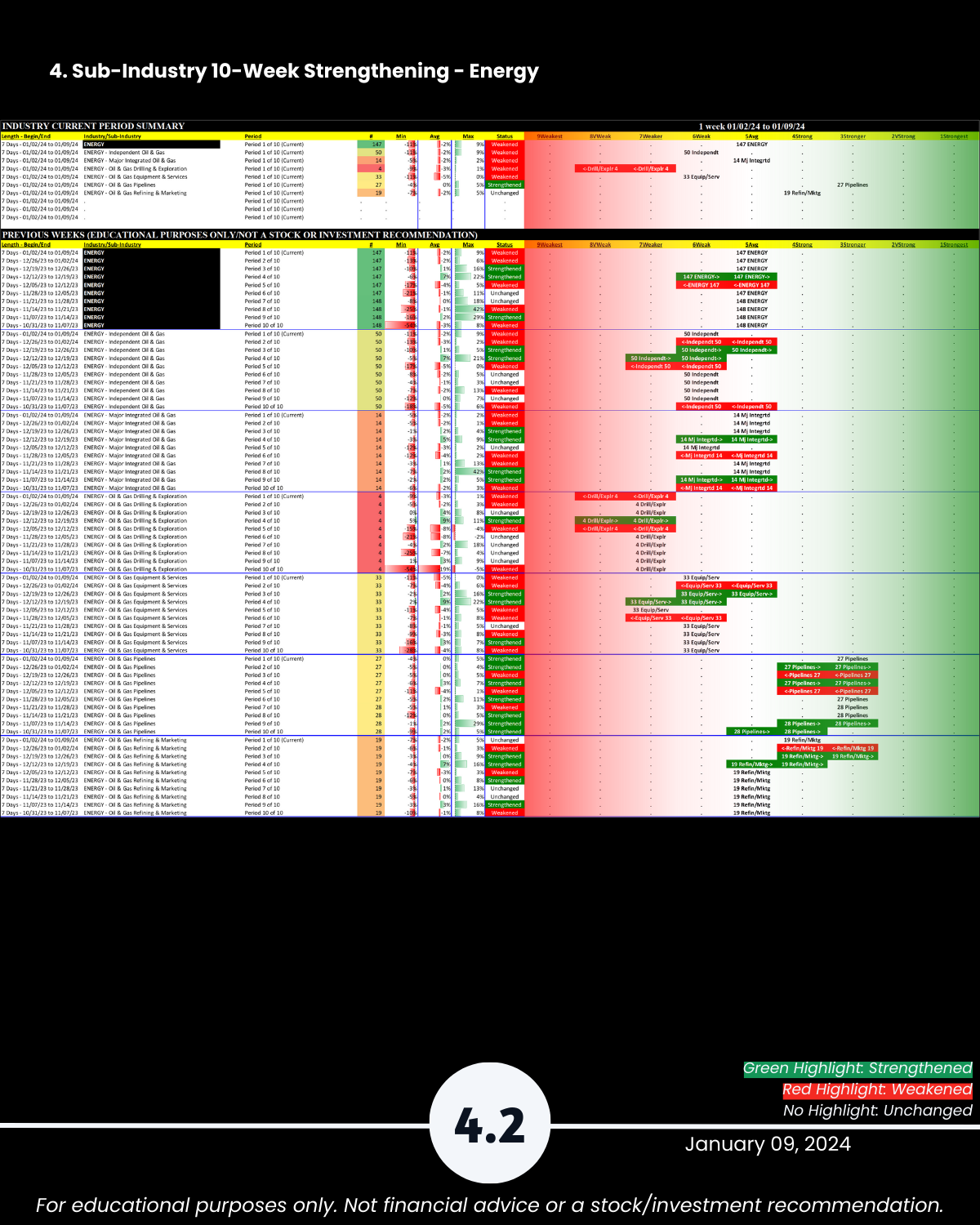 3-4. Industry and Sub-industry 10-Week Strengthening