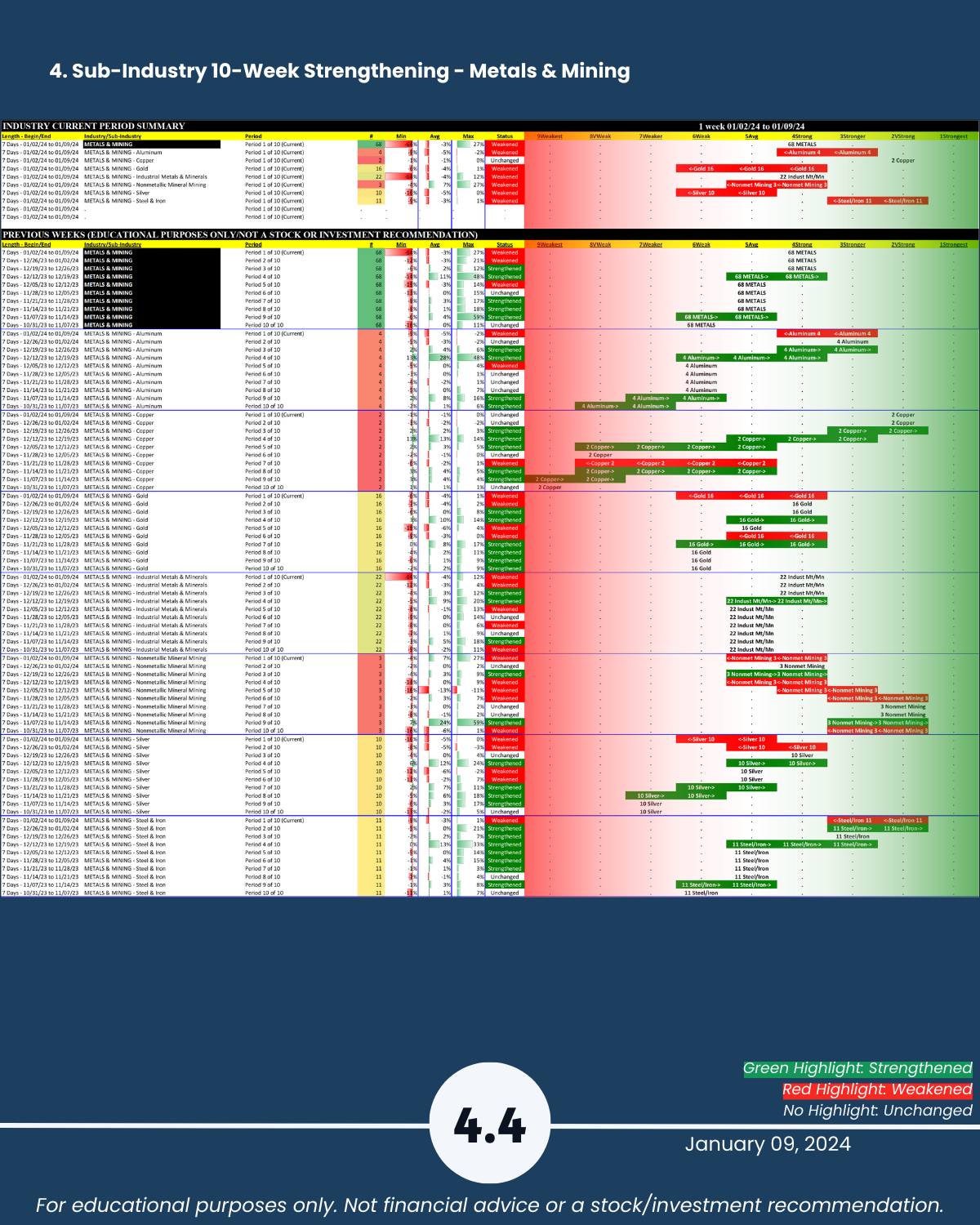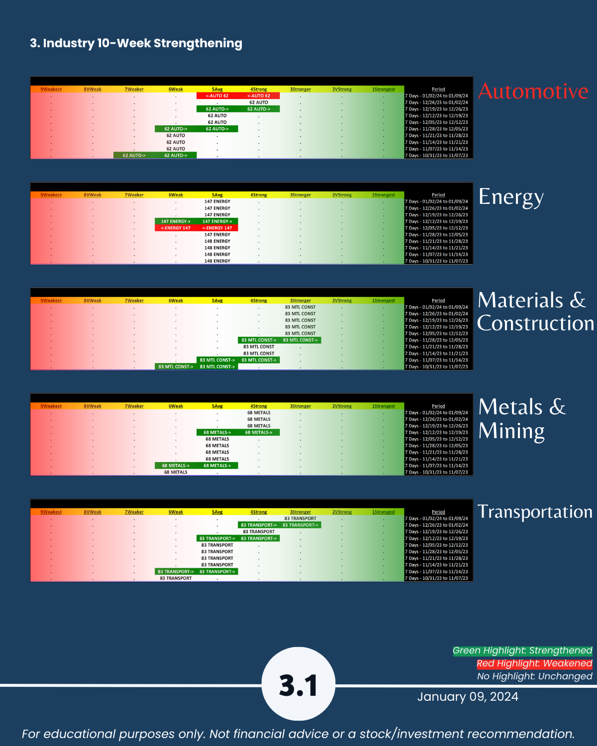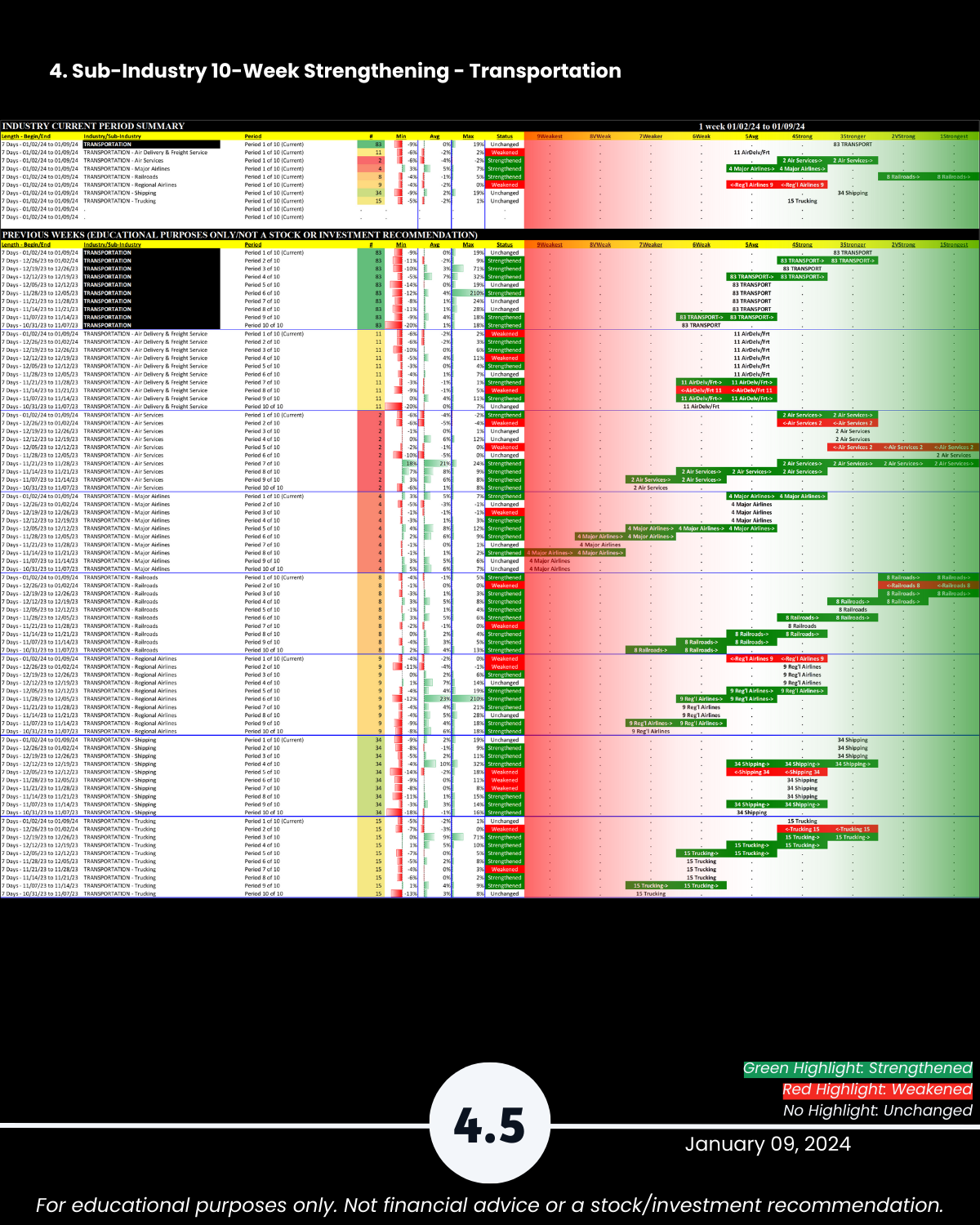 3-4. Industry and Sub-industry 10-Week Strengthening