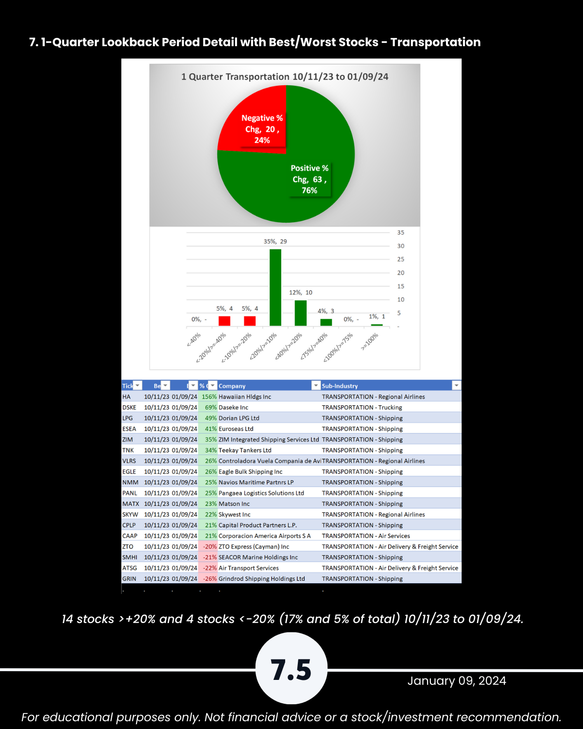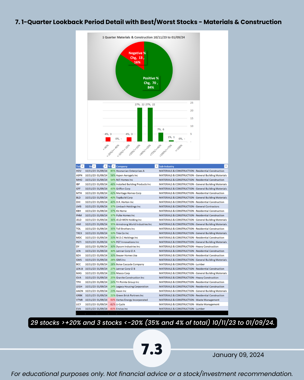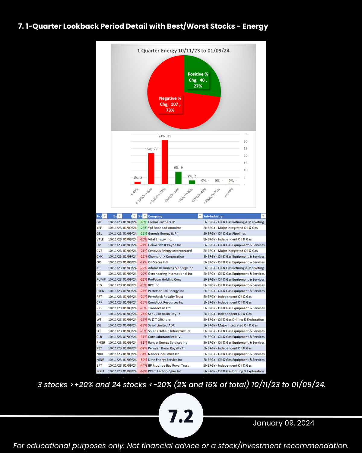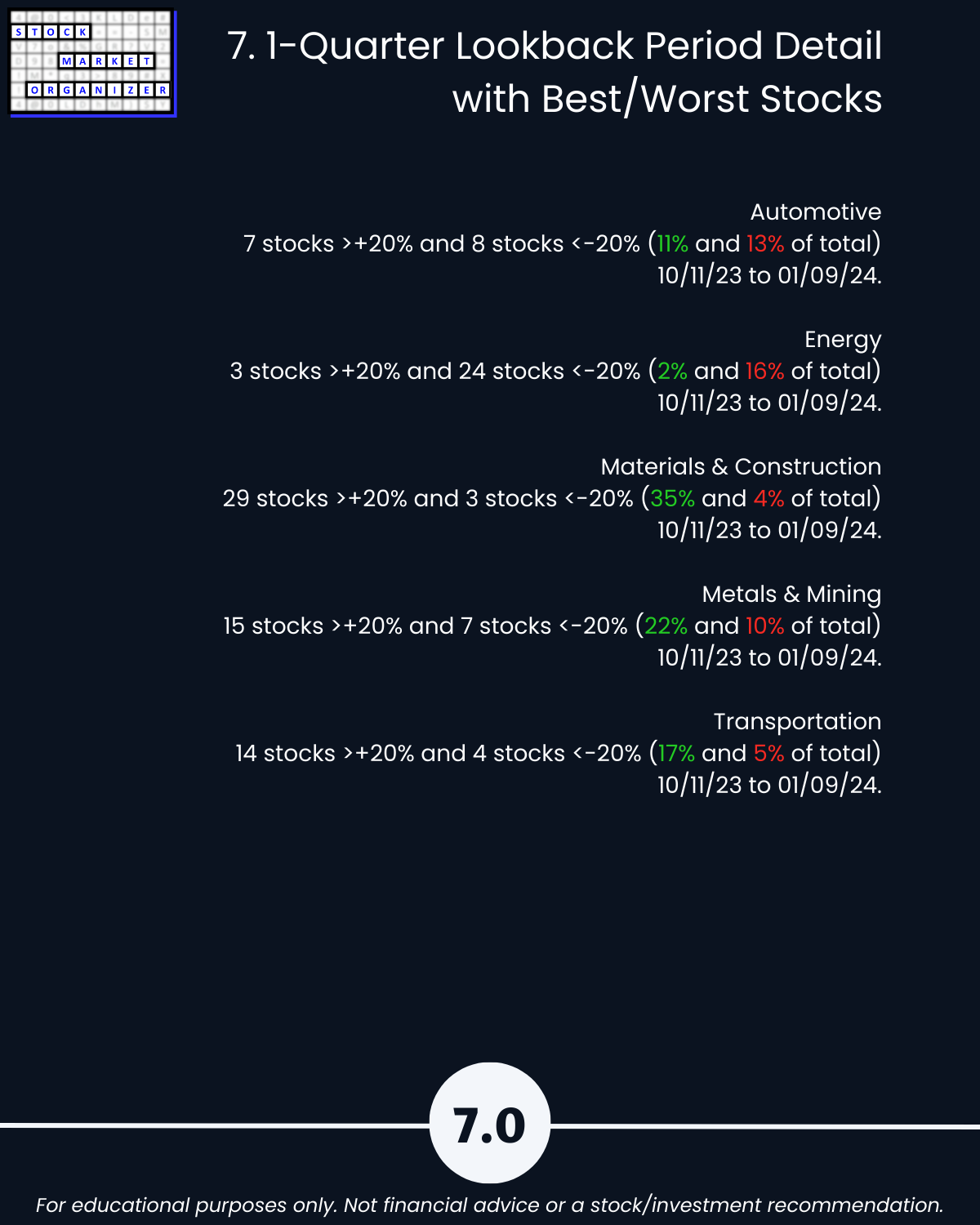 7. Lookback Period - 1 Quarter by Industry with Best/Worst Stocks