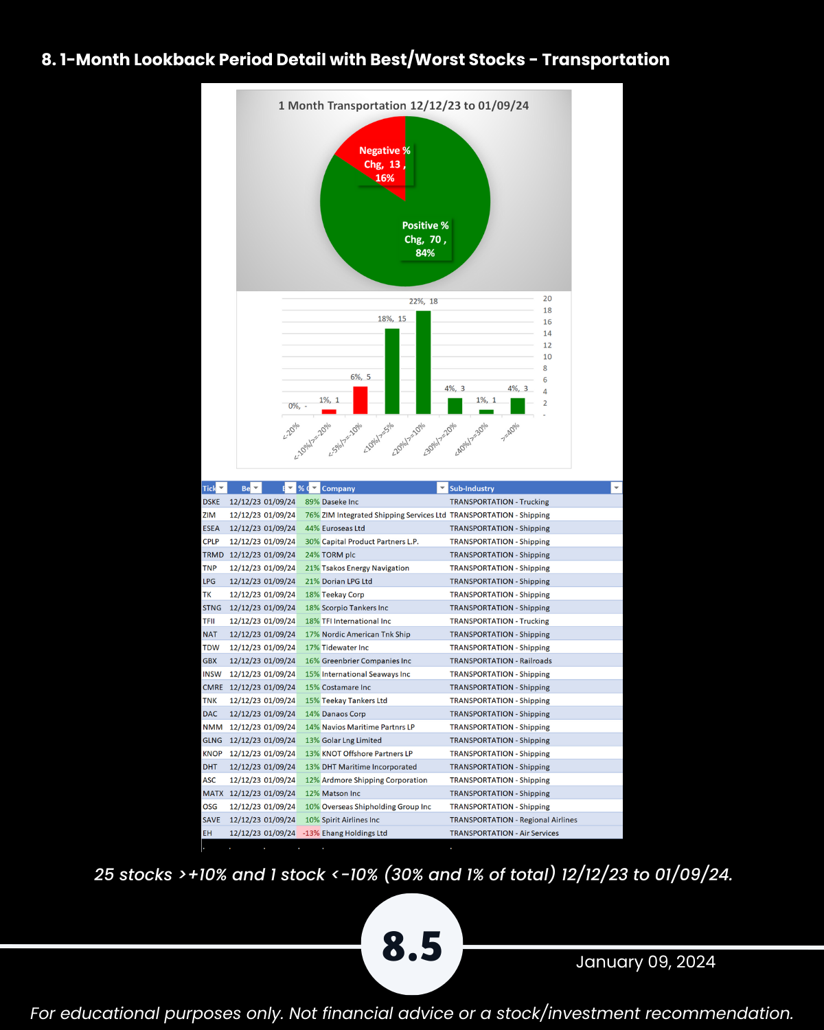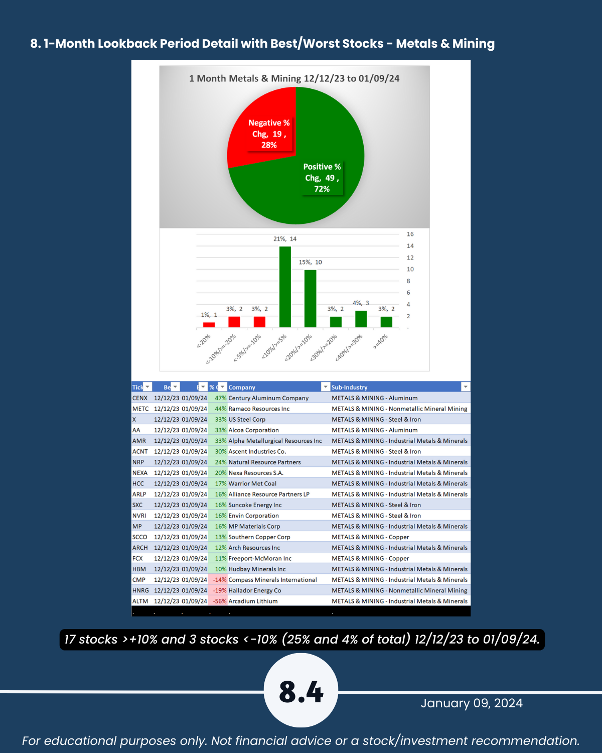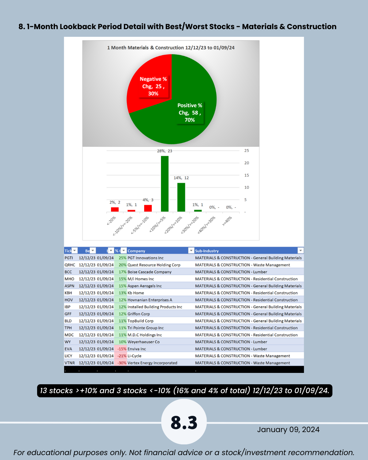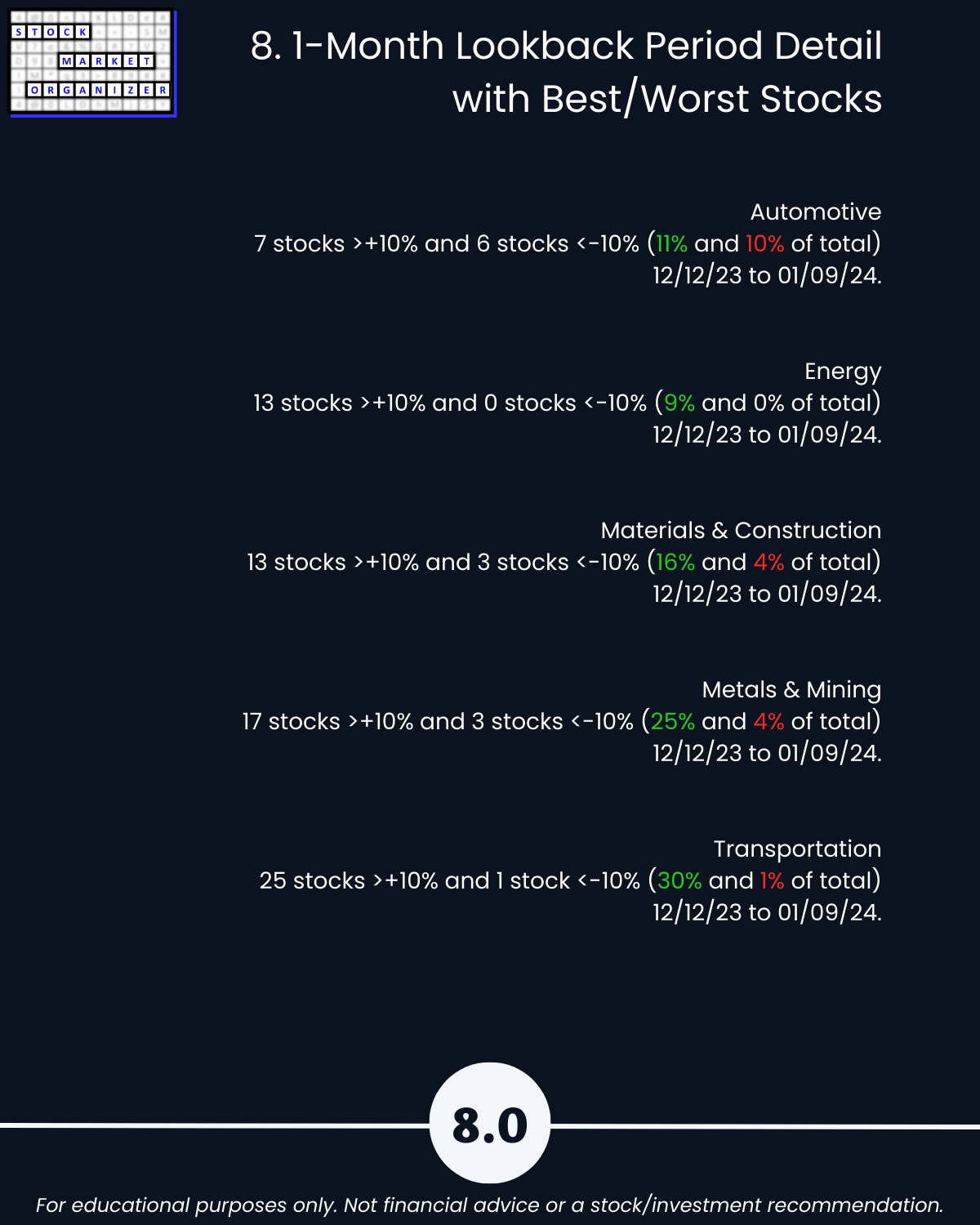 8. Lookback Period - 1 Month by Industry with Best/Worst Stocks