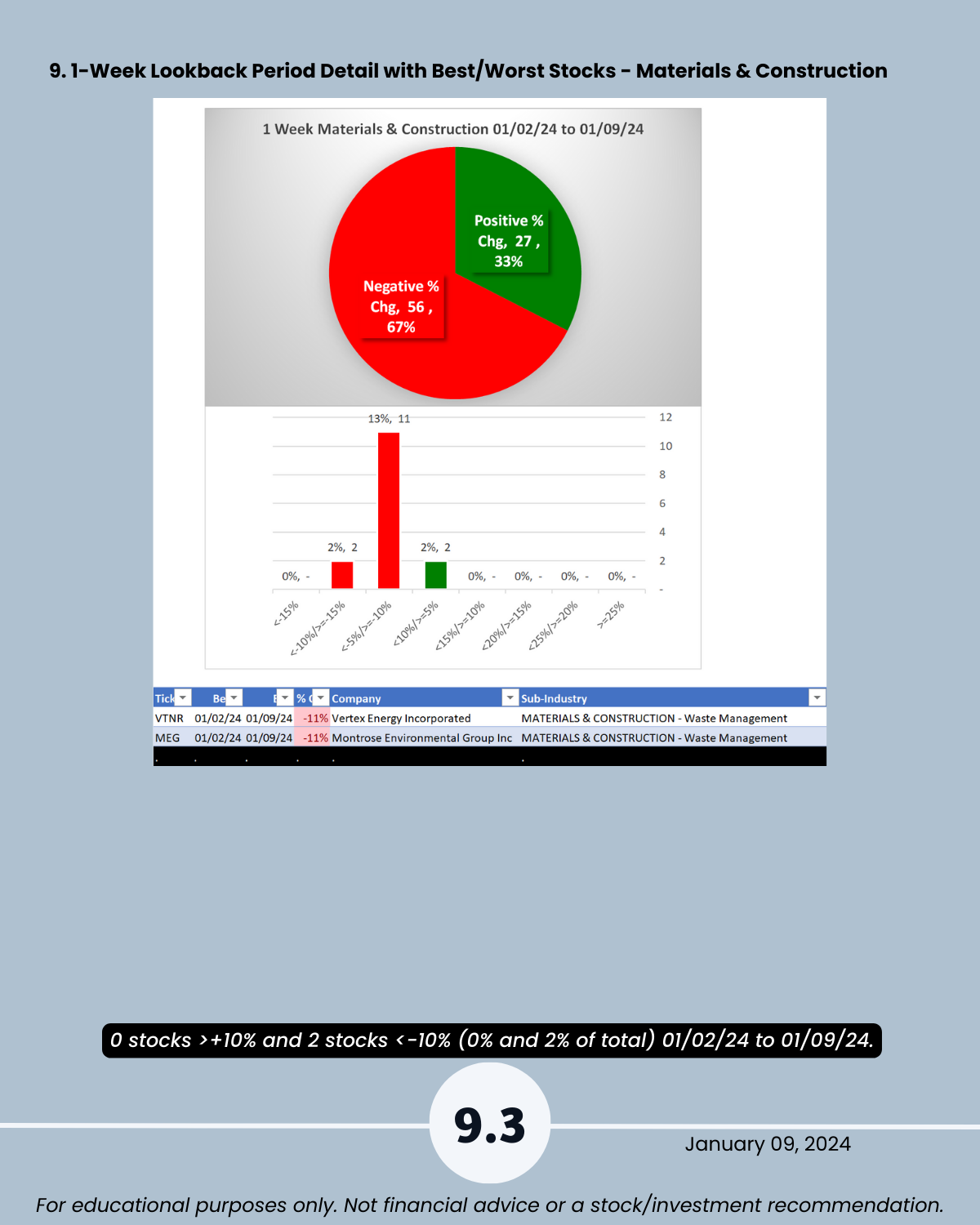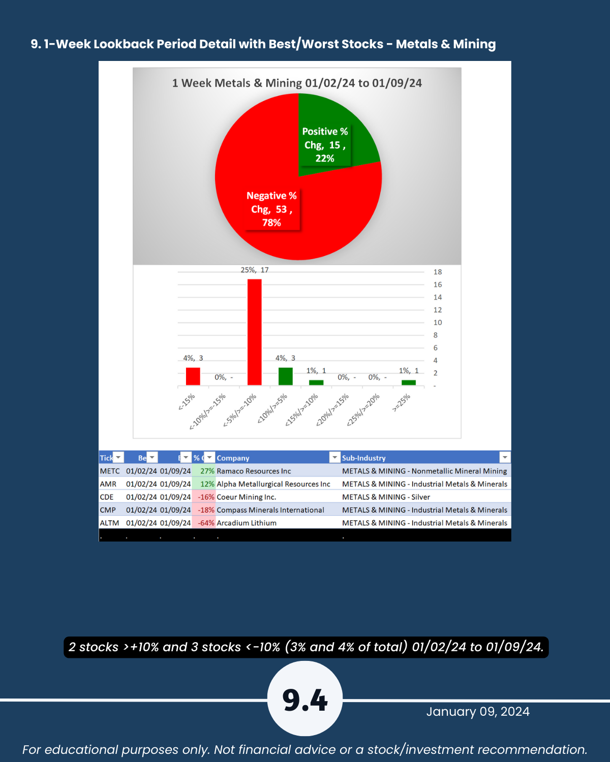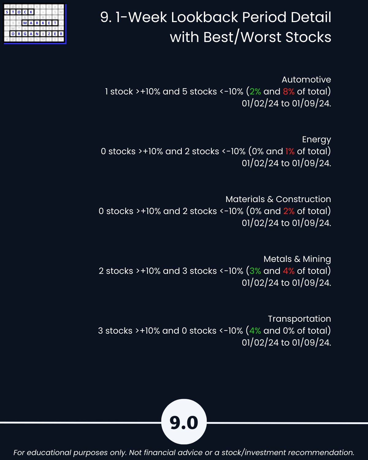 9. Lookback Period - 1 Week by Industry with Best/Worst Stocks