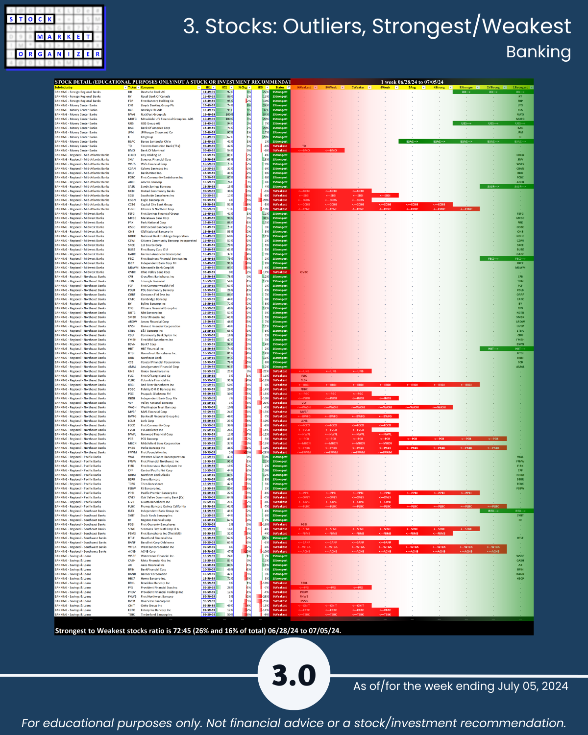 - In what could/should have been a low volume July 4th holiday week some banking stocks took it on the chin on higher-than-average volume.