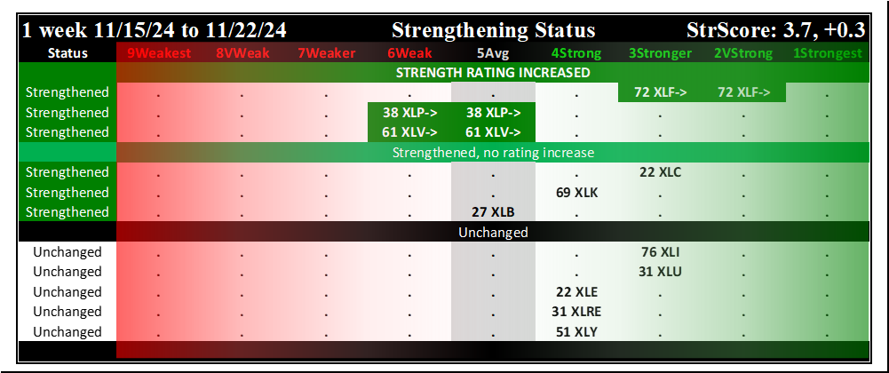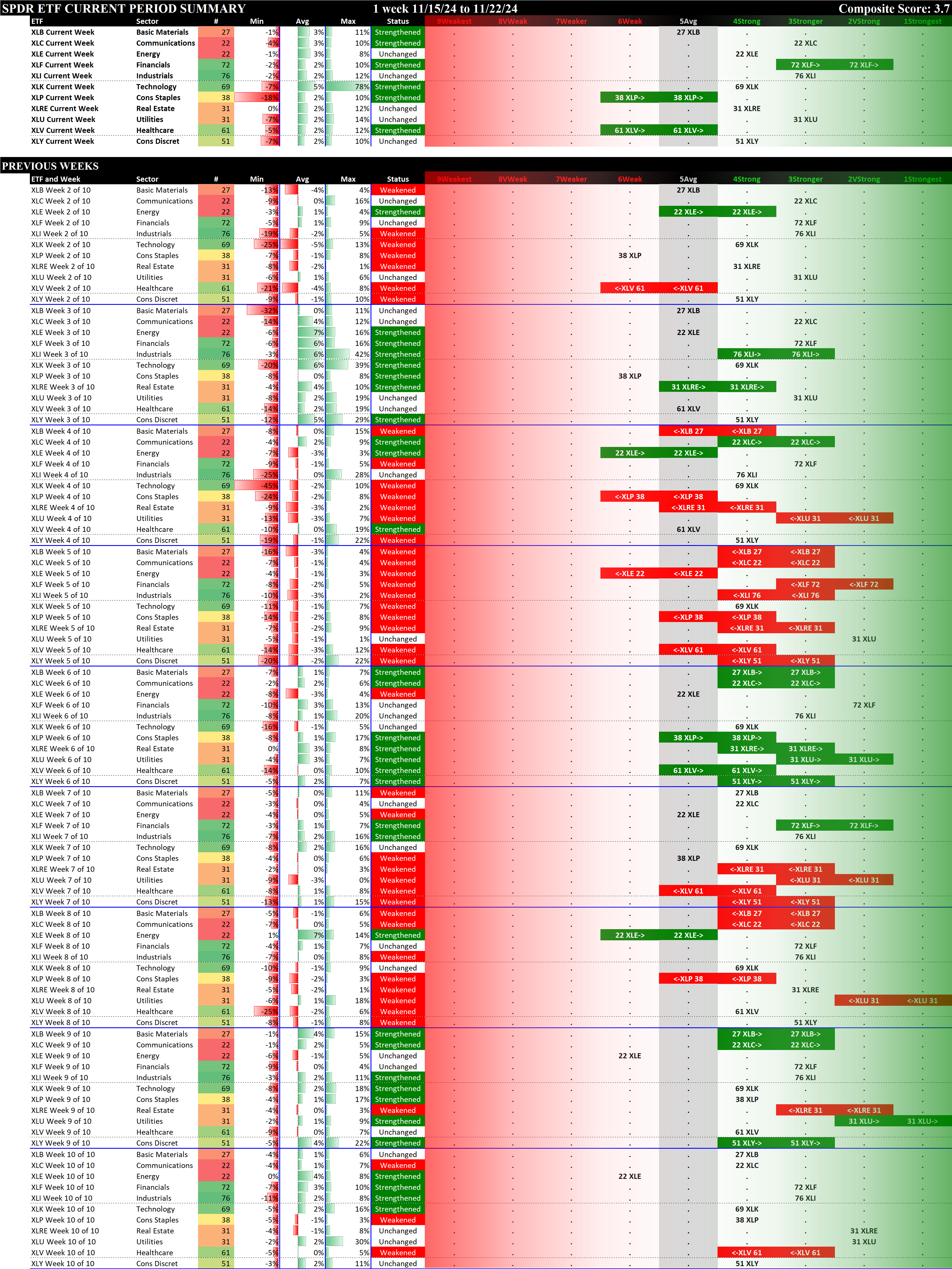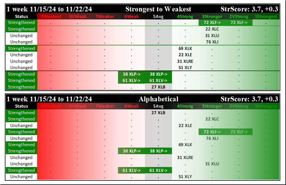 SMO Exclusive: SPDR Sector ETFs Strength Report Friday 2024-11-22 Strengthened +0.3 to 3.7 Strength Score