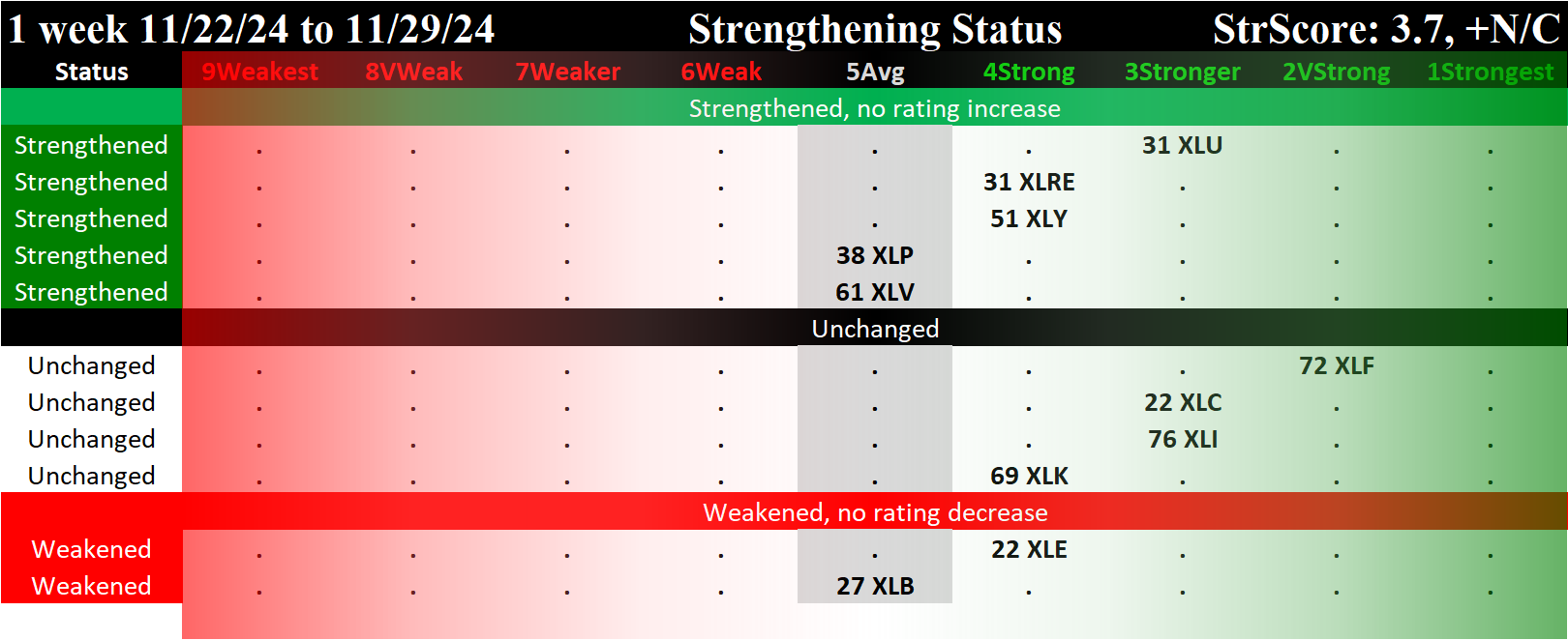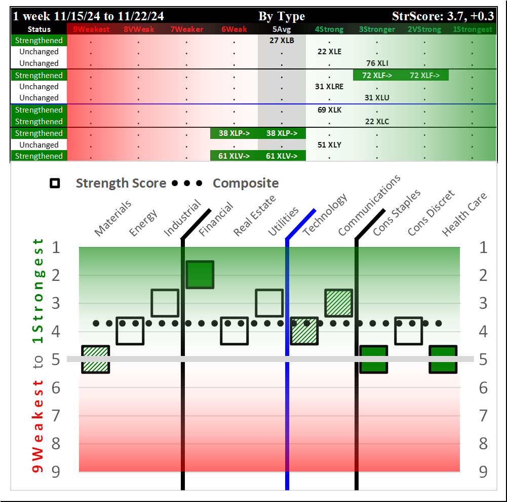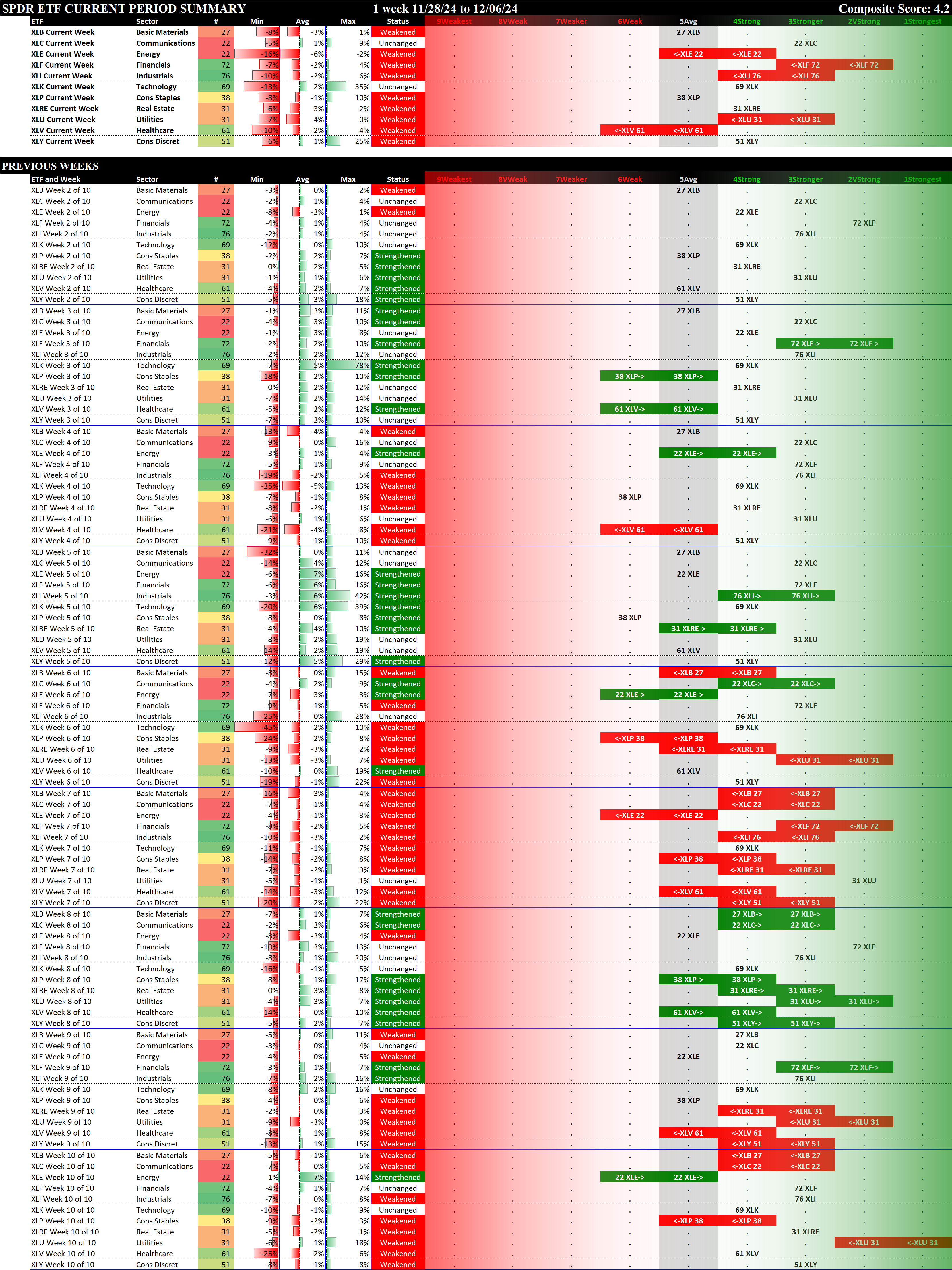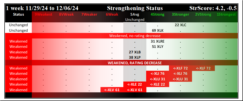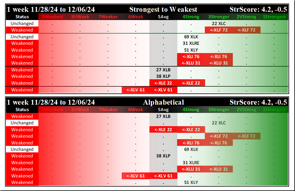 SMO Exclusive: SPDR Sector ETFs Strength Report Friday 2024-12-06 WEAKENED -0.5 to 4.2 Strength Score