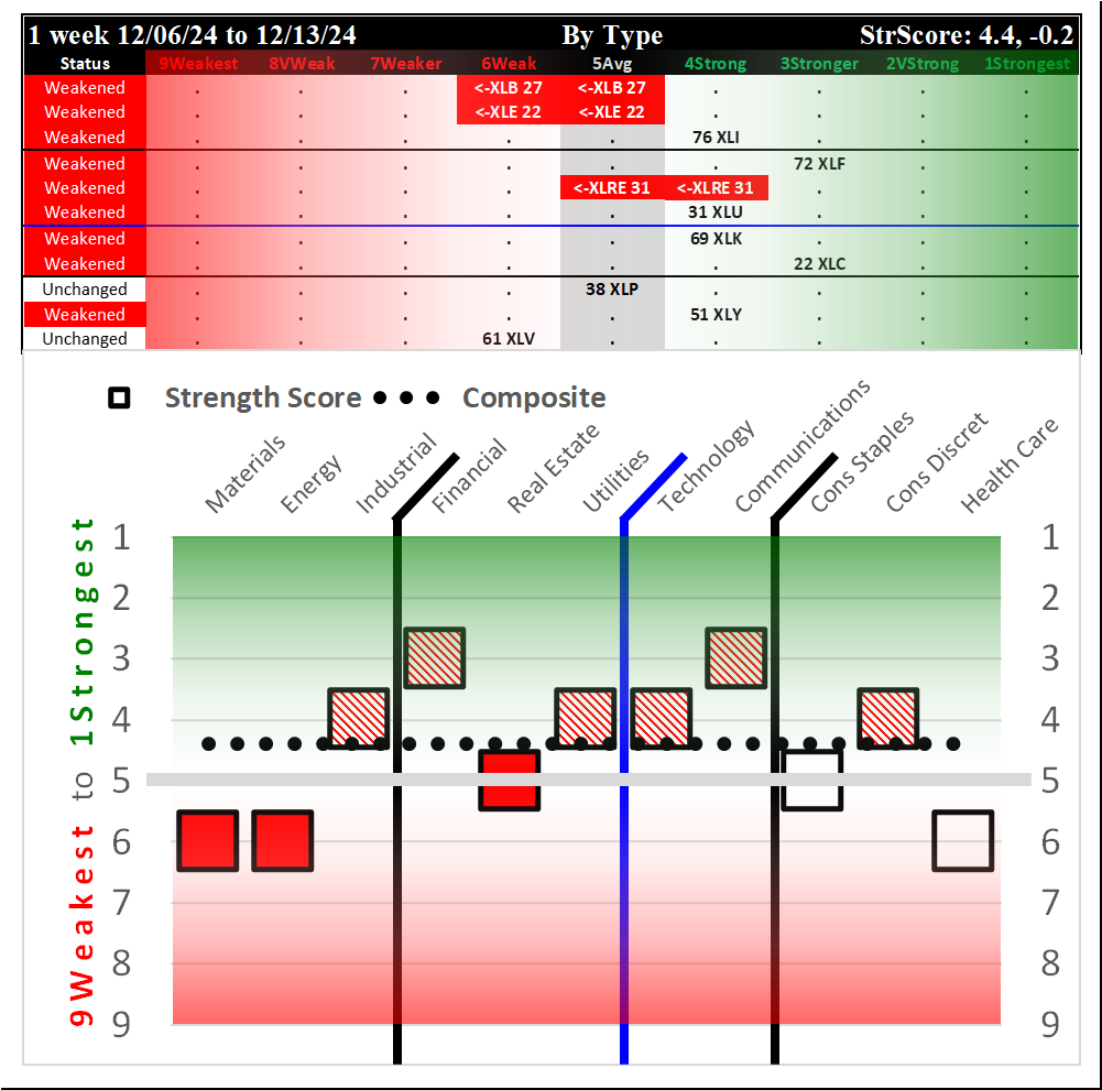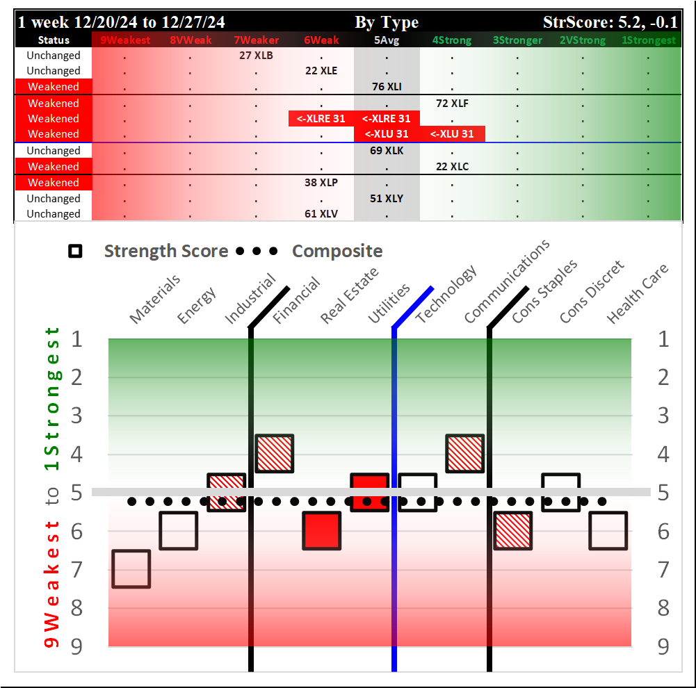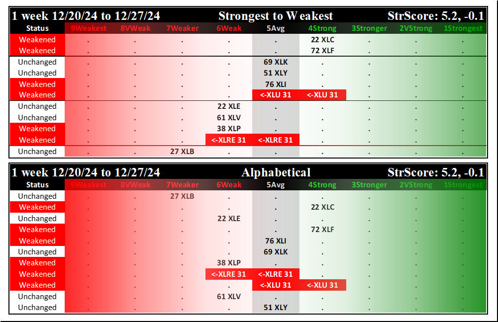 SMO Exclusive: SPDR Sector ETFs Strength Report Friday 2024-12-27 Weakened -0.1 to 5.2 Strength Score