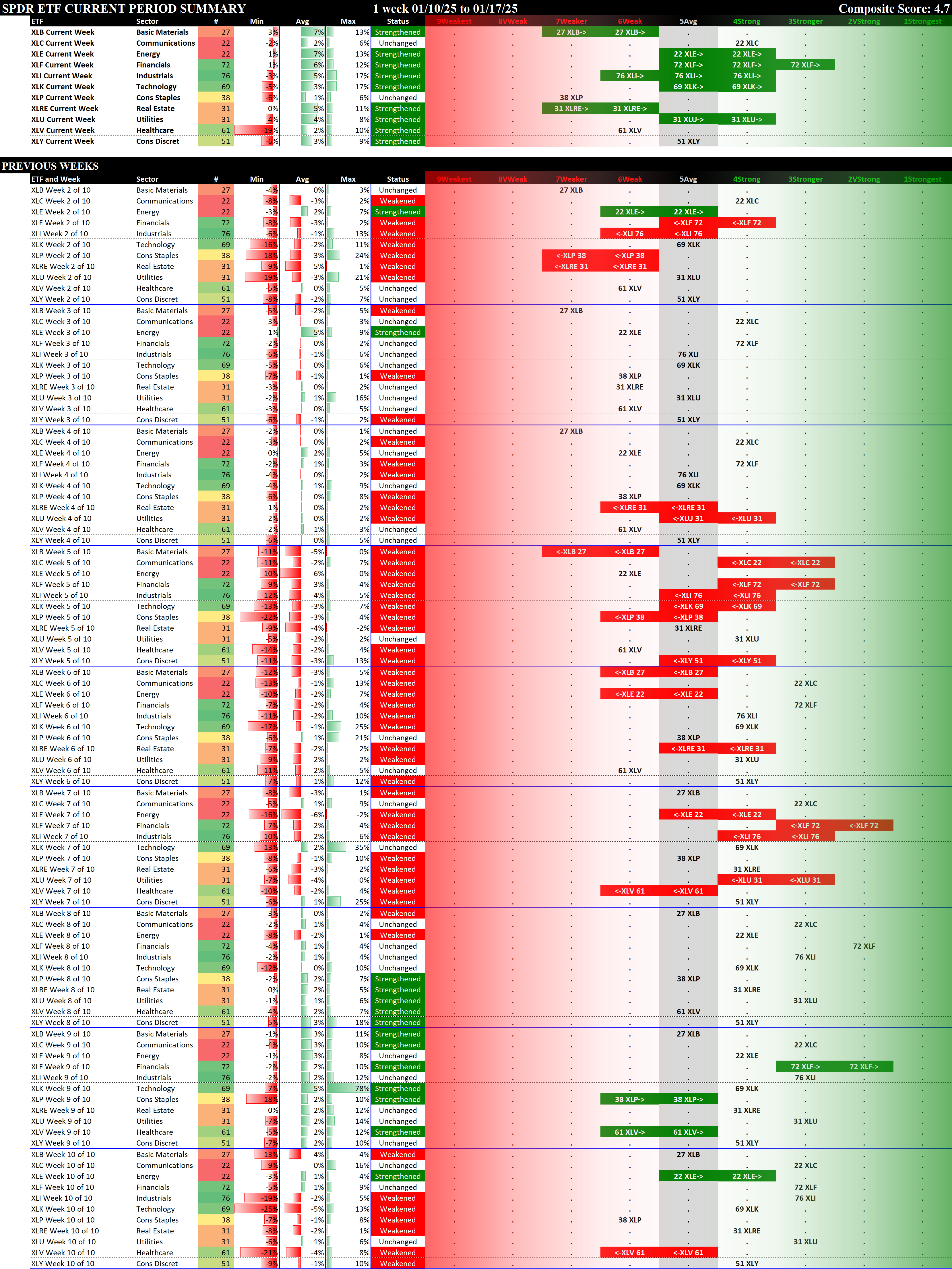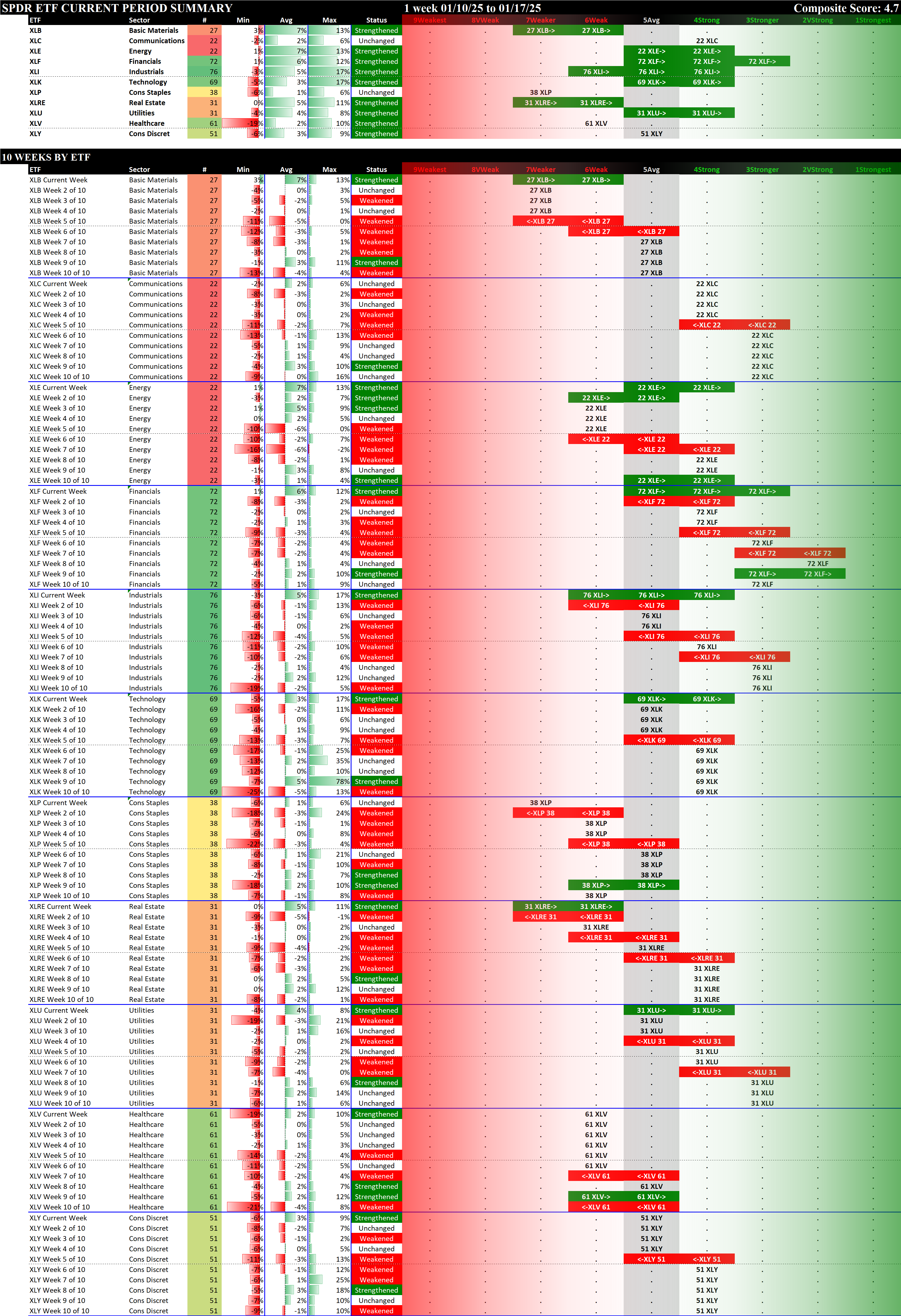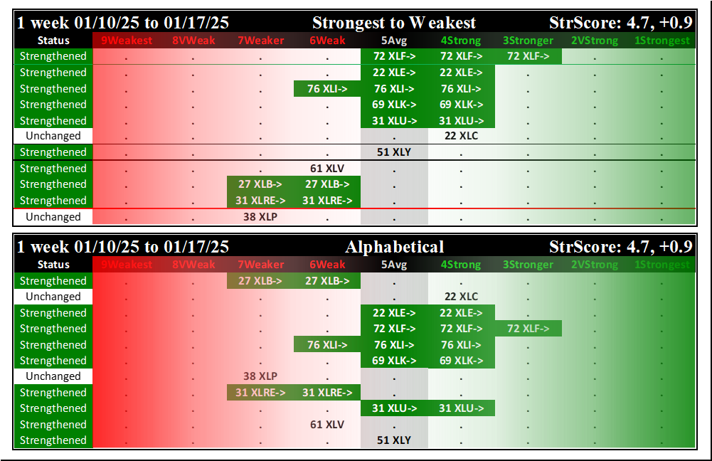 SMO Exclusive: SPDR Sector ETFs Strength Report Friday 2025-01-17 Strengthened +0.9 to 4.7 Strength Score
