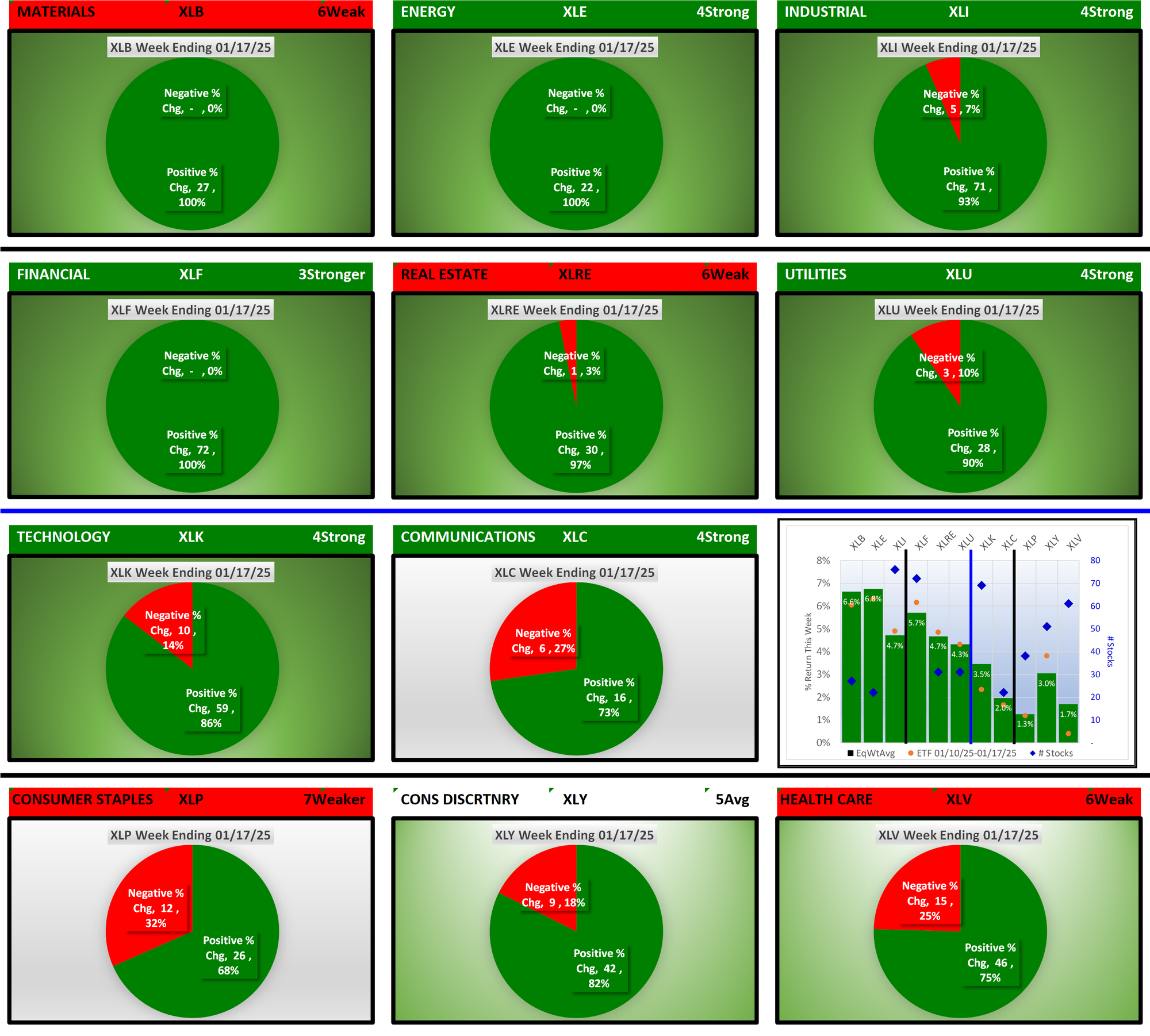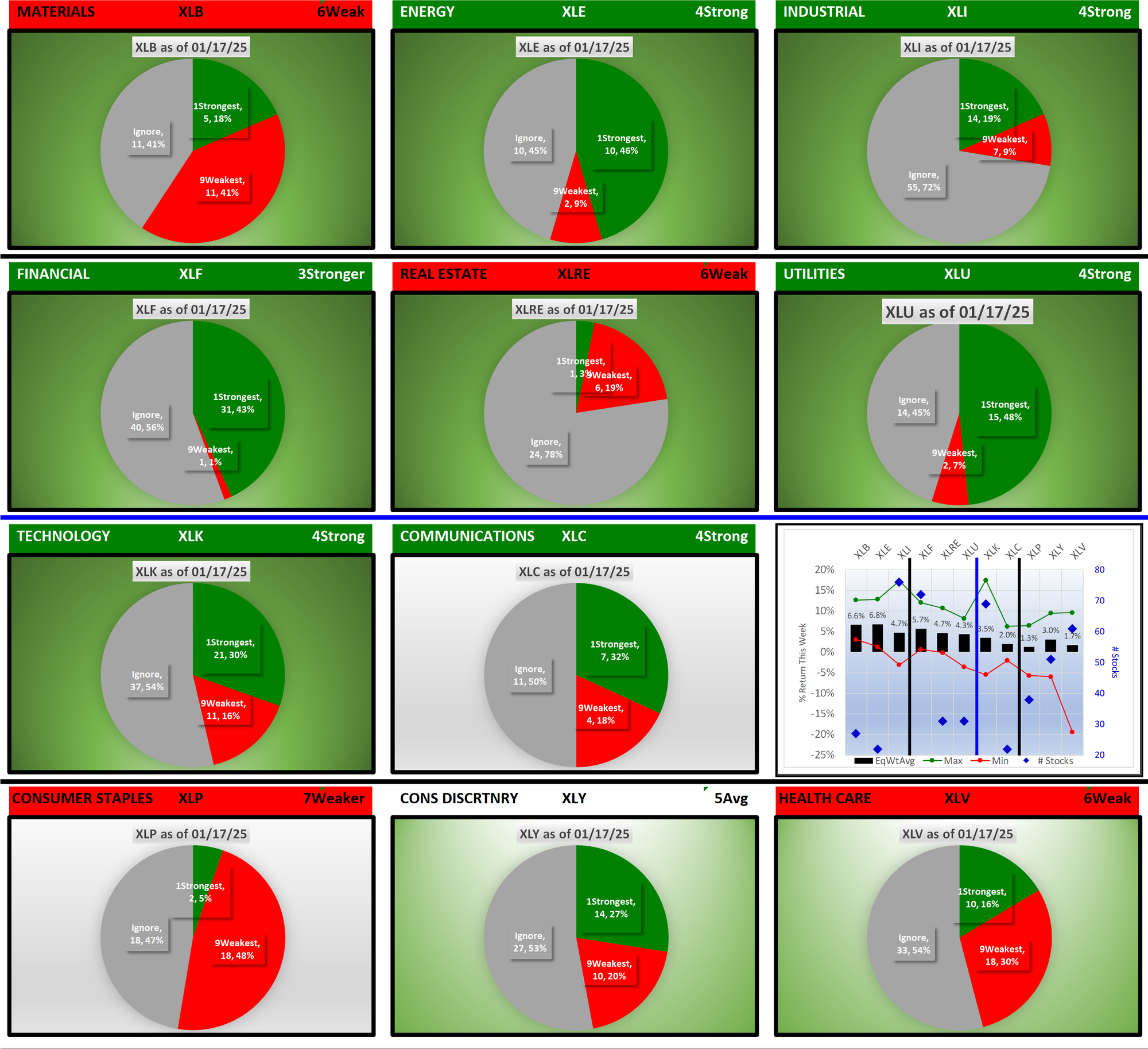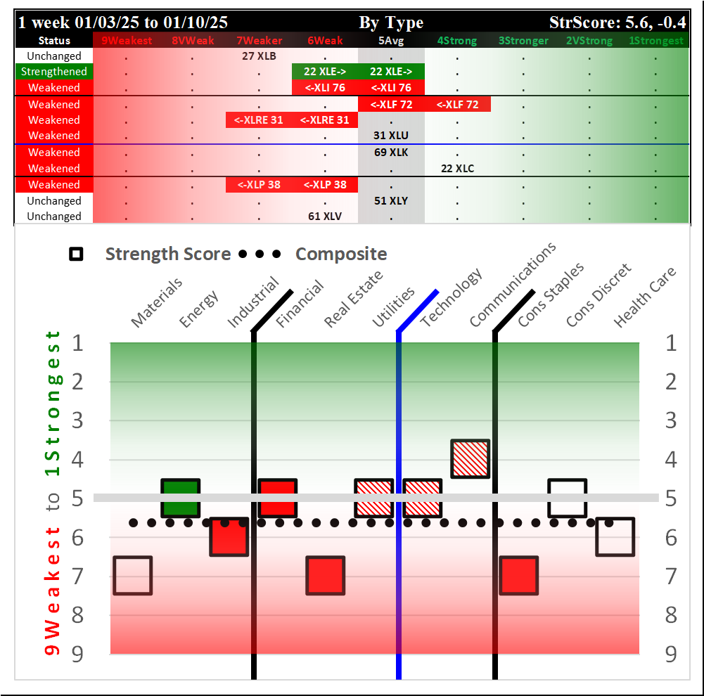 SMO Exclusive: SPDR Sector ETFs Strength Report Friday 2025-01-17 Strengthened +0.9 to 4.7 Strength Score