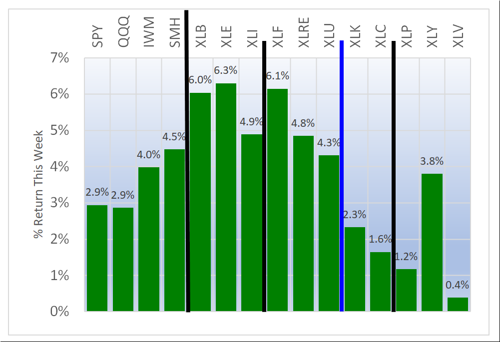 - XLF/Financial, 5.7% average for 72 stocks