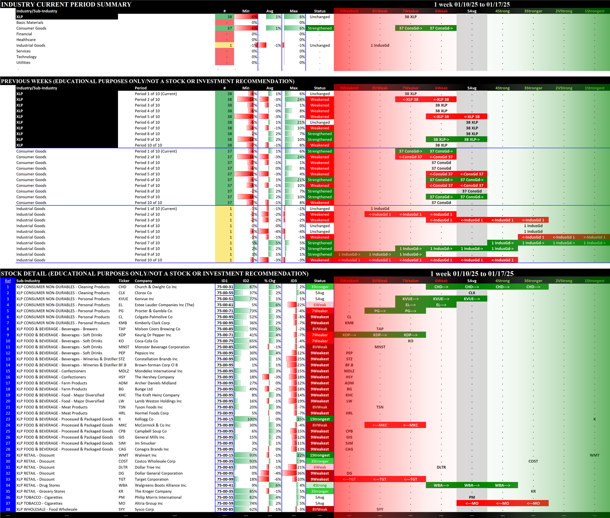 2.7 XLP Consumer Staples (38 stocks, mid-sized), Unchanged at 7Weaker = WORST