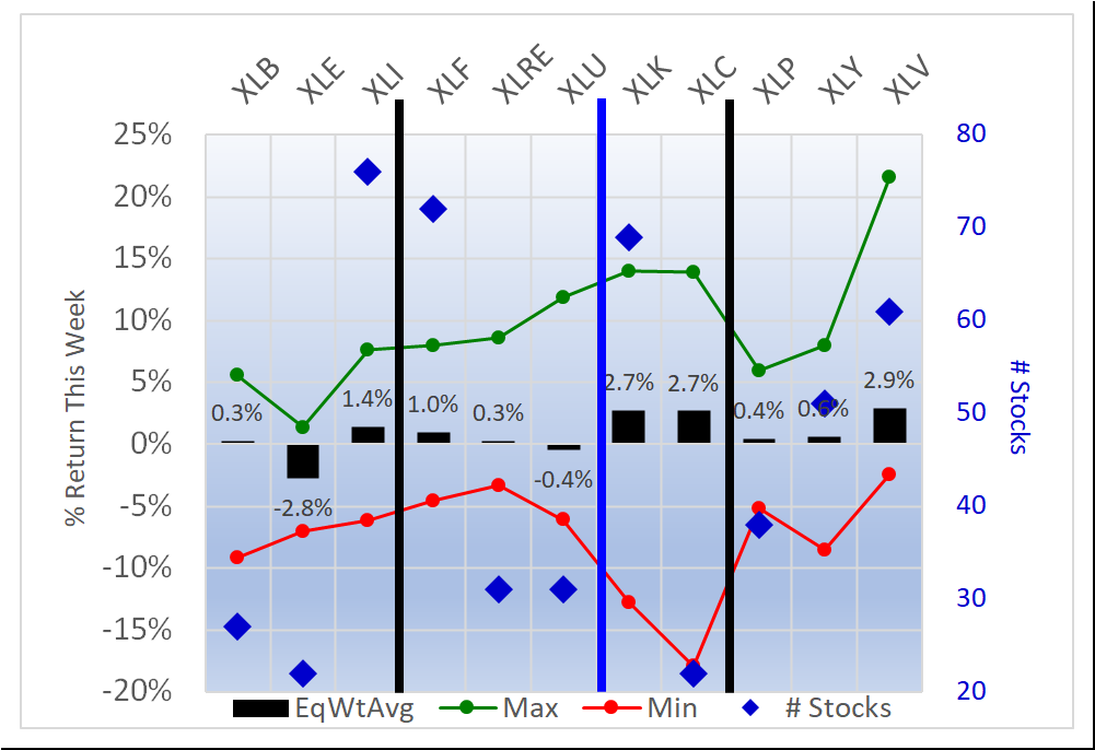 - XLRE/Real Estate, 0.3% average for 31 stocks