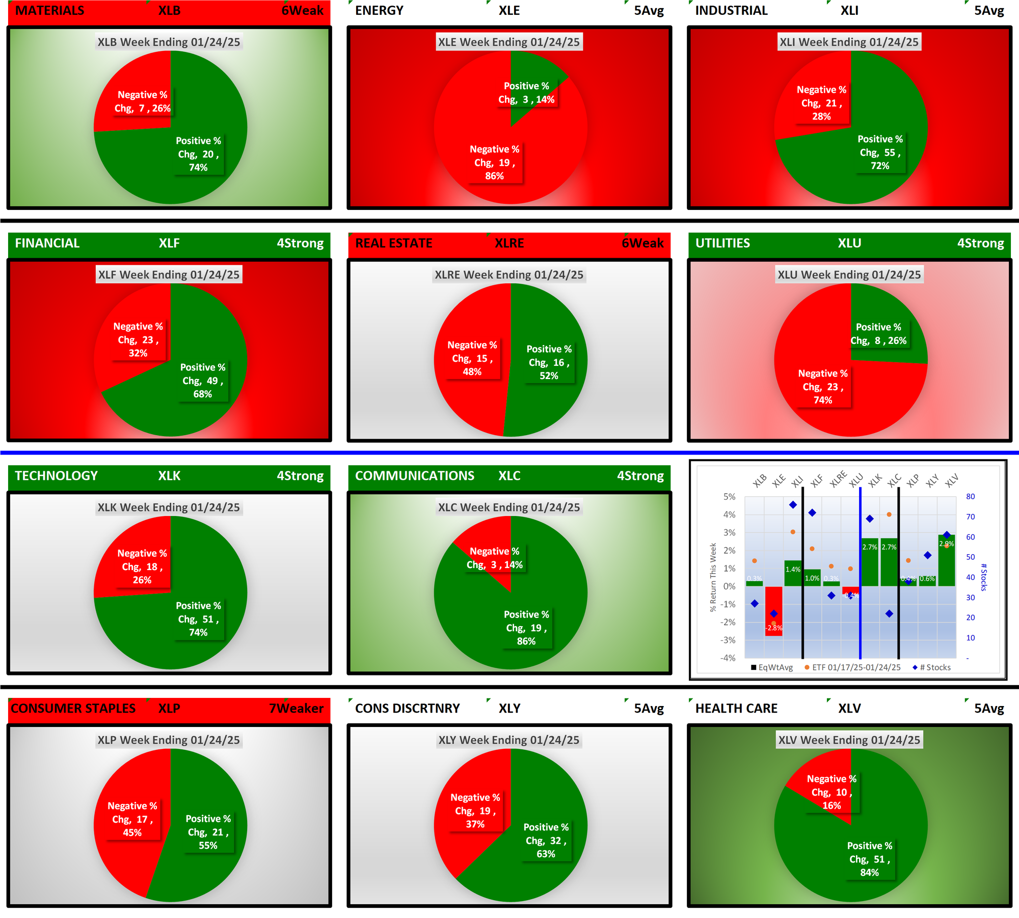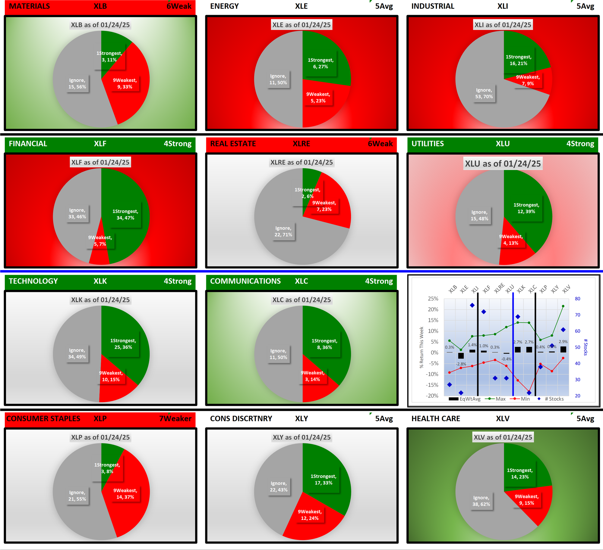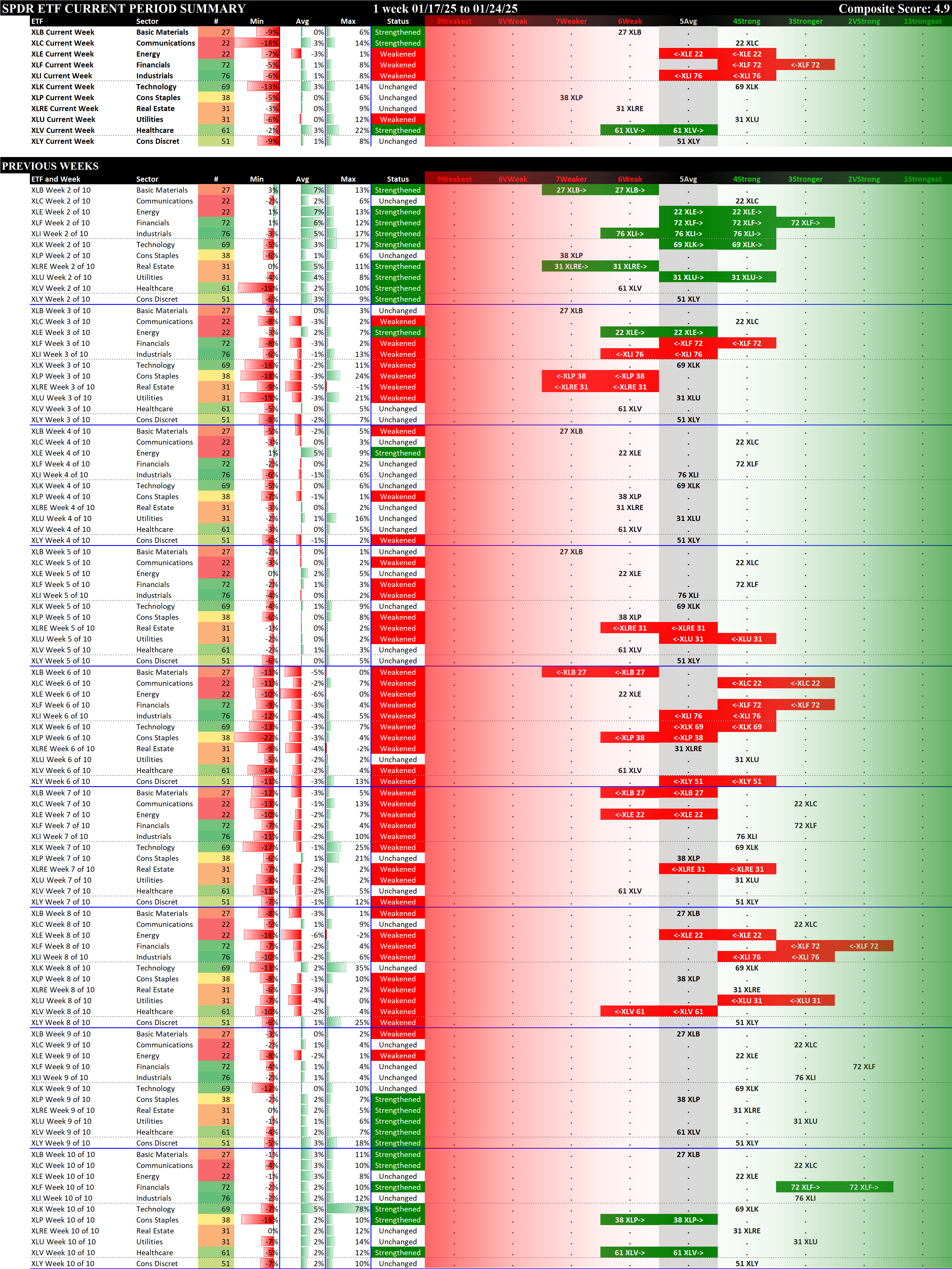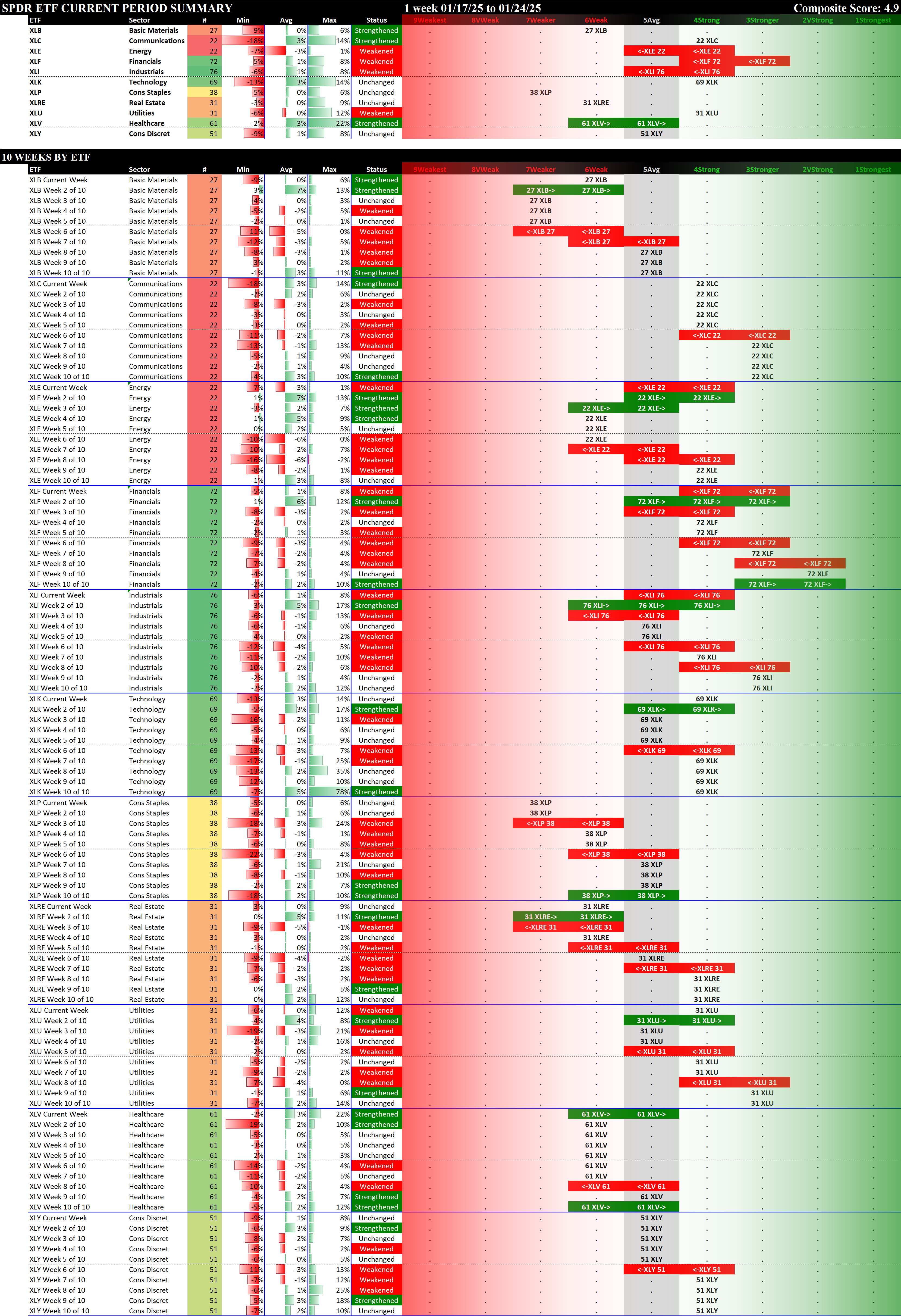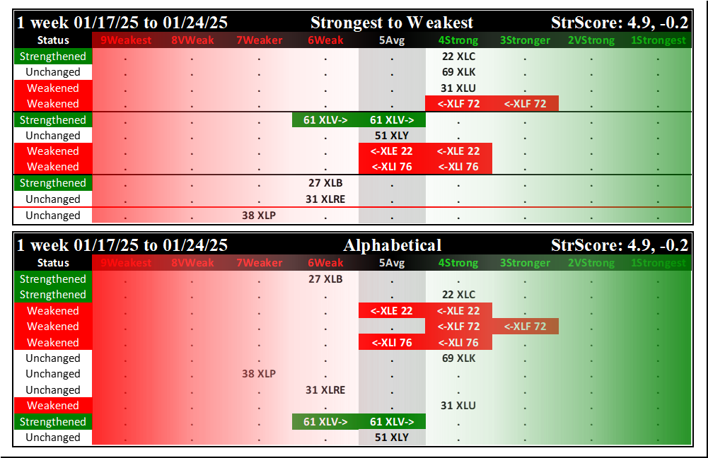 SMO Exclusive: SPDR Sector ETFs Strength Report Friday 2025-01-24 Weakened -0.2 to 4.9 Strength Score