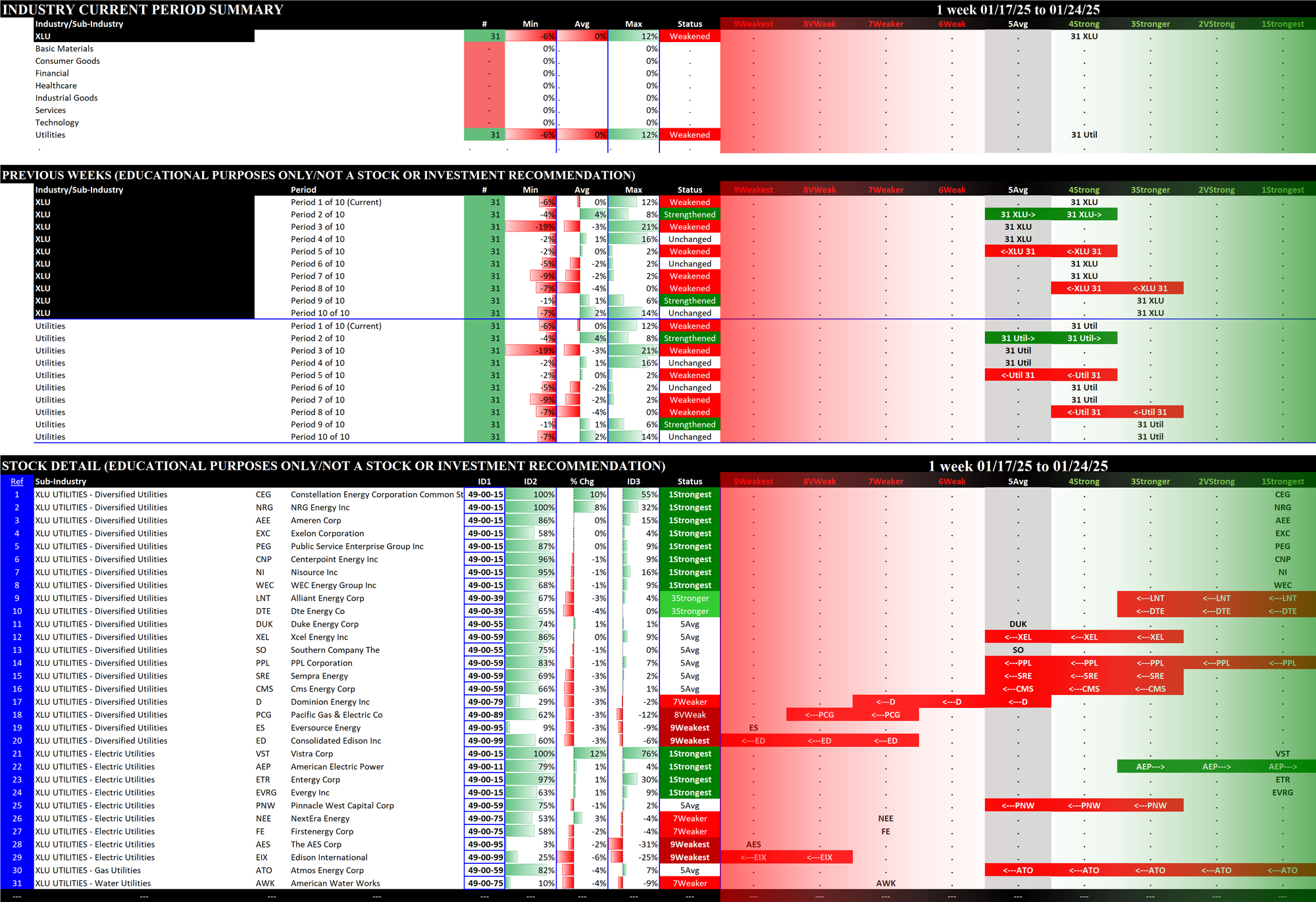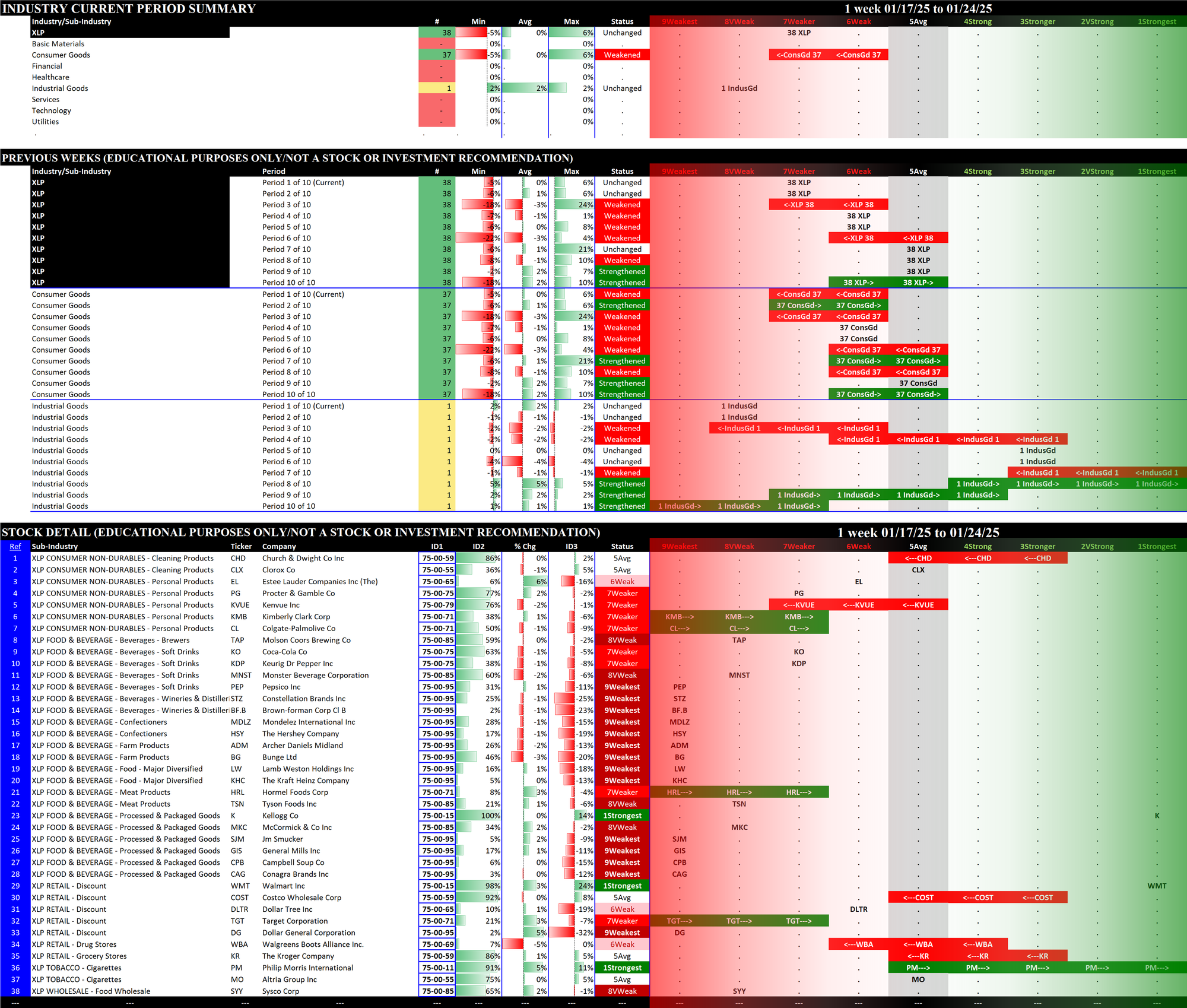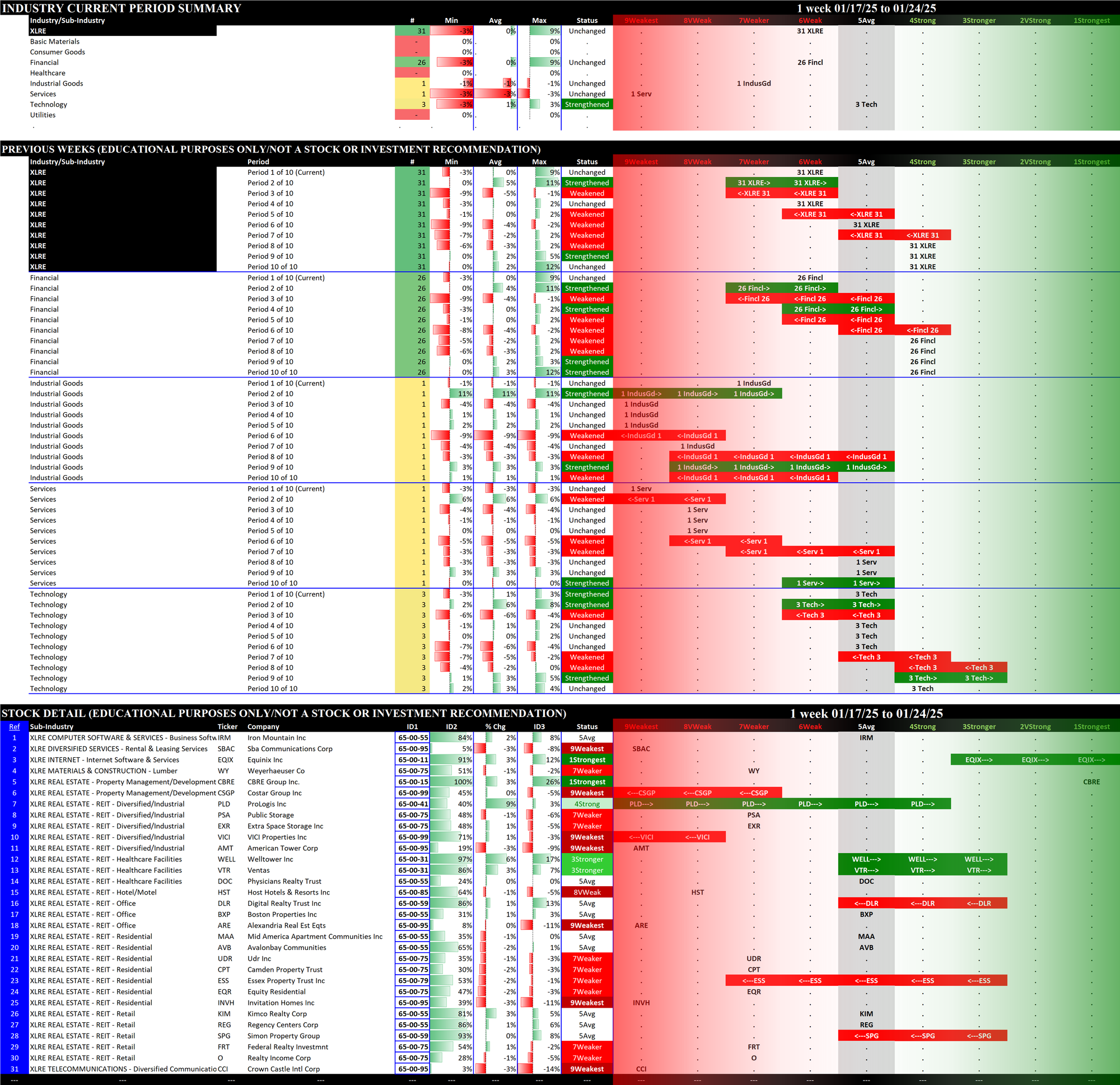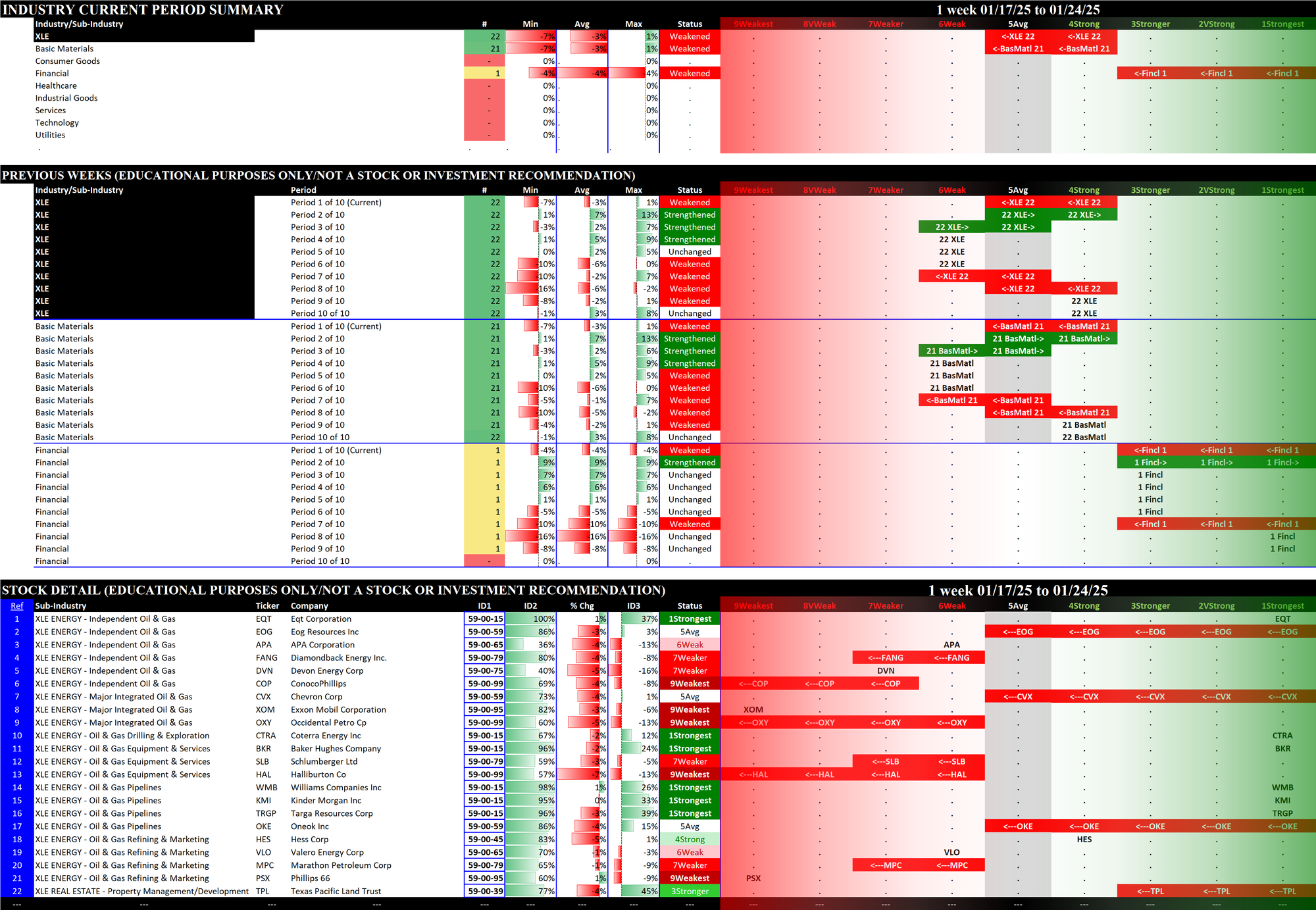 SMO Exclusive: SPDR Sector ETFs Strength Report Friday 2025-01-24 Weakened -0.2 to 4.9 Strength Score