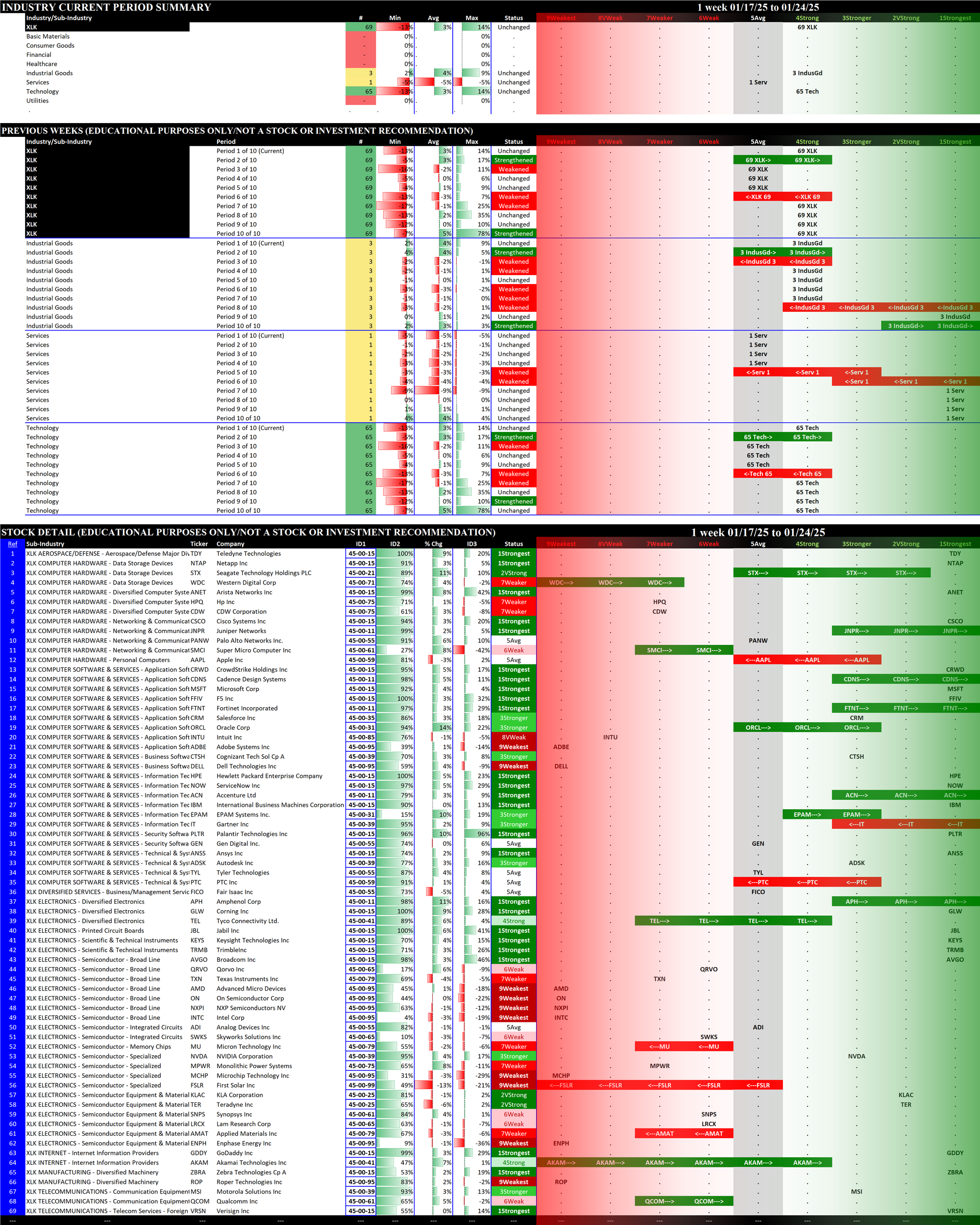 Each week, the analysis clearly identifies which sectors and stocks have gained, remained flat, or lost ground. With this data, investors can objectively assess sector and stock strength, refining their timing and positioning for new investments. Ultimately, this approach aims to enhance long-term portfolio performance by leveraging momentum – a proven market factor – to inform data-driven investment decisions.