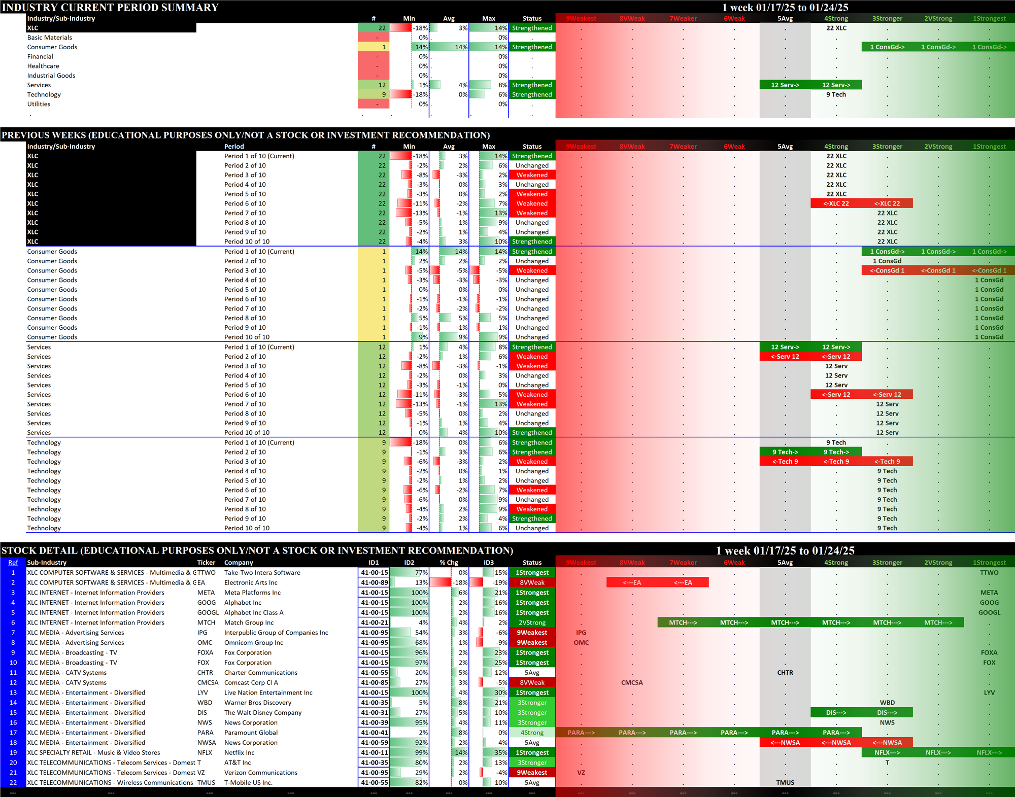 2.2 XLC Communication Services (22 stocks, small), Strengthened at 4Strong = tied for BEST