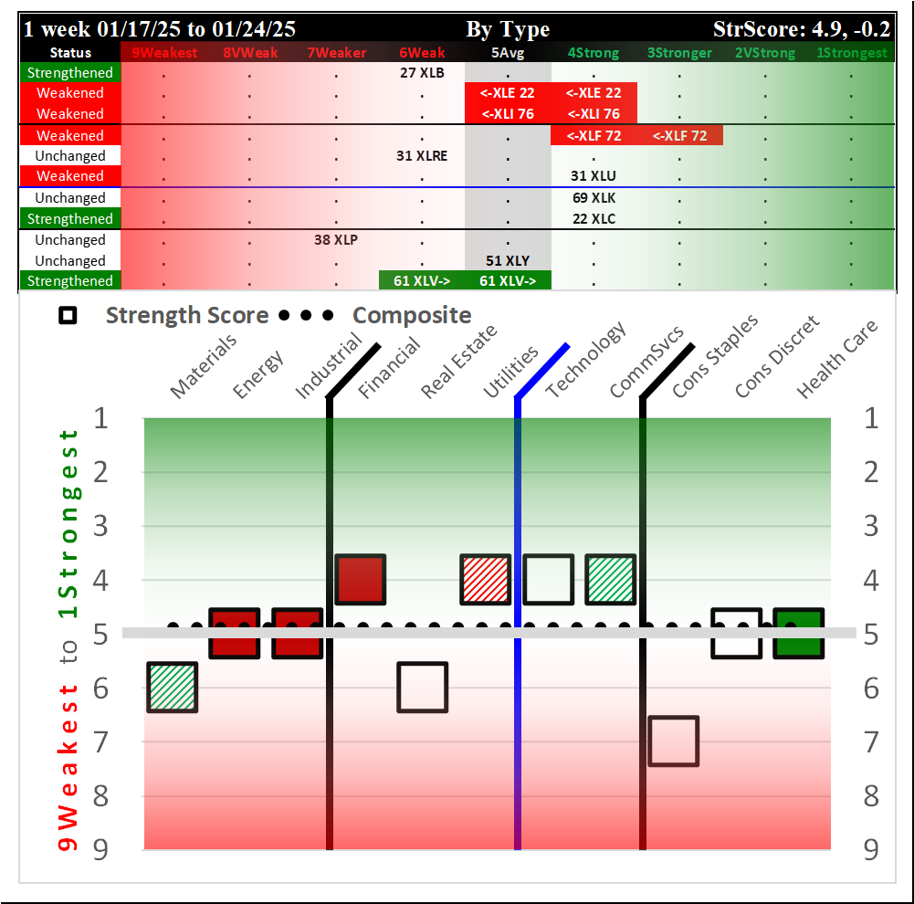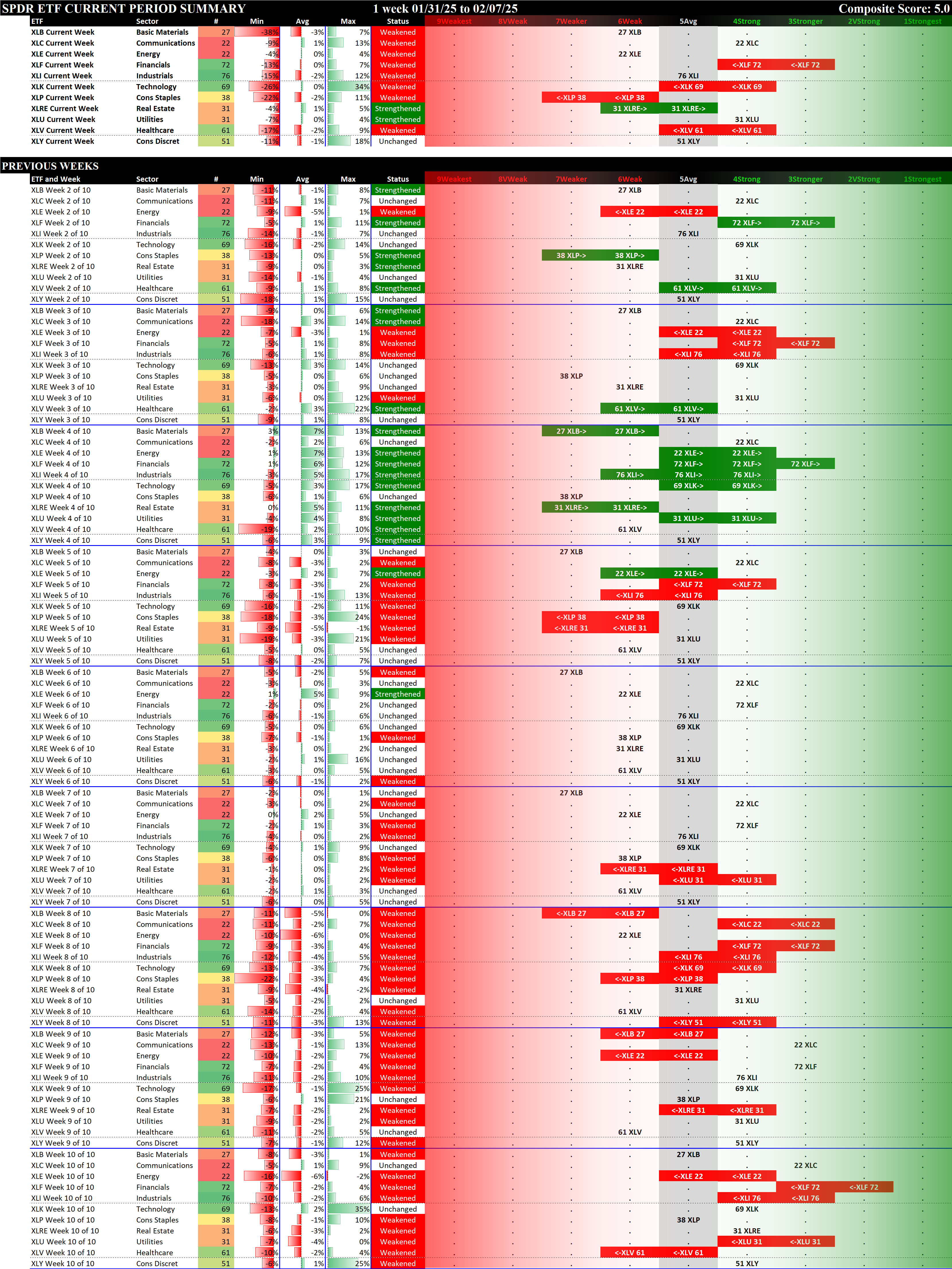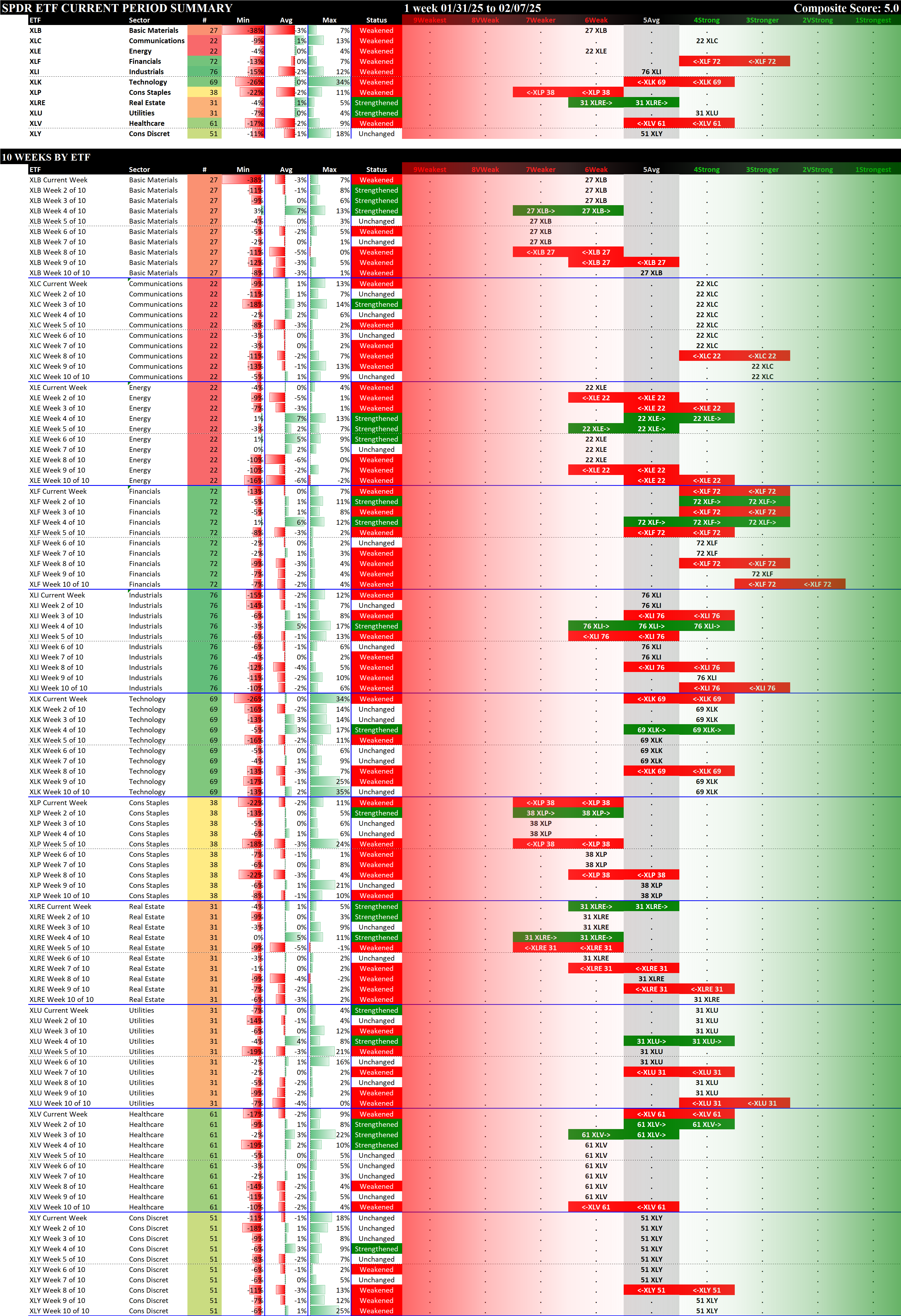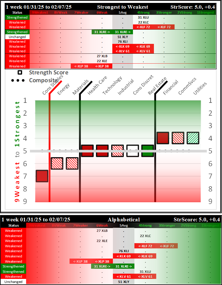 SMO Exclusive: SPDR Sector ETFs Strength Report Friday 2025-02-07 Weakened -0.4 to 5.0 Strength Score