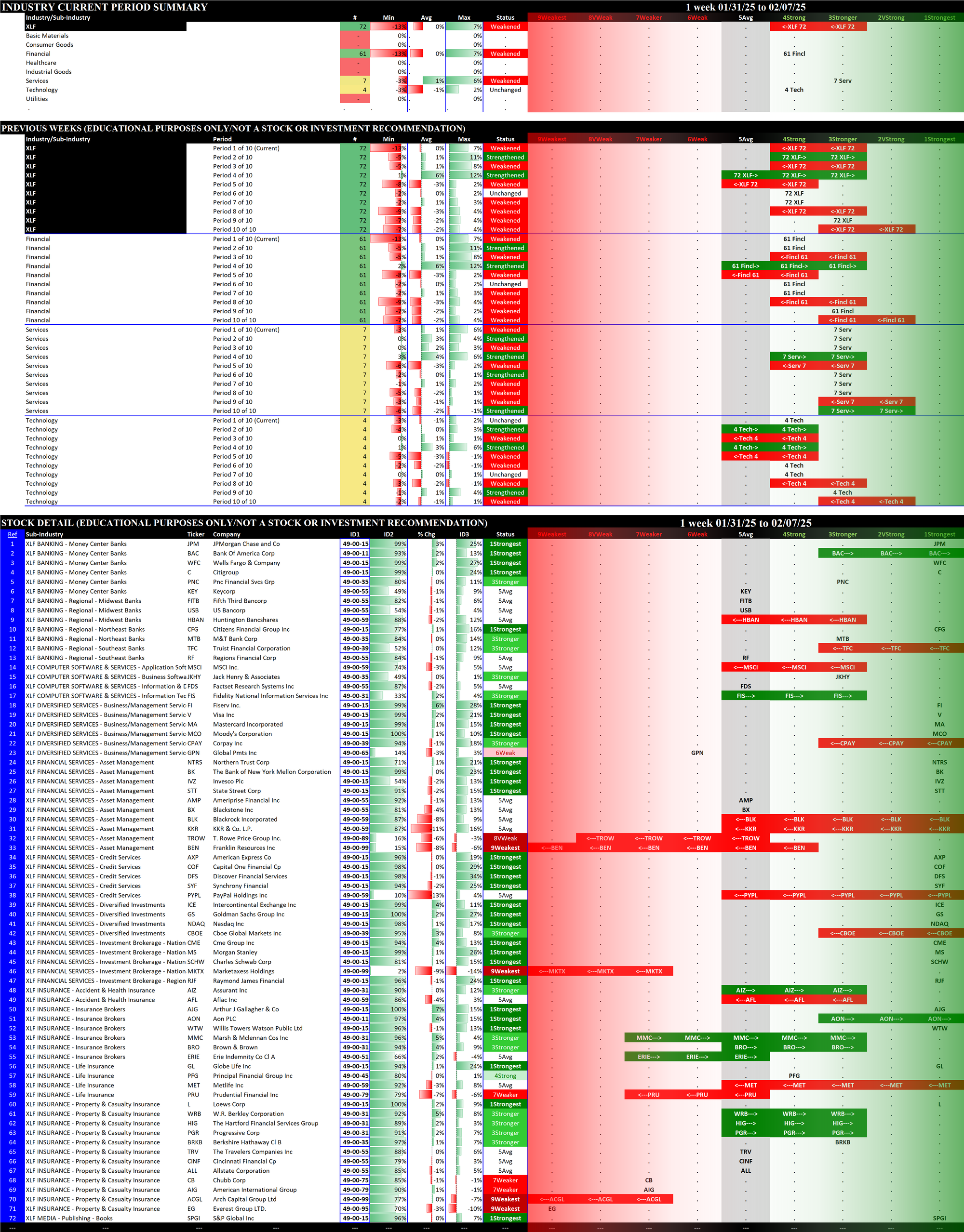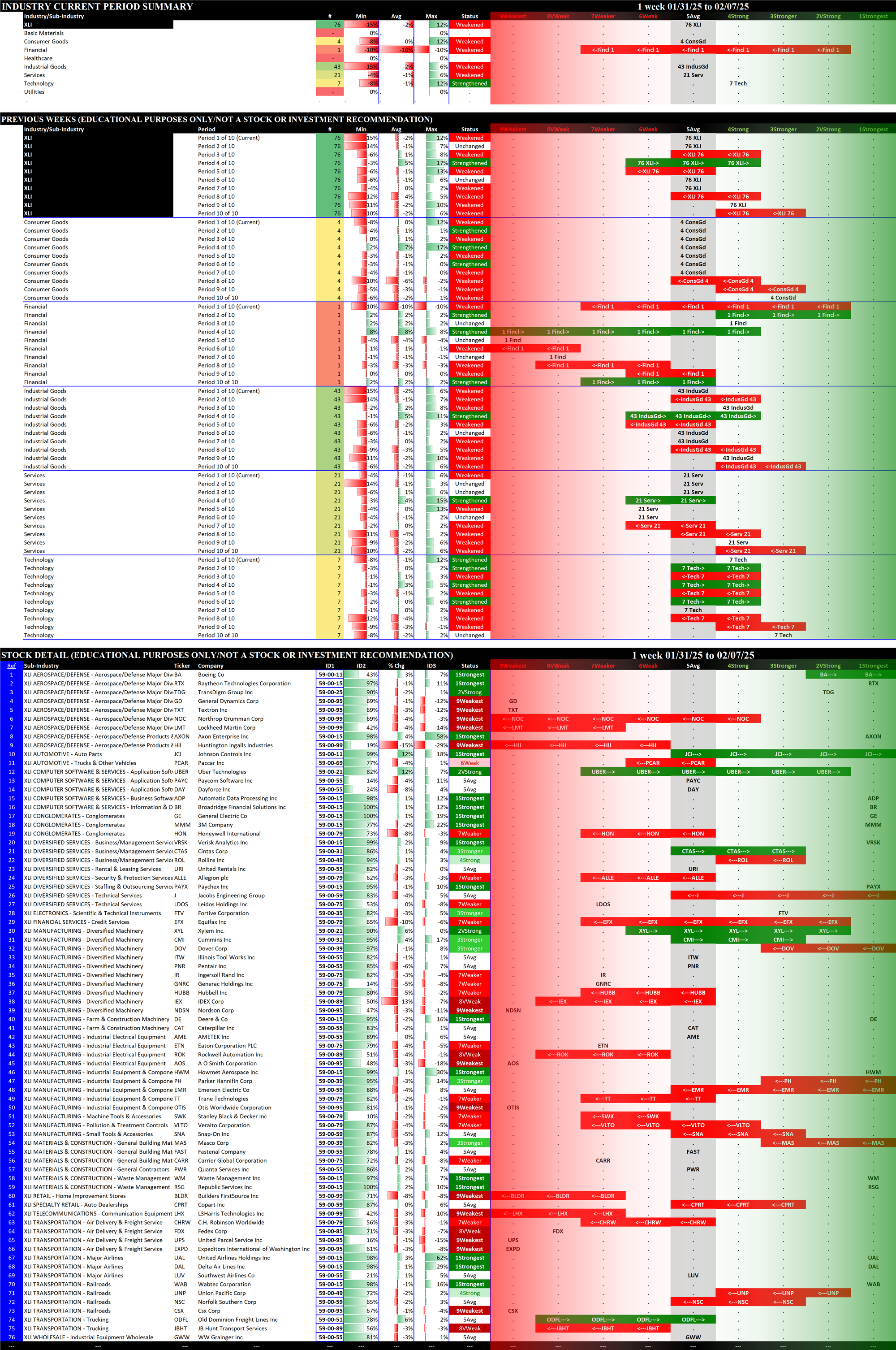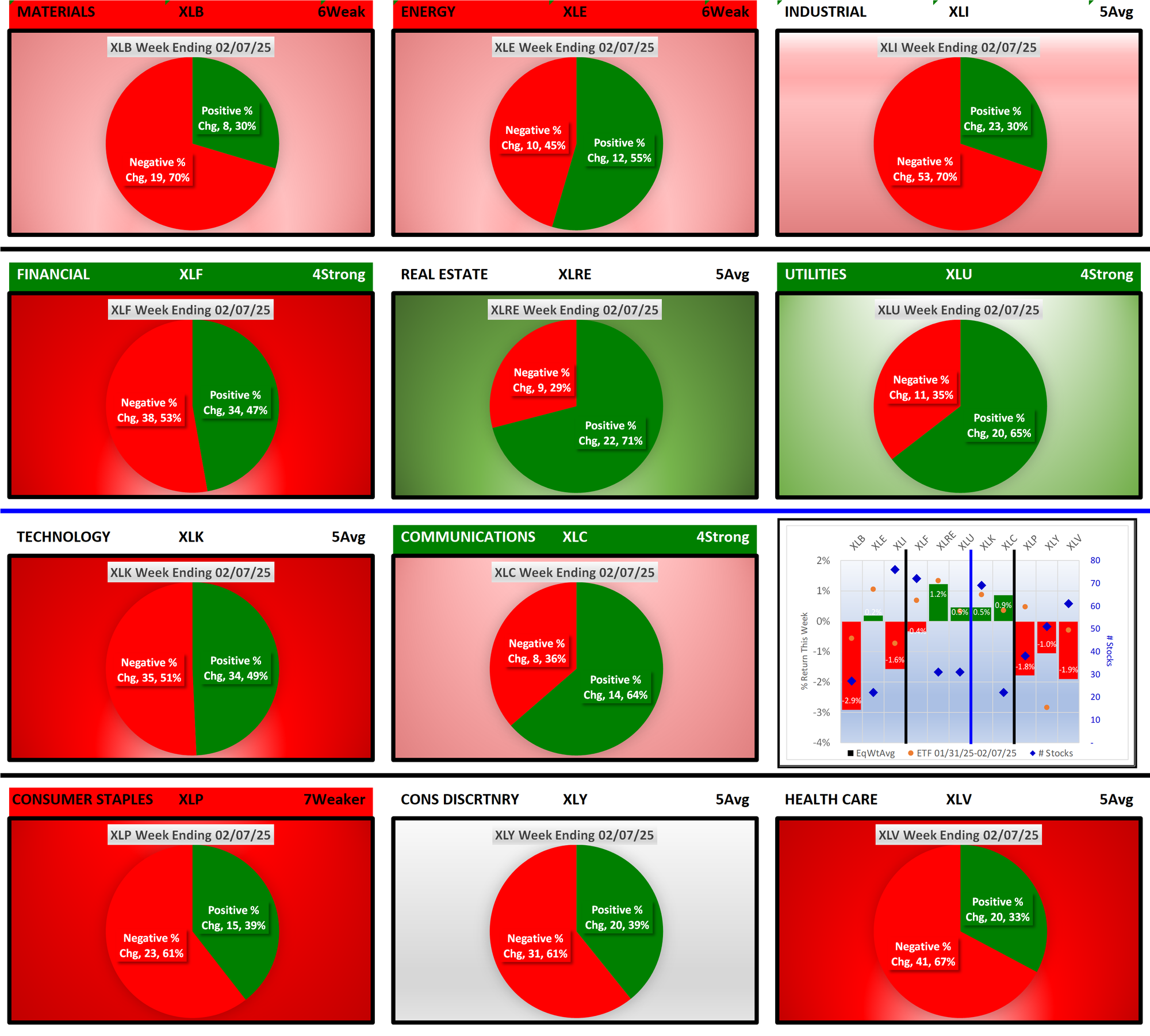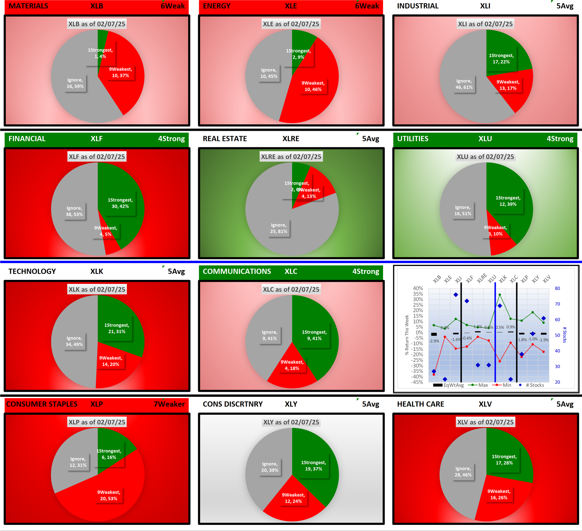 SMO Exclusive: SPDR Sector ETFs Strength Report Friday 2025-02-07 Weakened -0.4 to 5.0 Strength Score