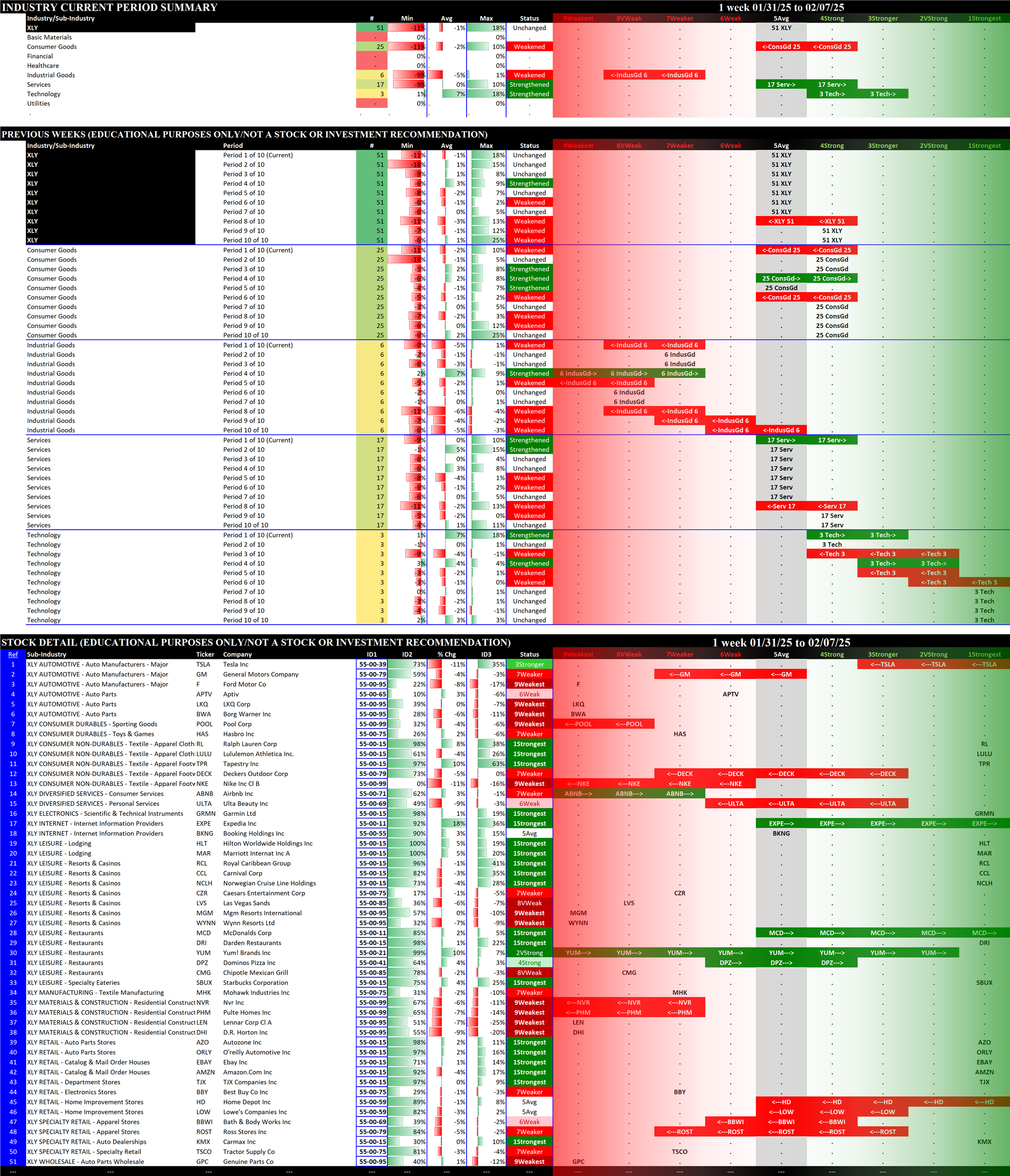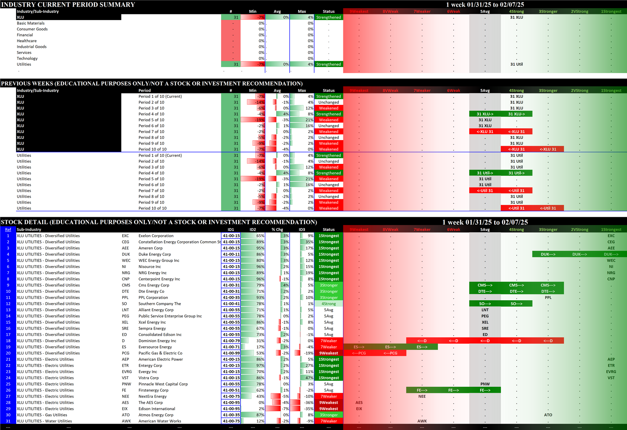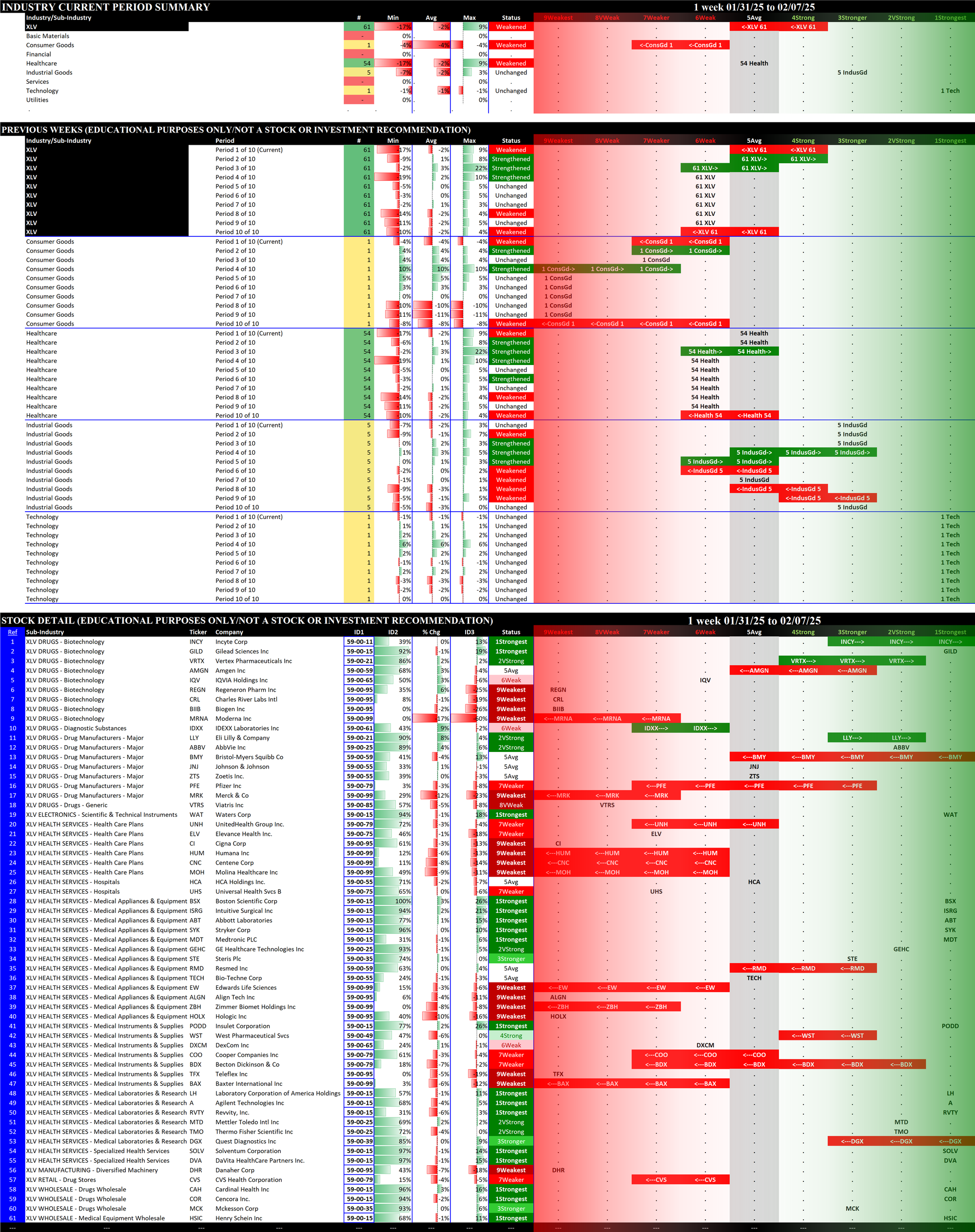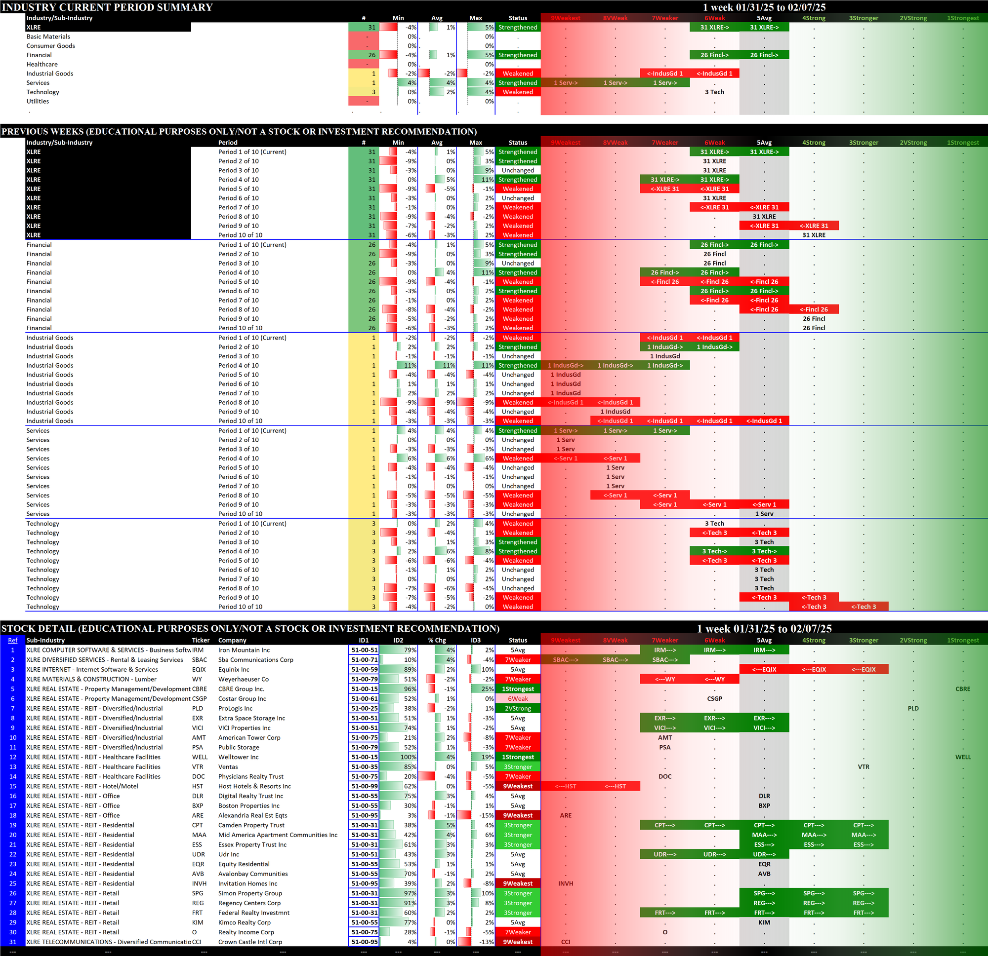 SMO Exclusive: SPDR Sector ETFs Strength Report Friday 2025-02-07 Weakened -0.4 to 5.0 Strength Score