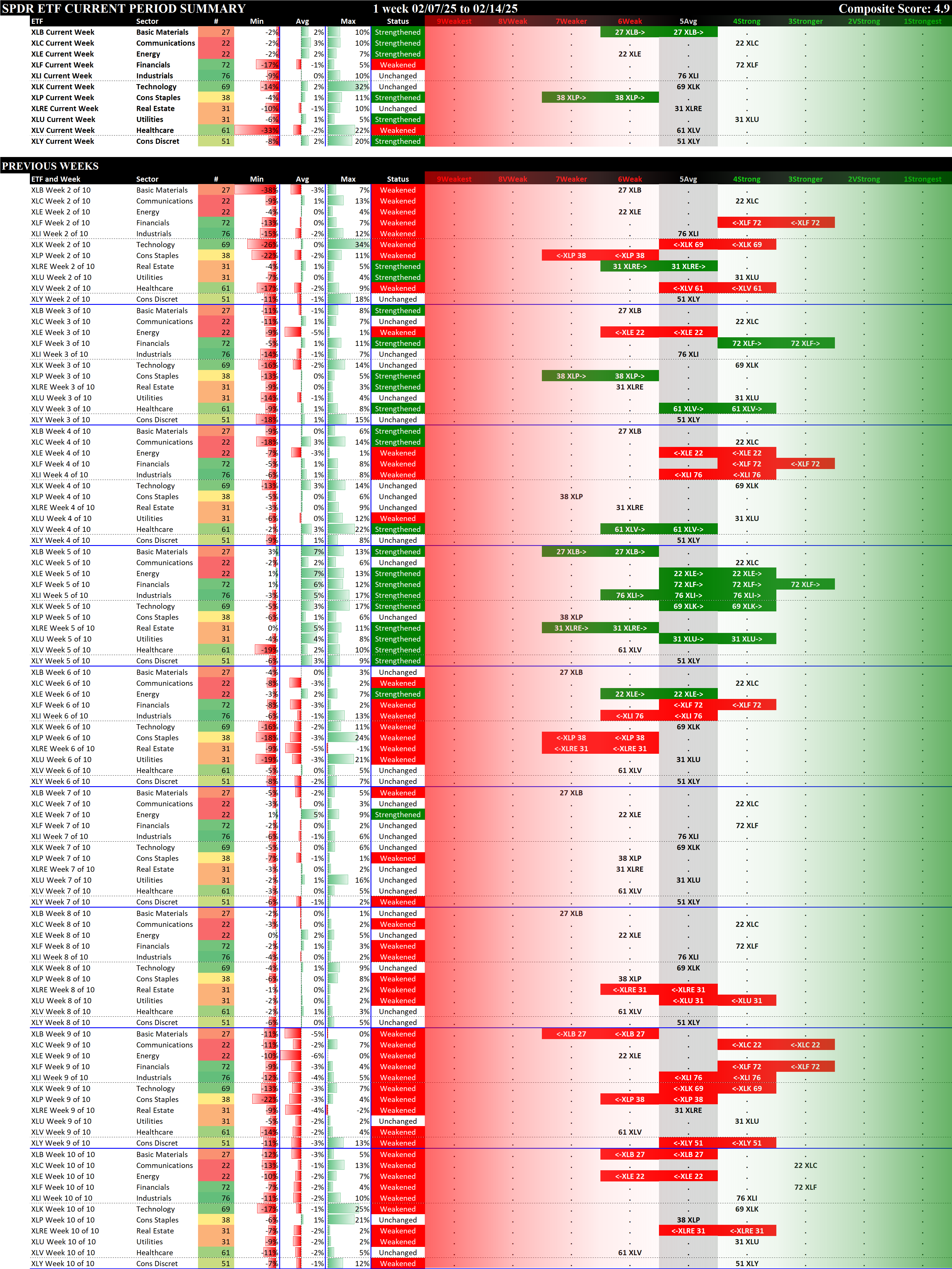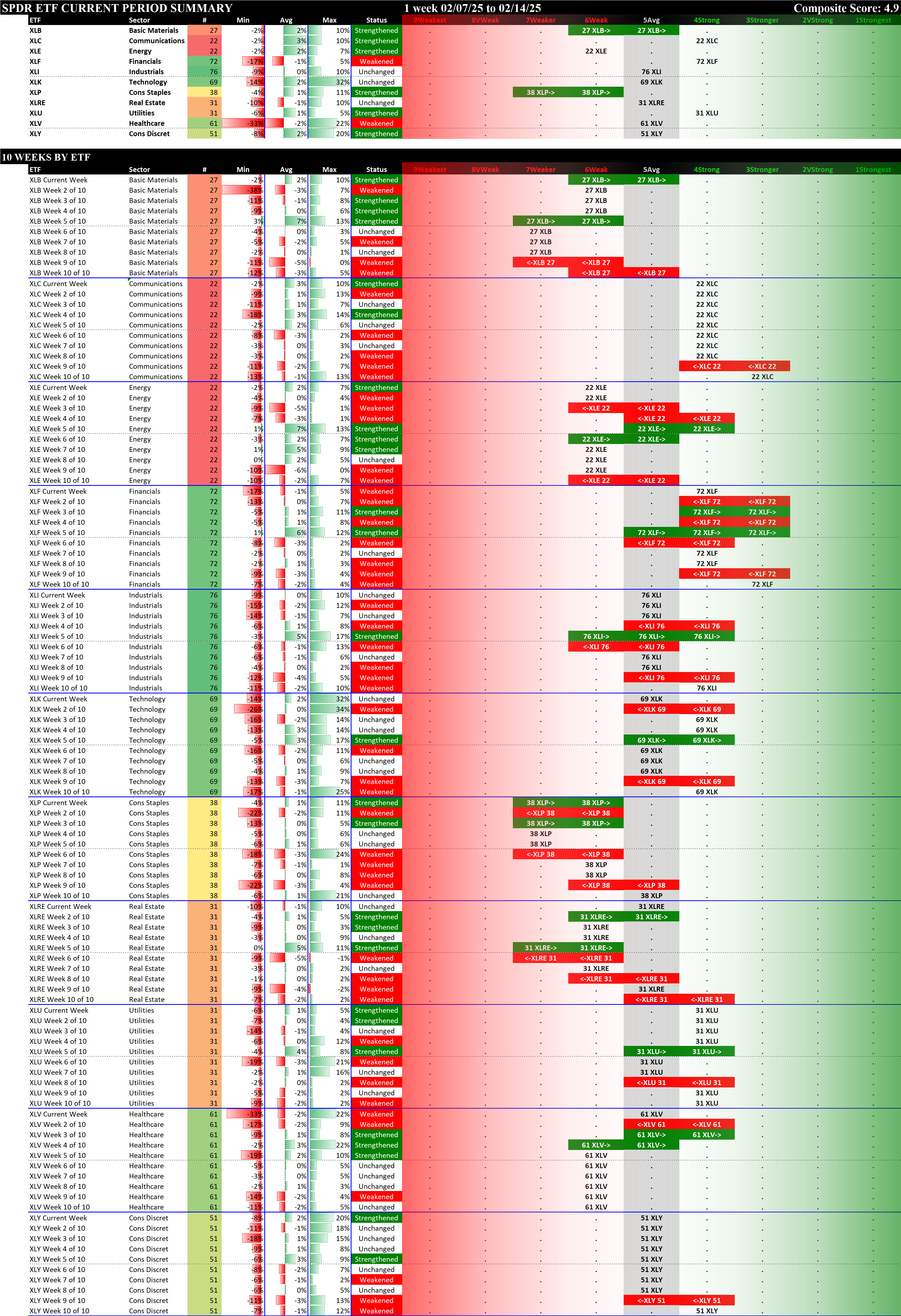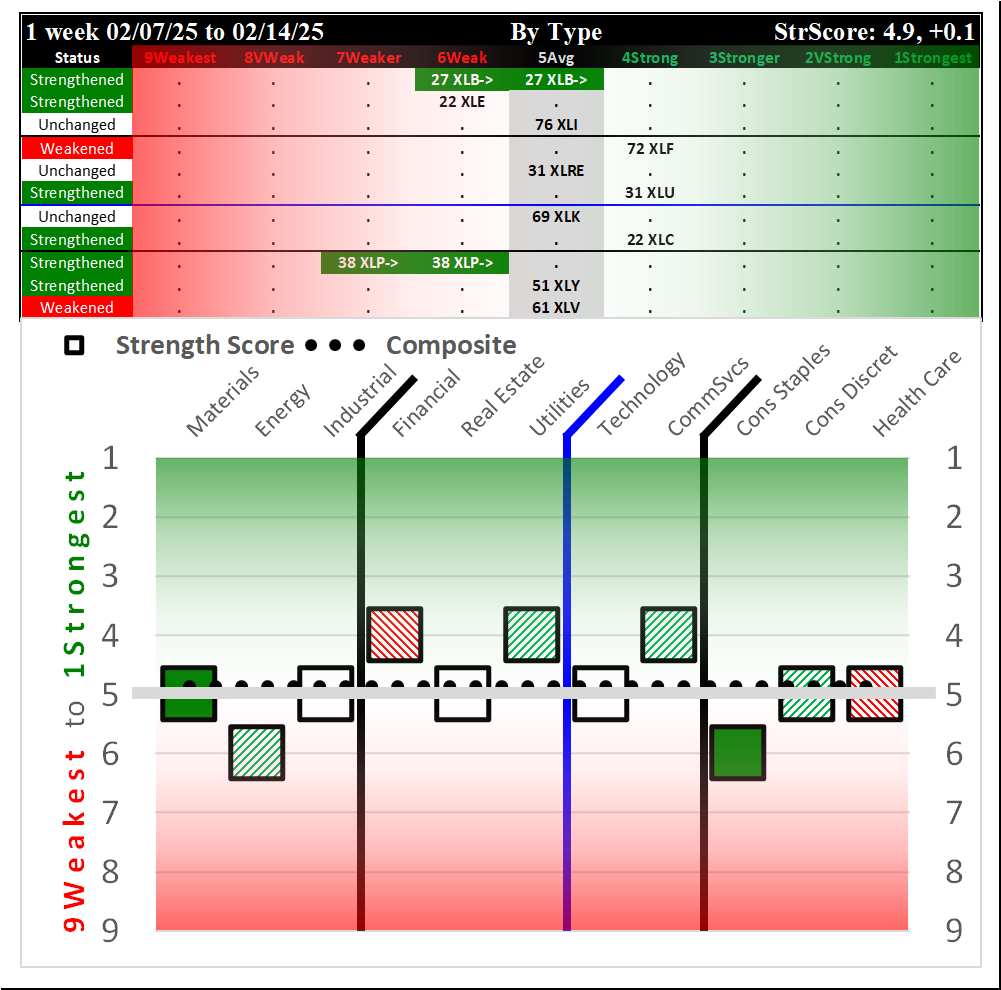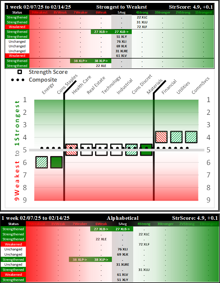 SMO Exclusive: SPDR Sector ETFs Strength Report Friday 2025-02-14 Strengthened +0.1 to 4.9 Strength Score