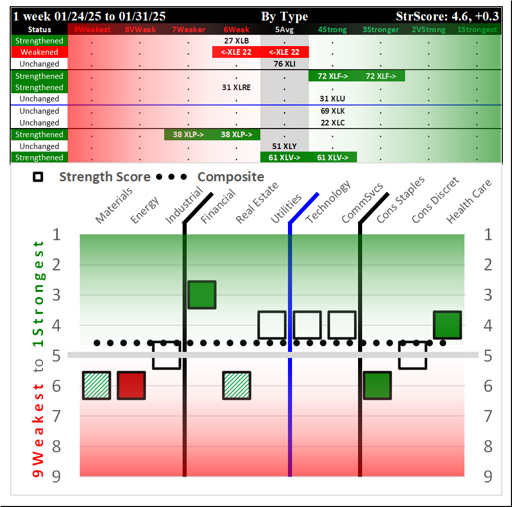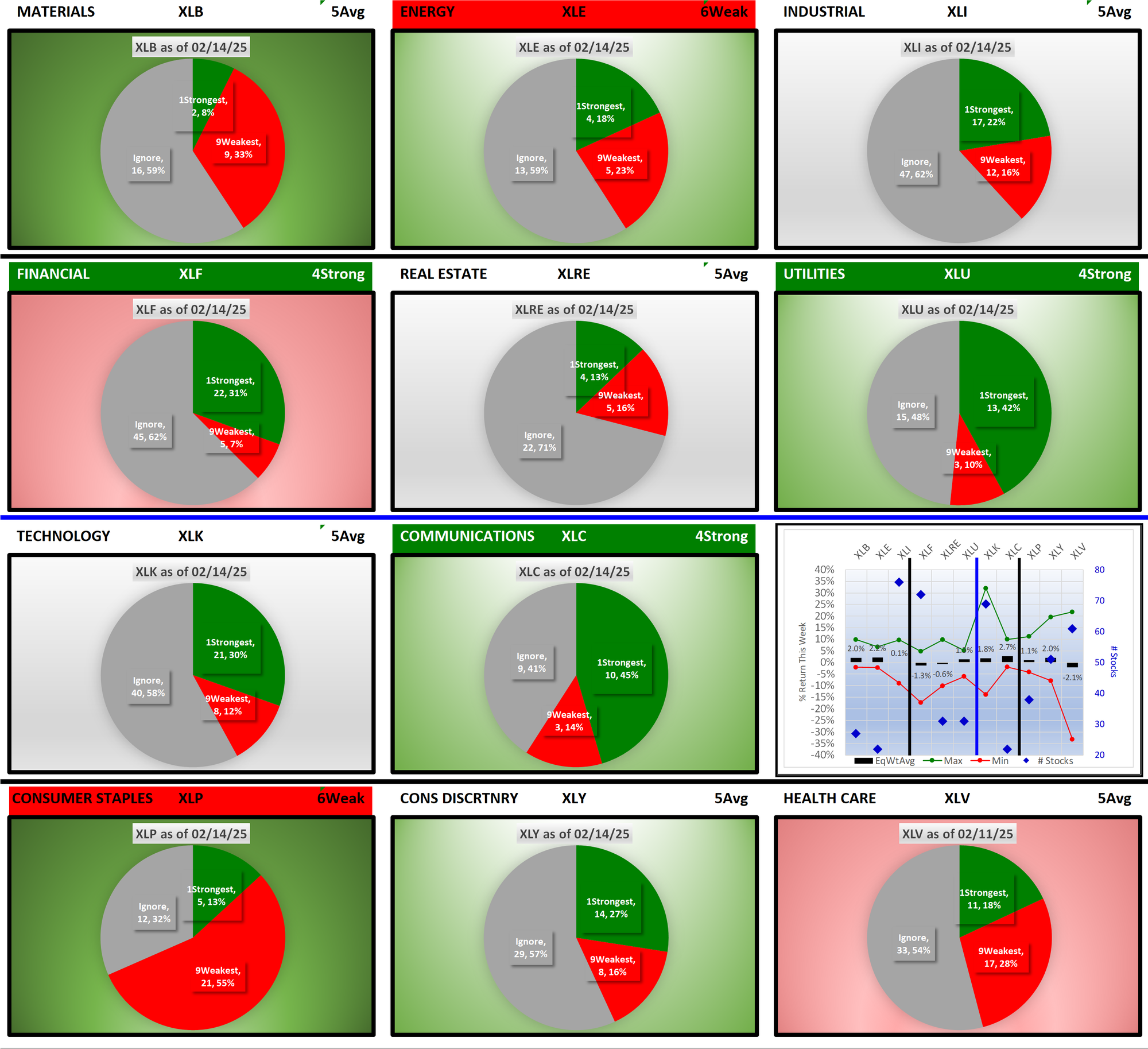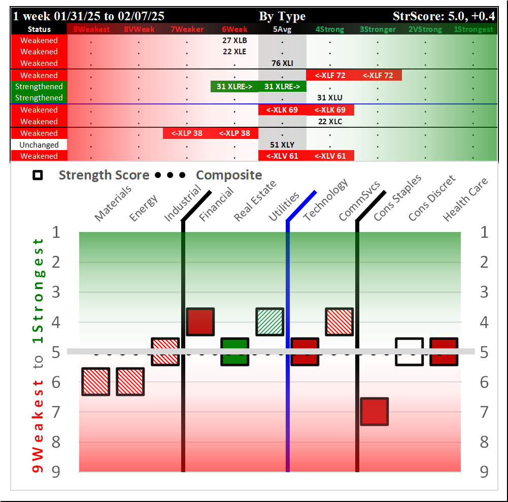 SMO Exclusive: SPDR Sector ETFs Strength Report Friday 2025-02-14 Strengthened +0.1 to 4.9 Strength Score