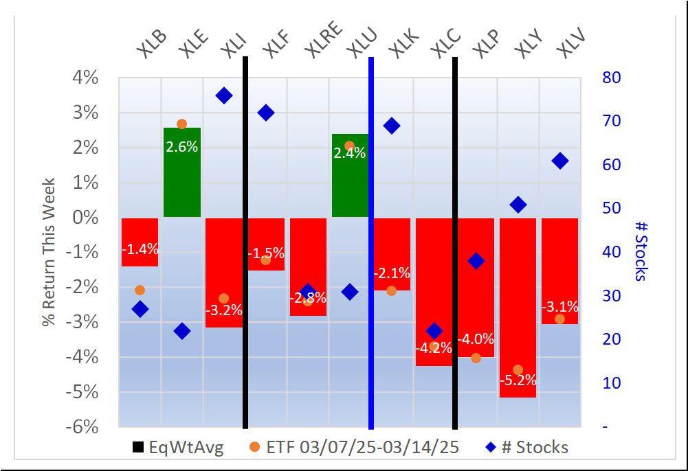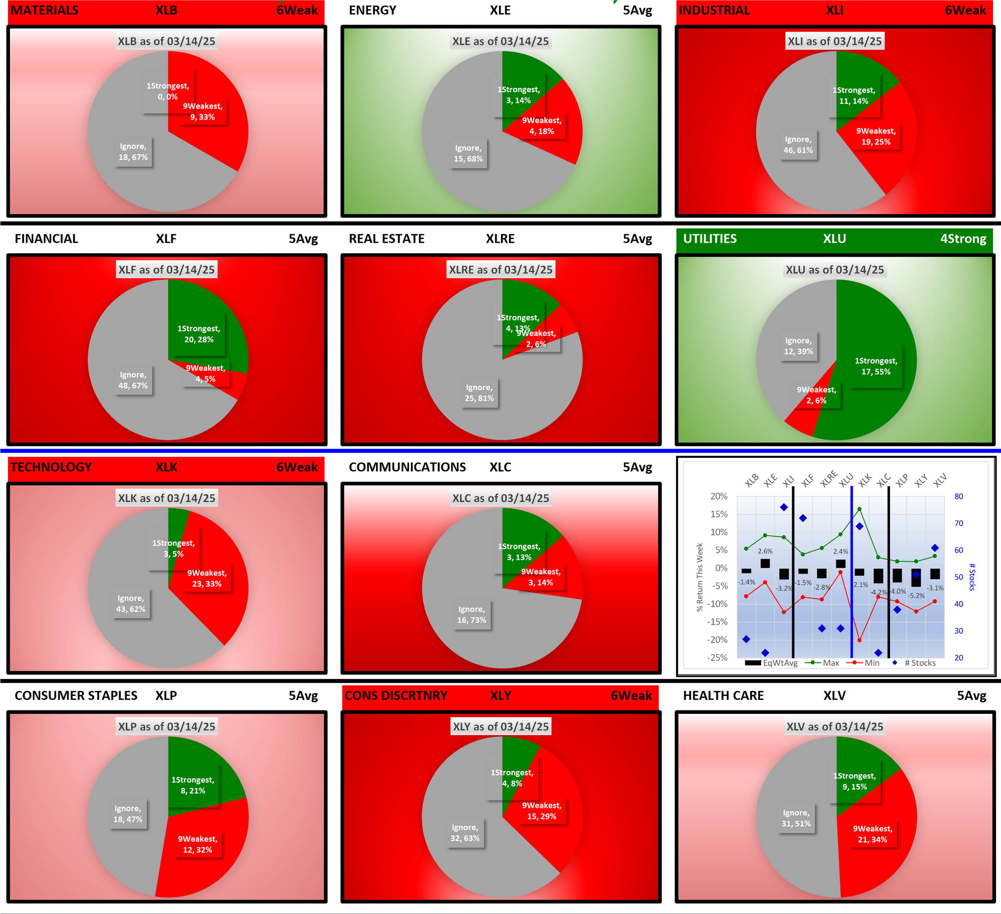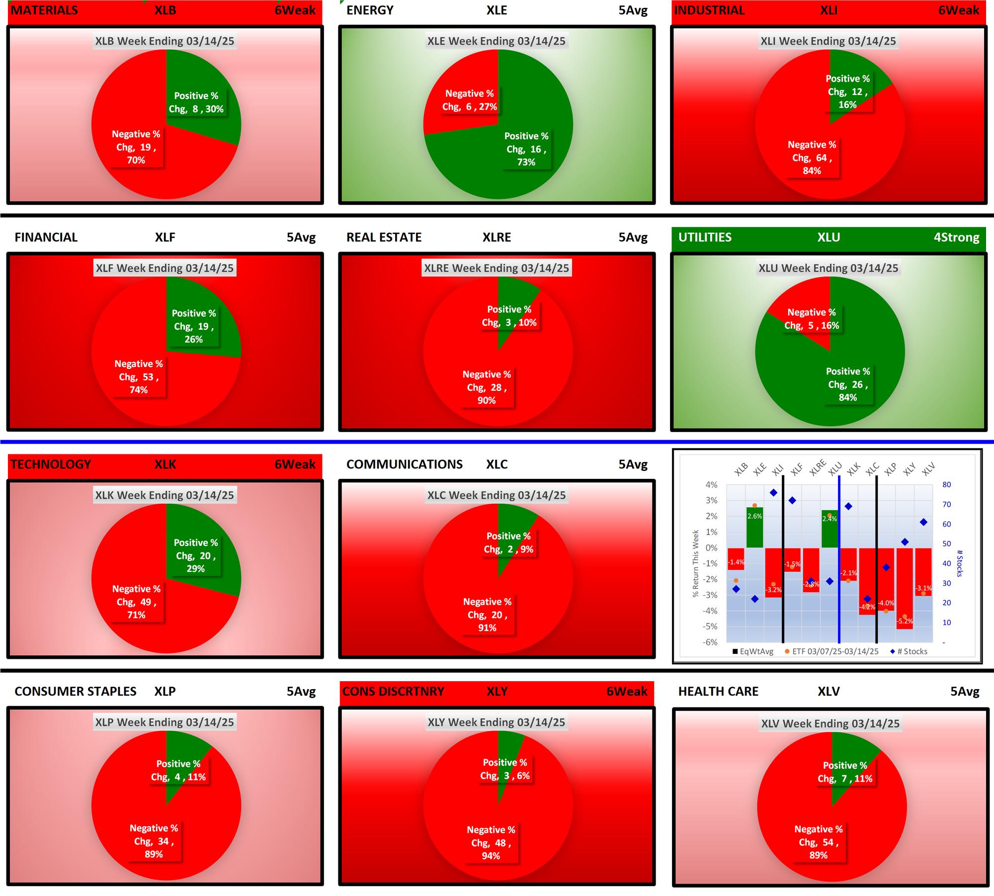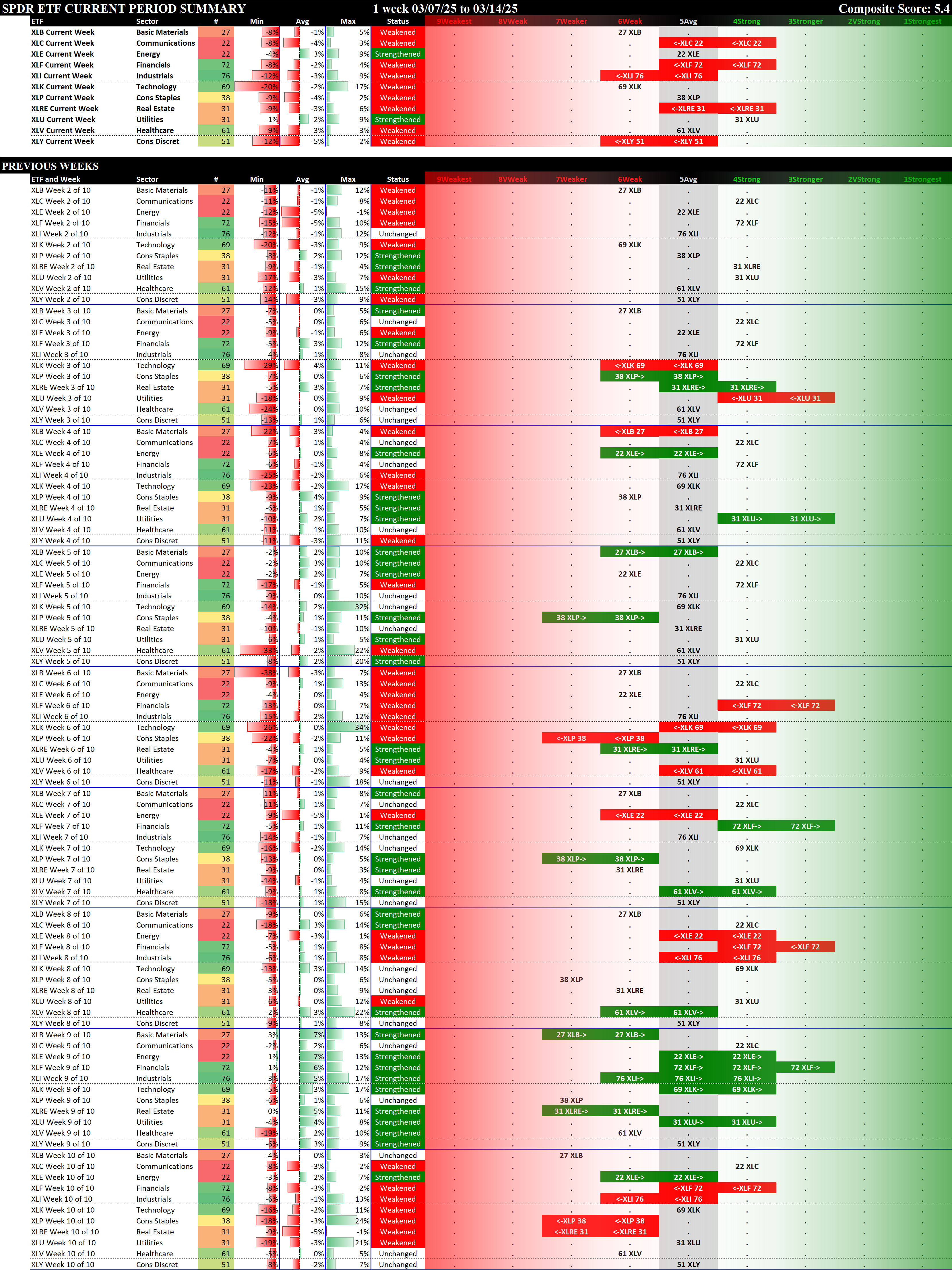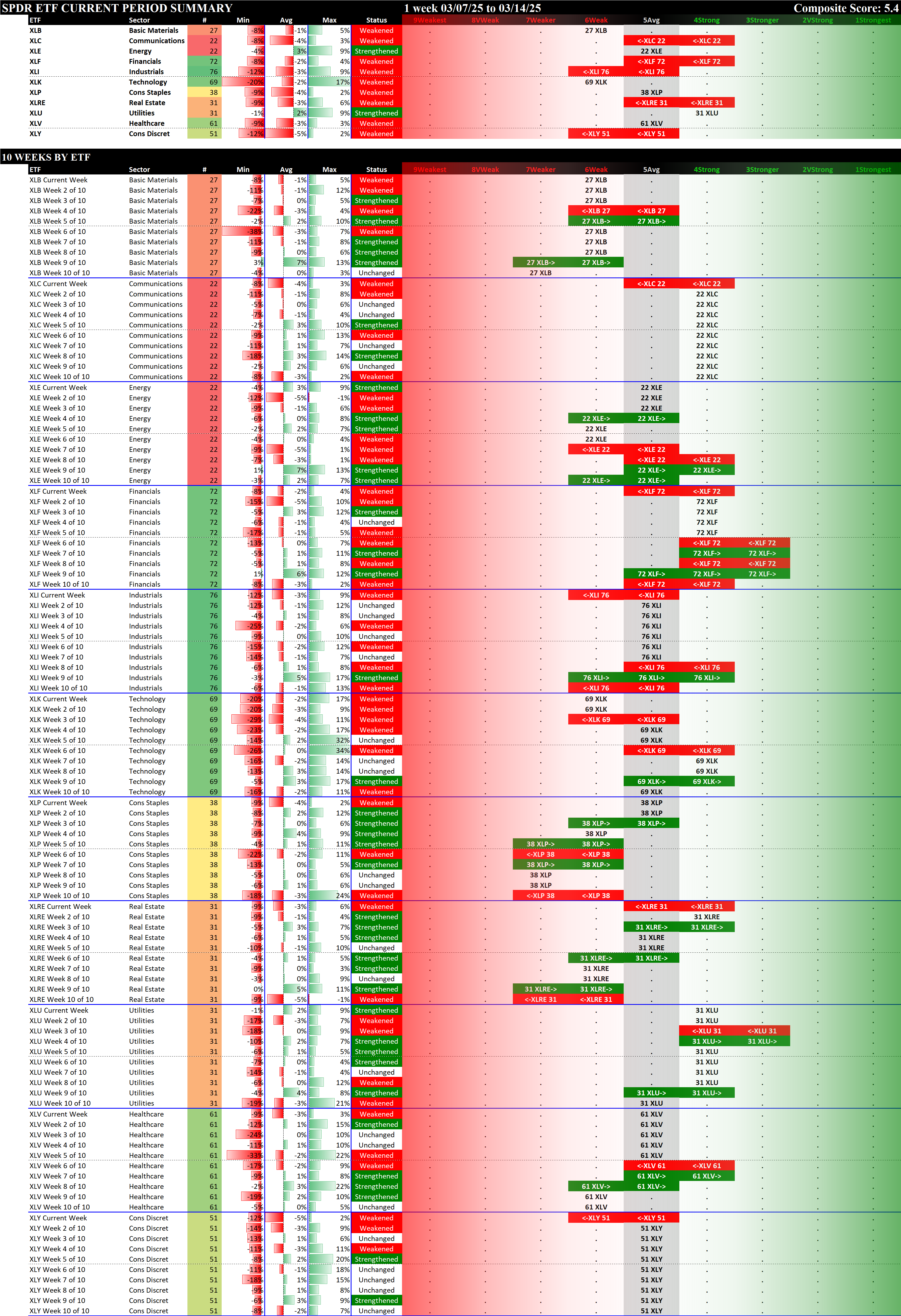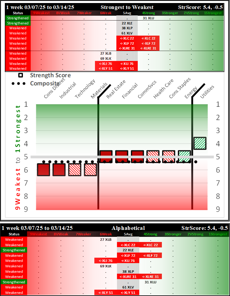 SPDR Sector ETFs Friday 2025-03-14: 5.4 Strength Score (Weakened -0.5)