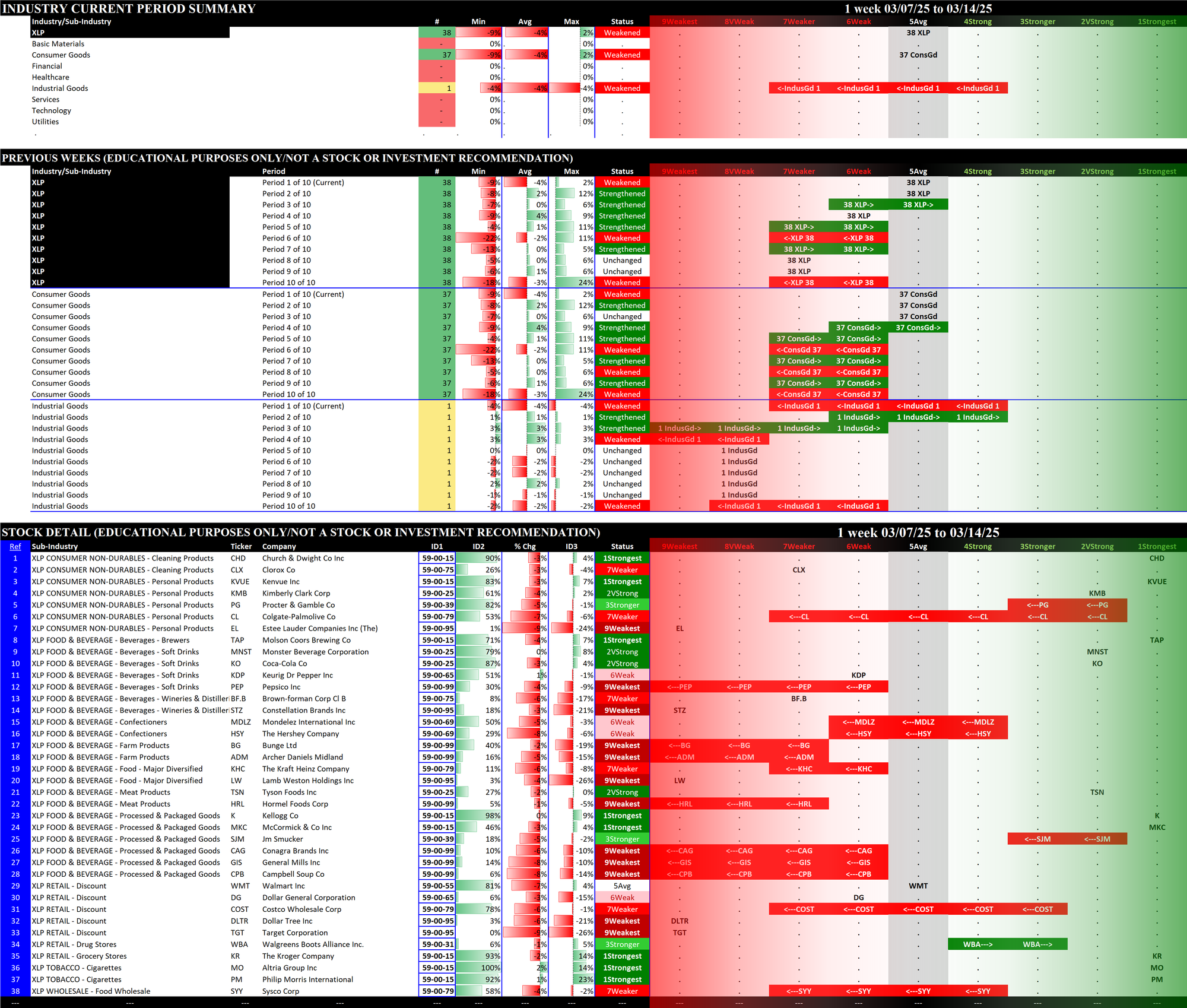 02/28/2025 = Weakened, 03/07/2025 = Unchanged, 03/14/2025 = Weakened.