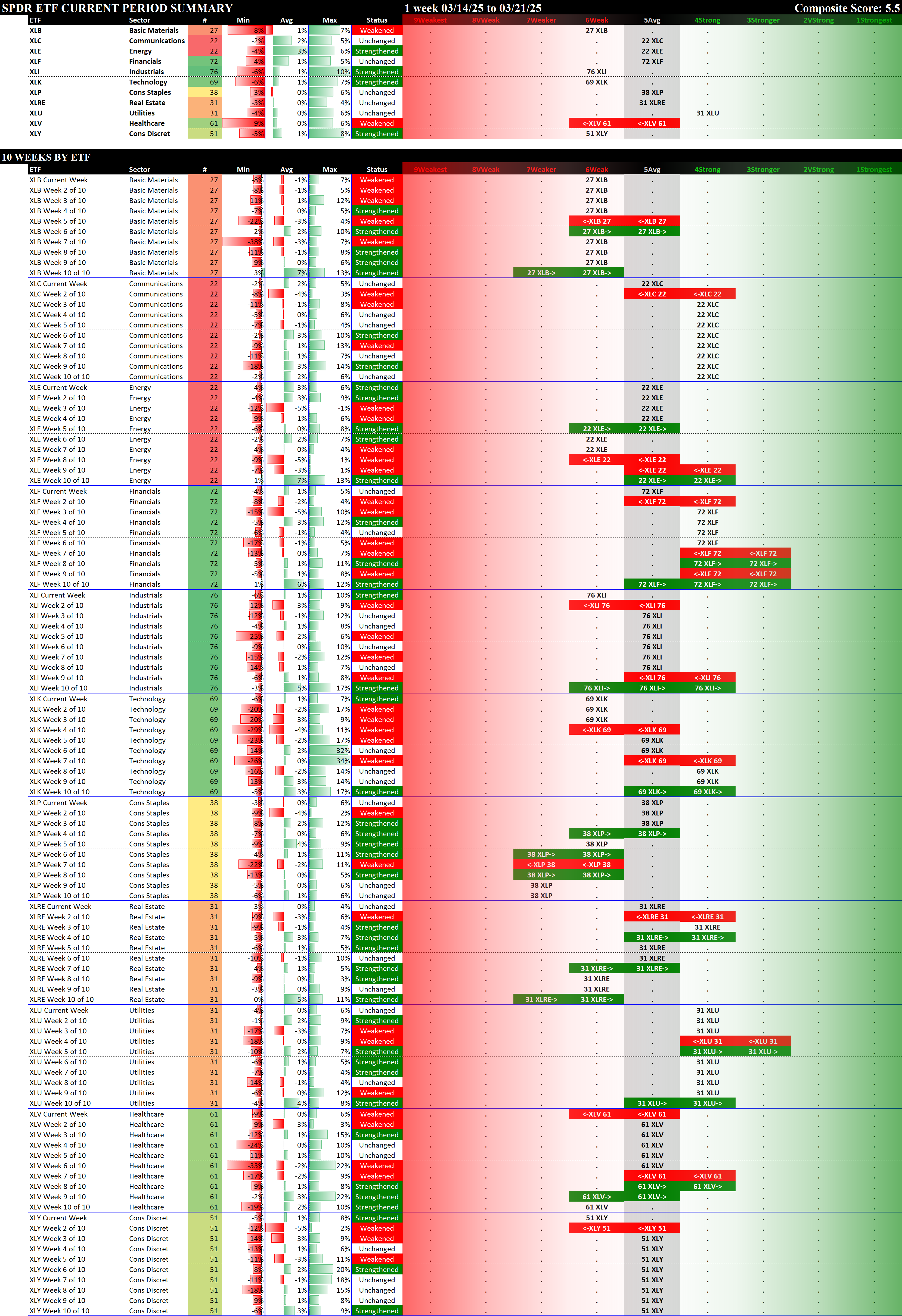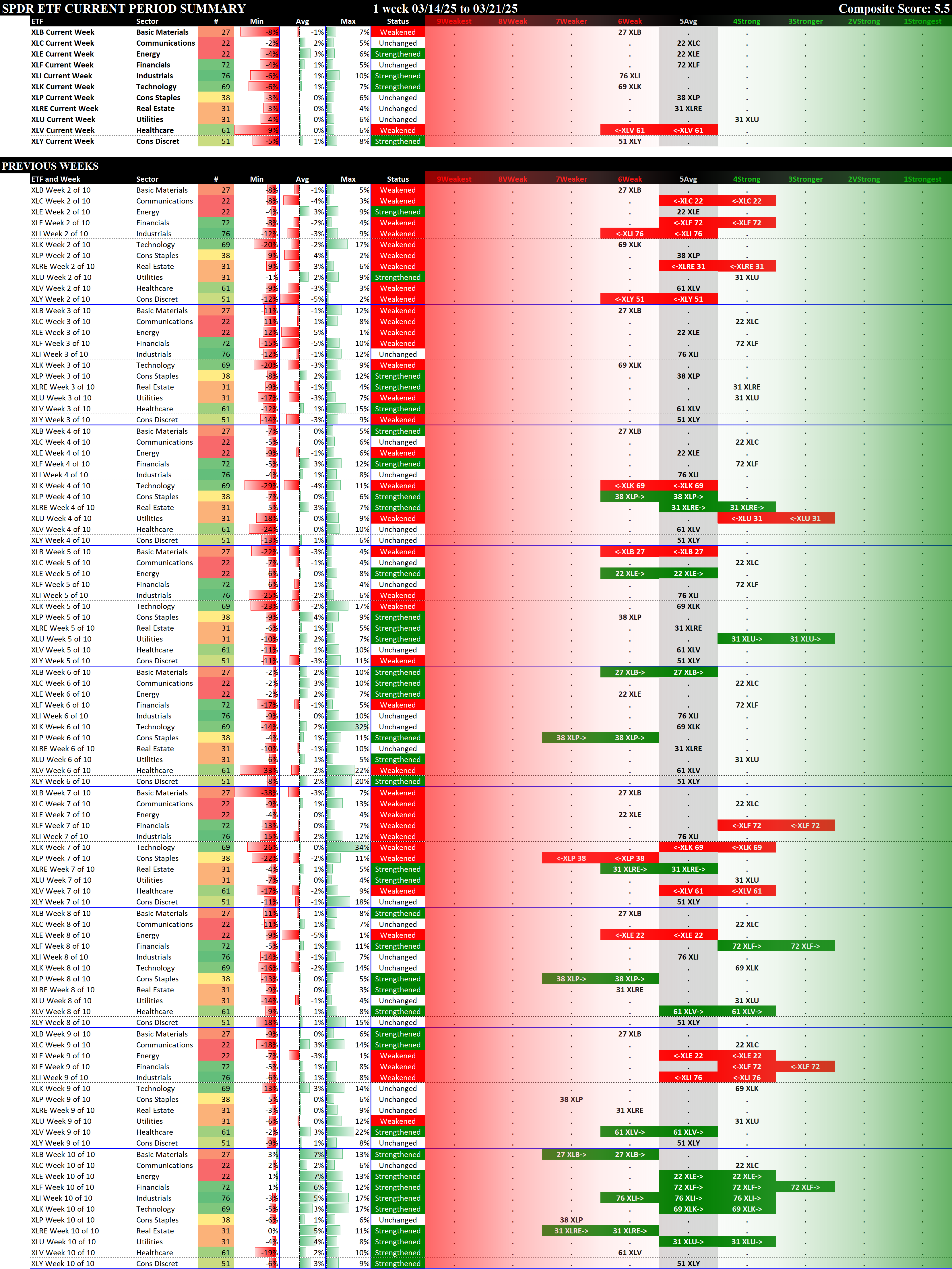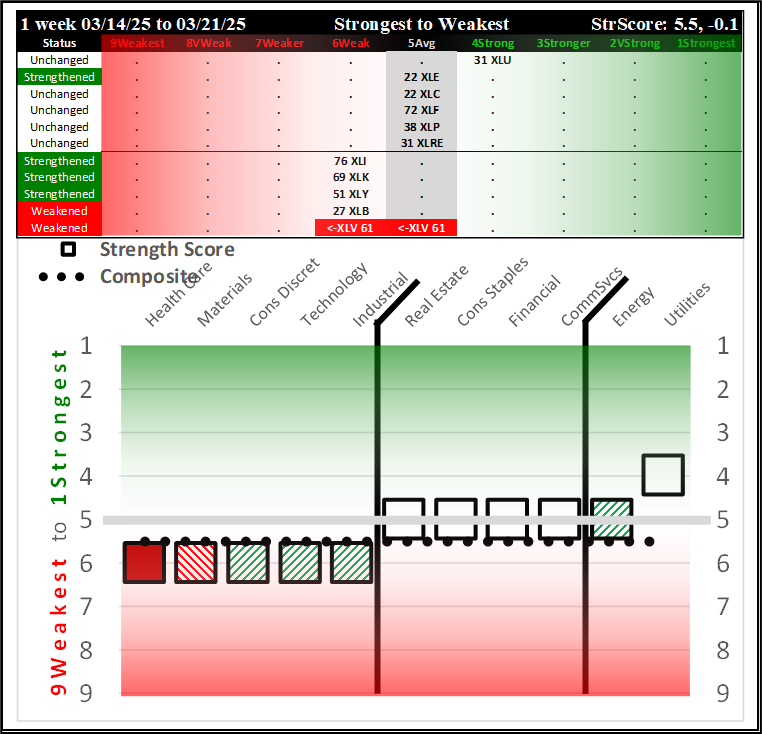 SPDR Sector ETFs Fri 2025-03-21: 5.5 Strength Score (Weakened -0.1)