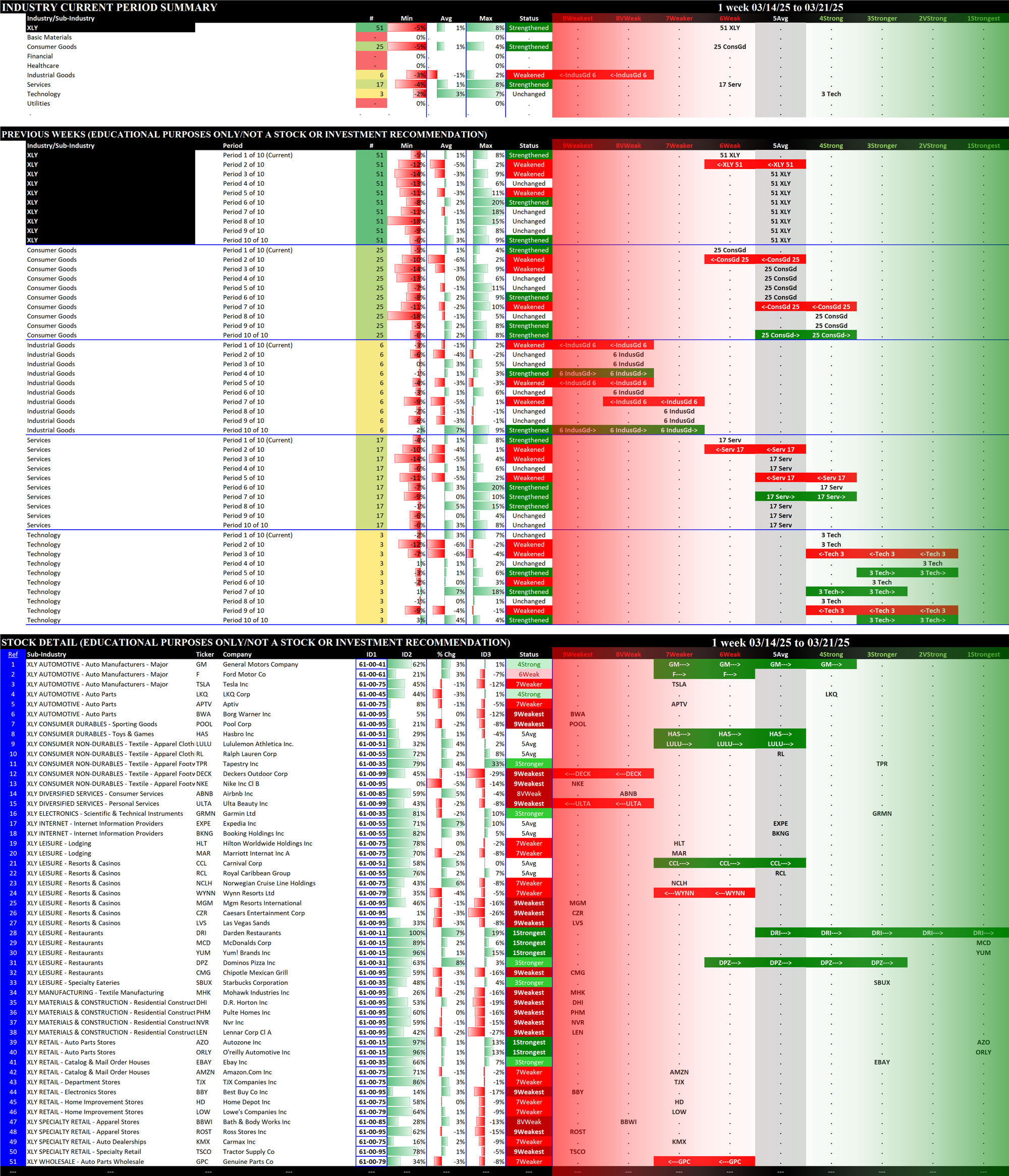 2.11 XLY Consumer Discretionary (51 stocks, mid-sized/large), Strengthened at 6Weak = tied for WORST