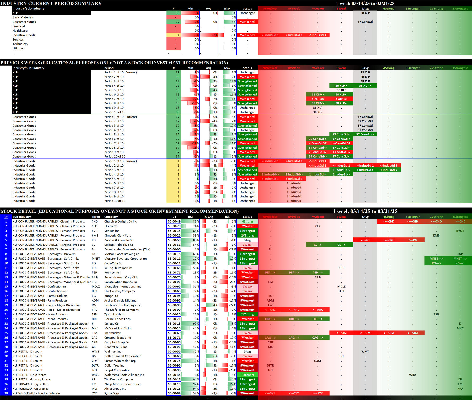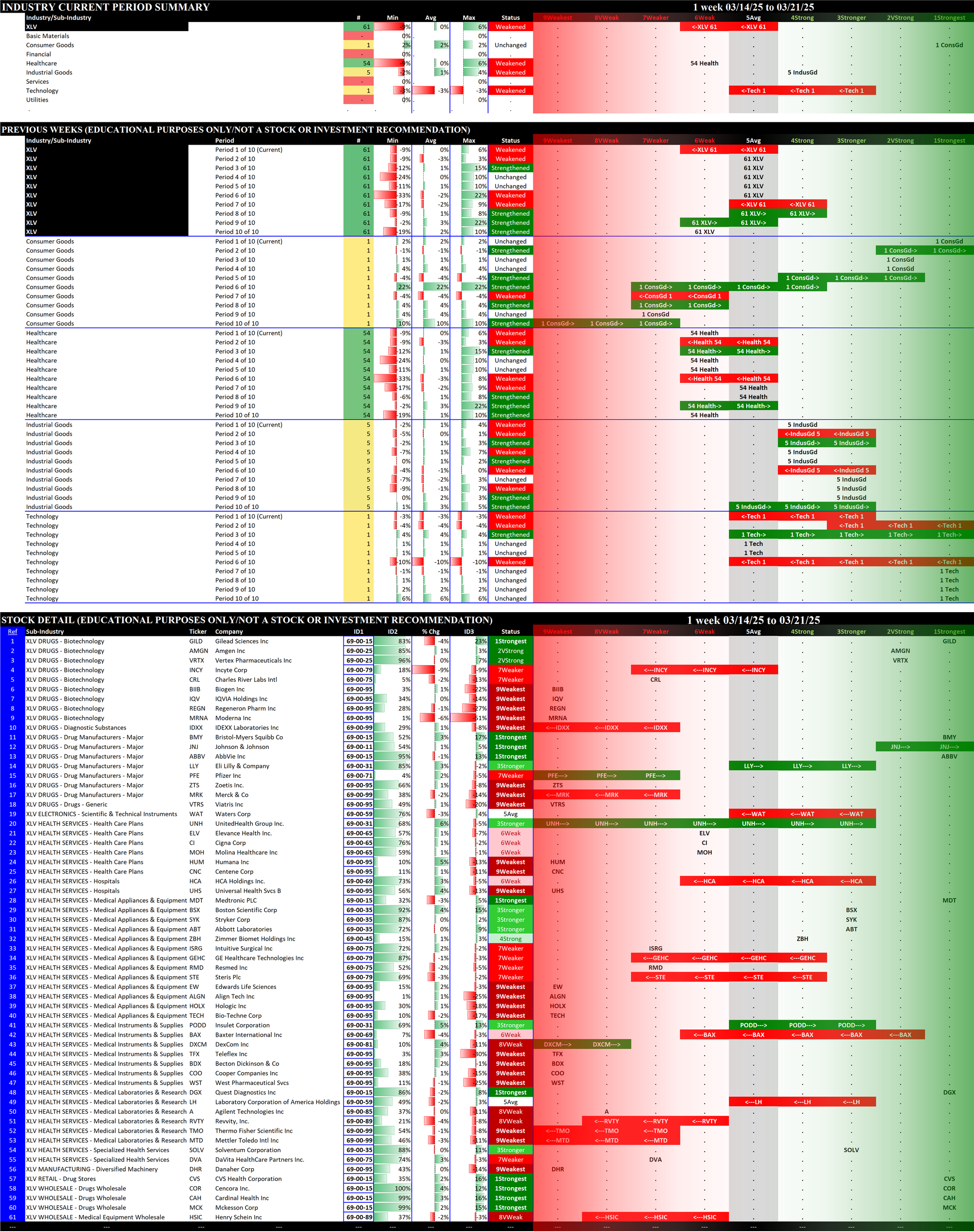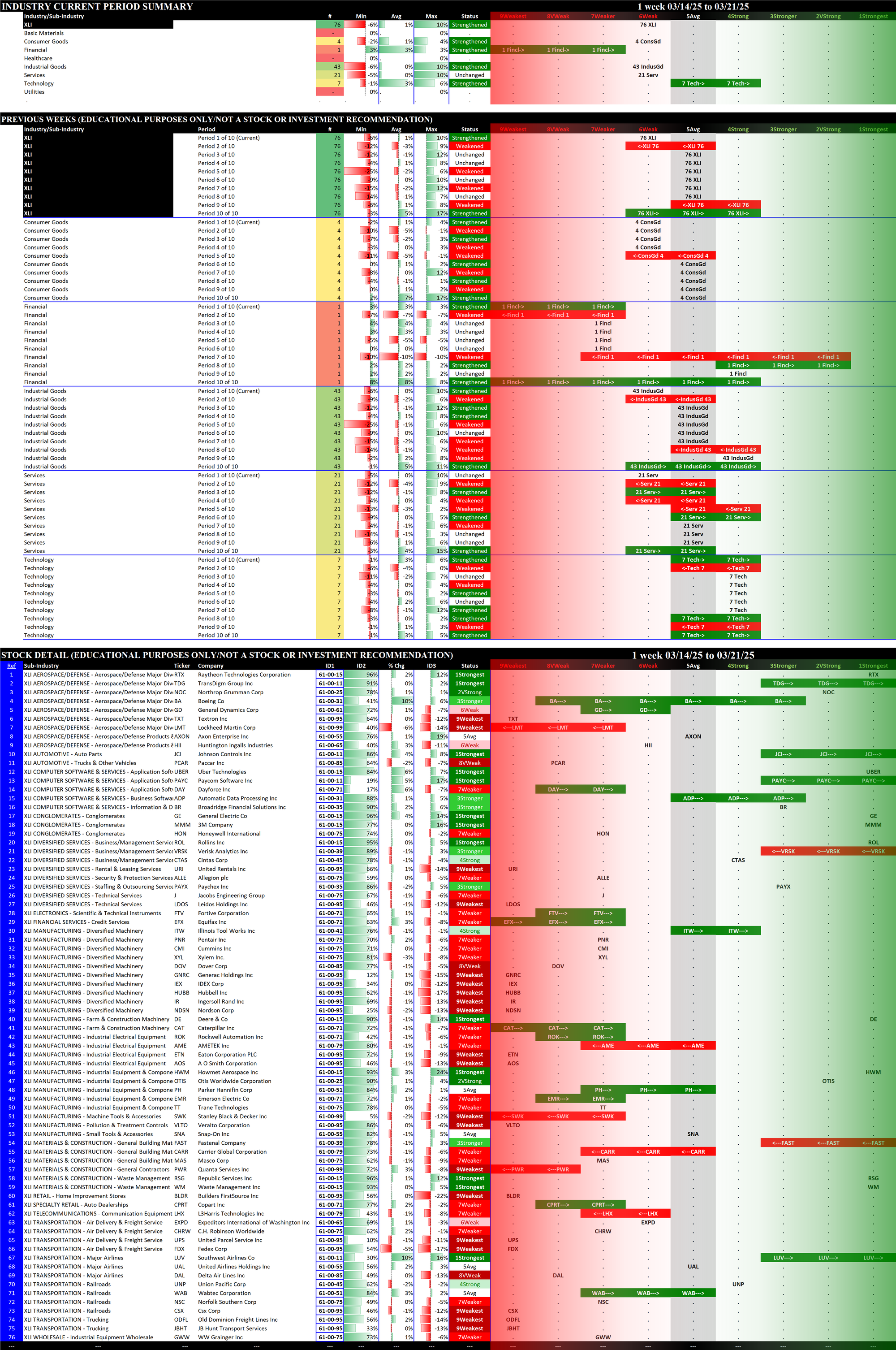 2.5 XLI Industrial (76 stocks, large), Strengthened at 6Weak = tied for WORST