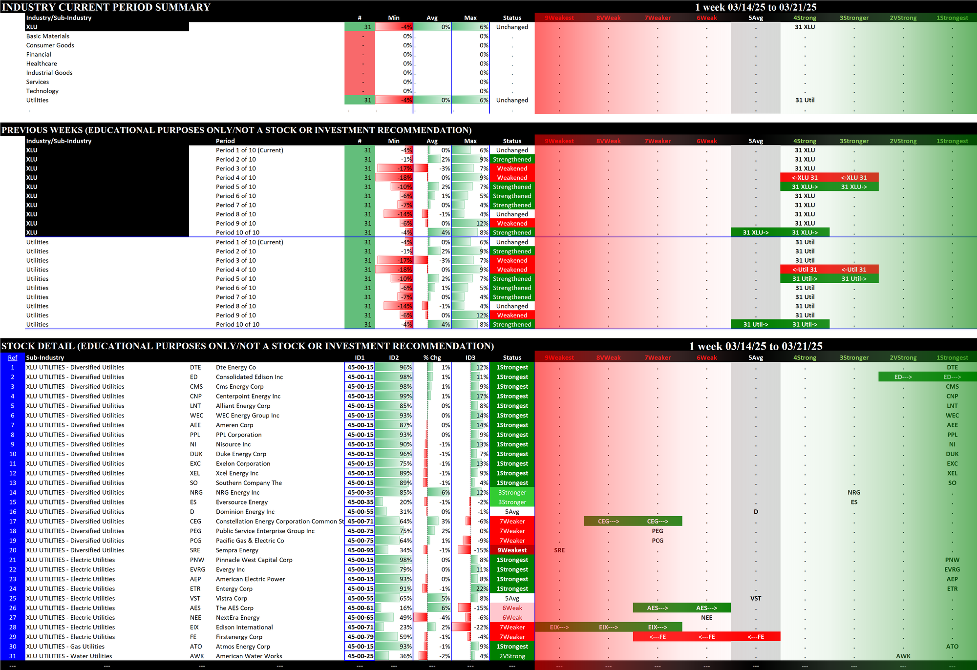 2.9 XLU Utilities (31 stocks, small/mid-sized), Unchanged at 4Strong = BEST