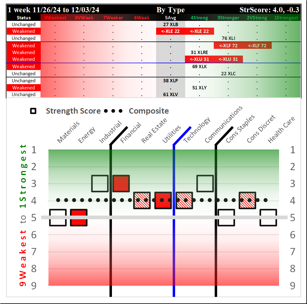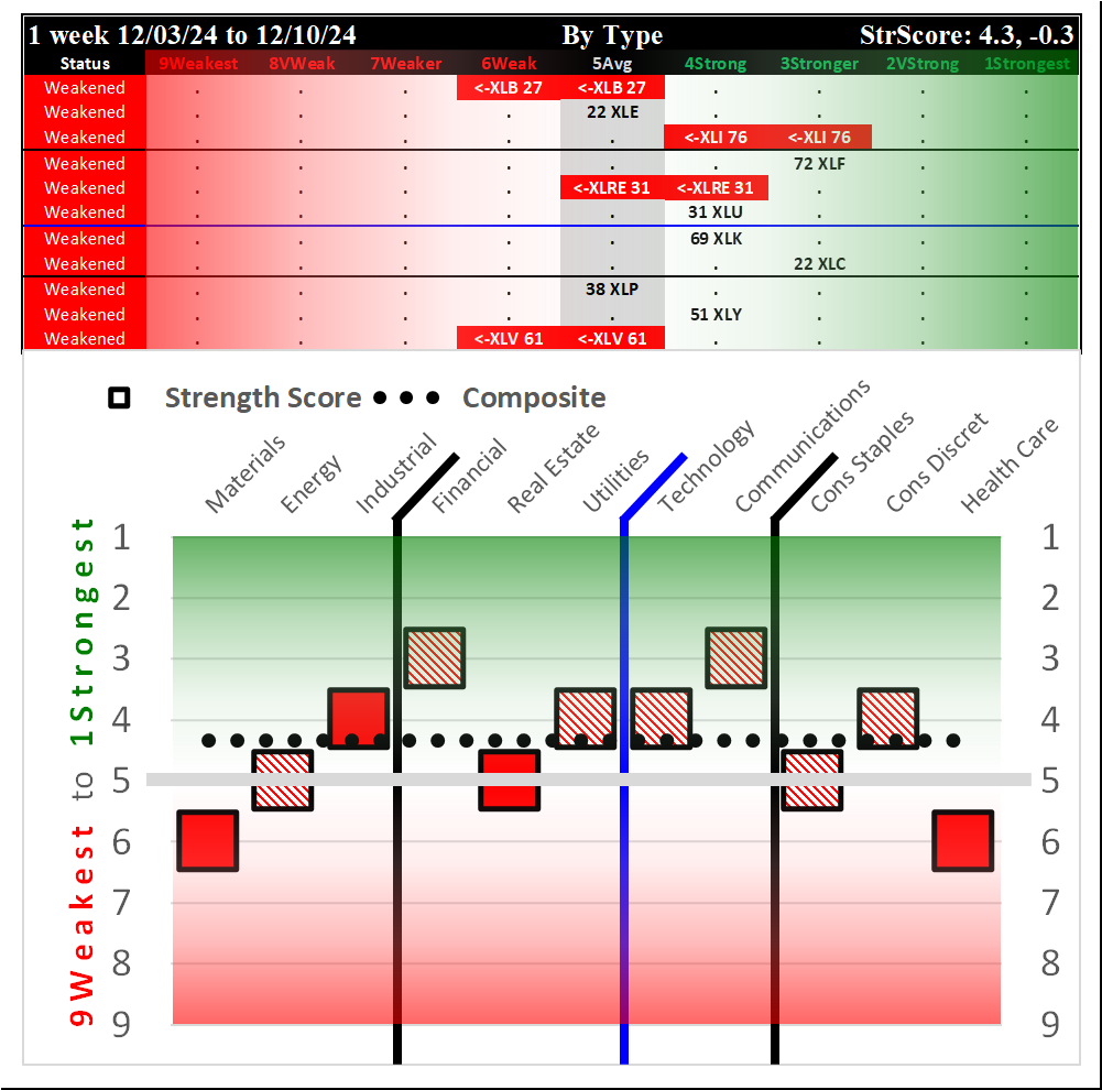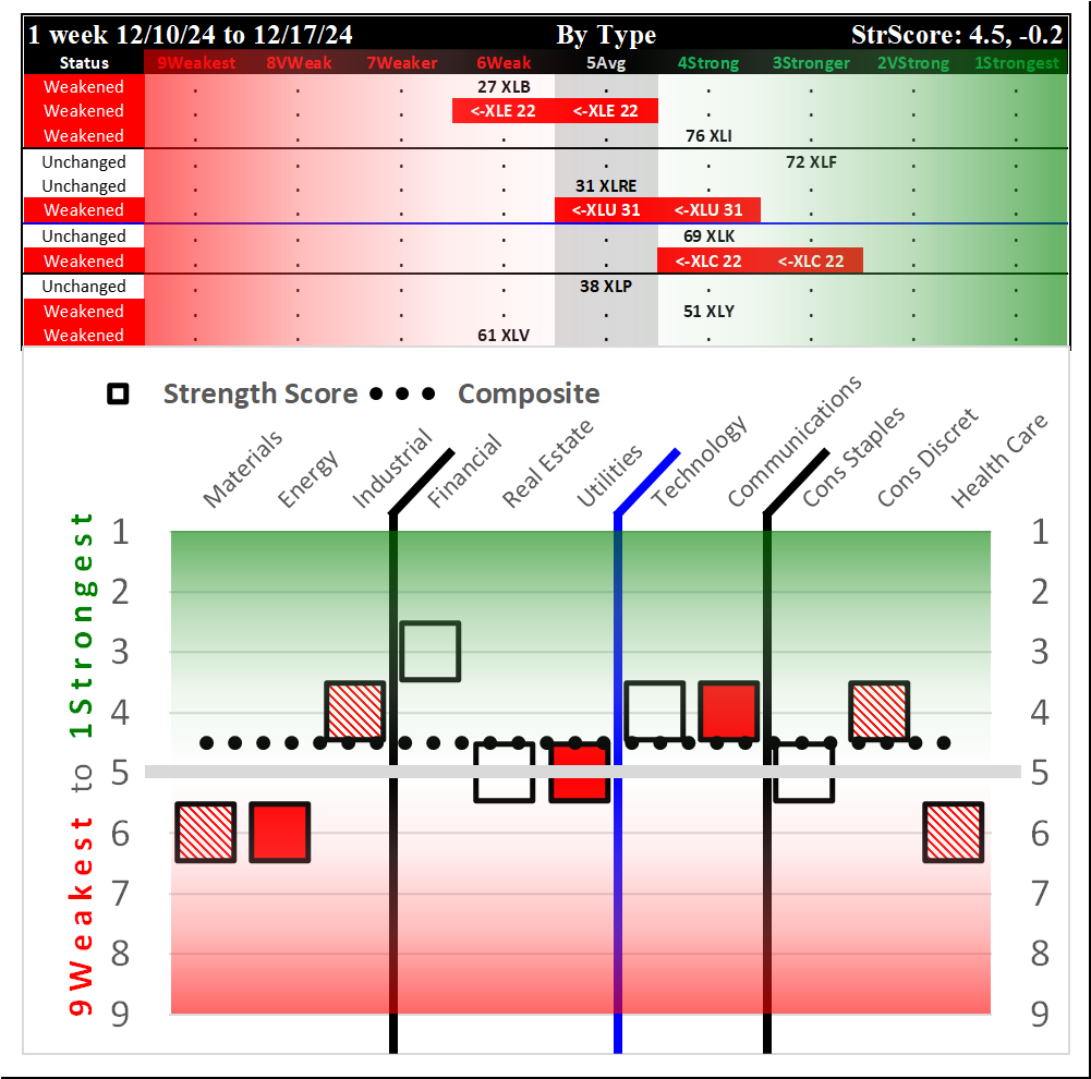 SMO Exclusive: SPDR Sector ETFs Strength Report Tuesday 2024-12-17 Weakened -0.2 to 4.5 Strength Score