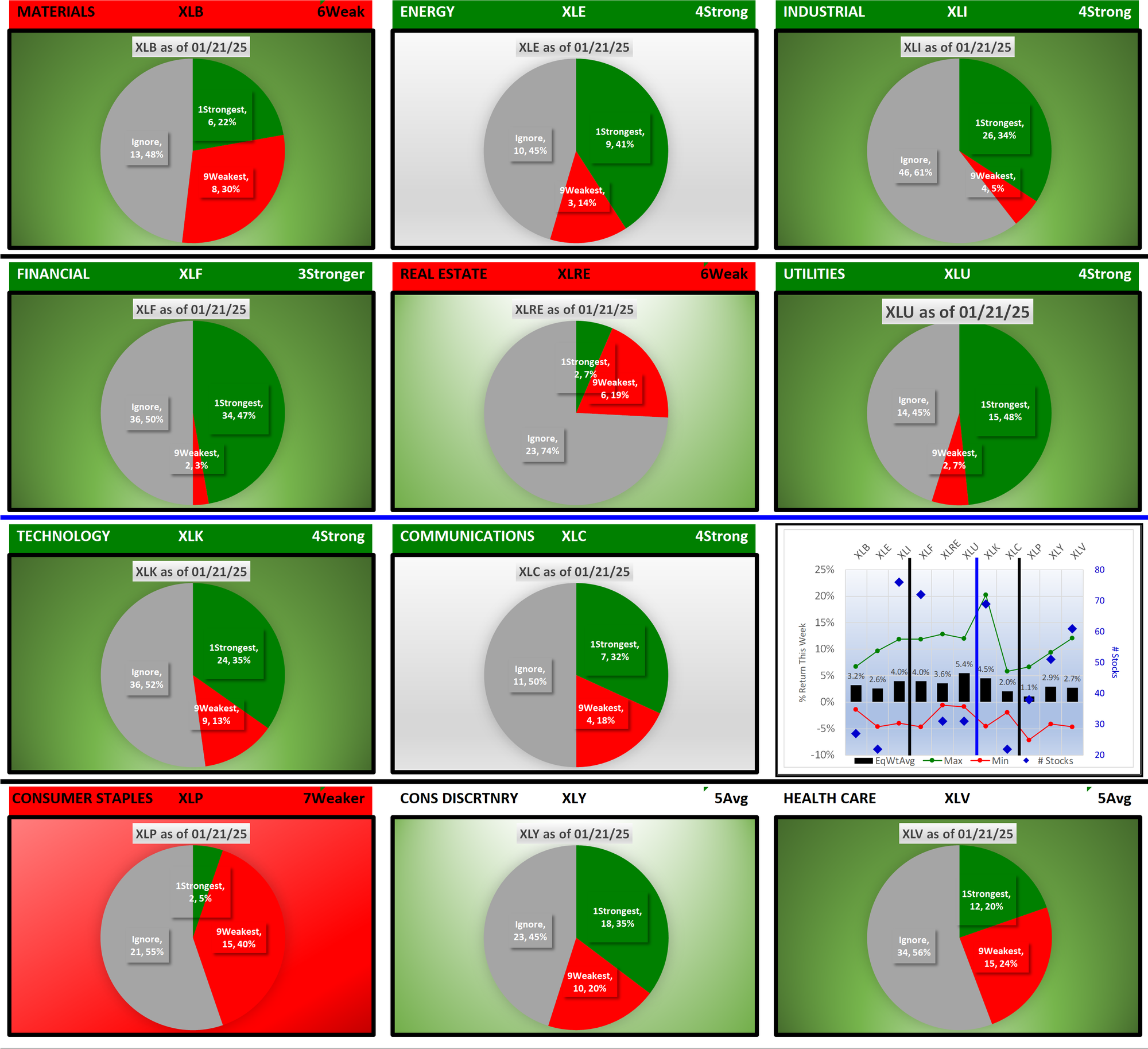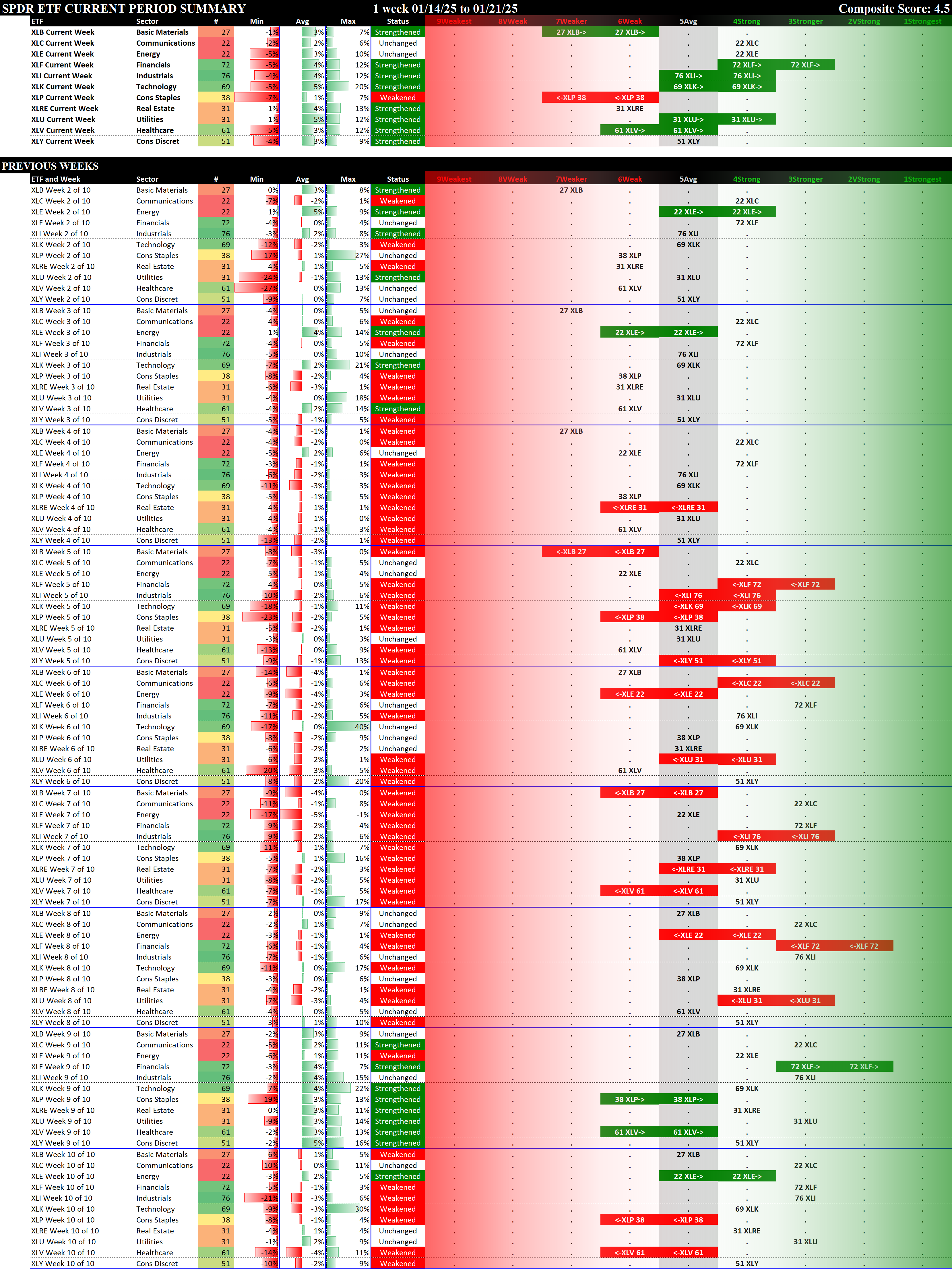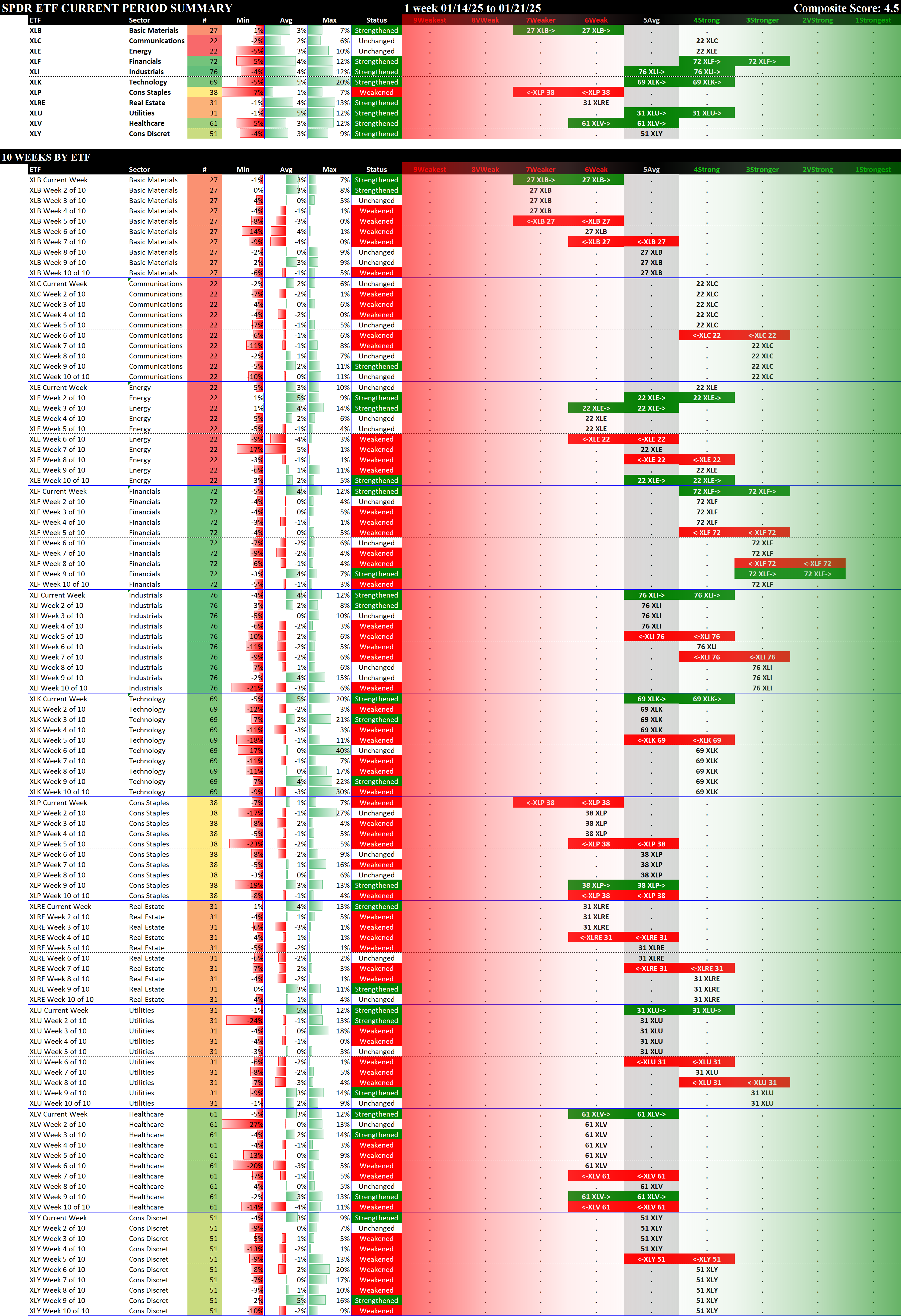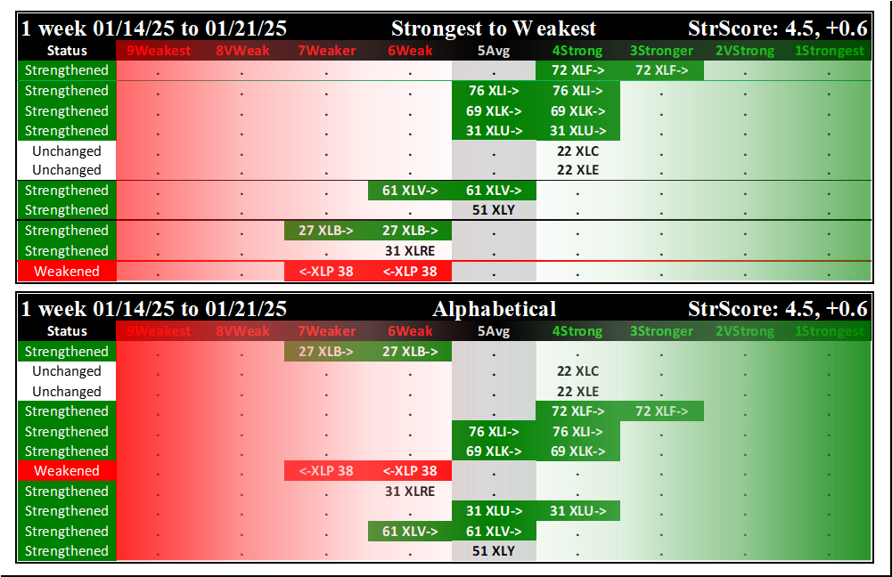 SMO Exclusive: SPDR Sector ETFs Strength Report Tuesday 2025-01-21 Strengthened +0.6 to 4.5 Strength Score