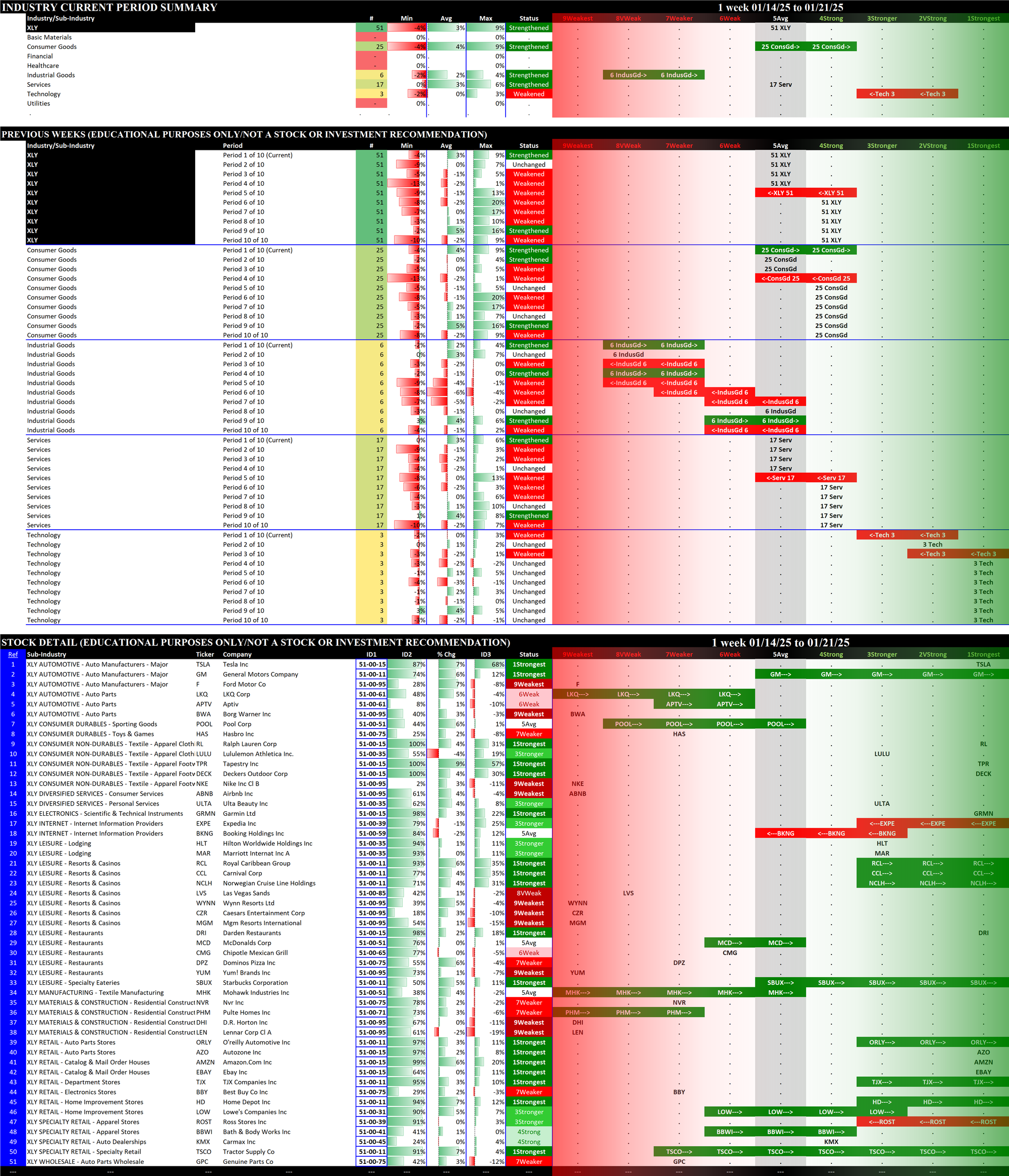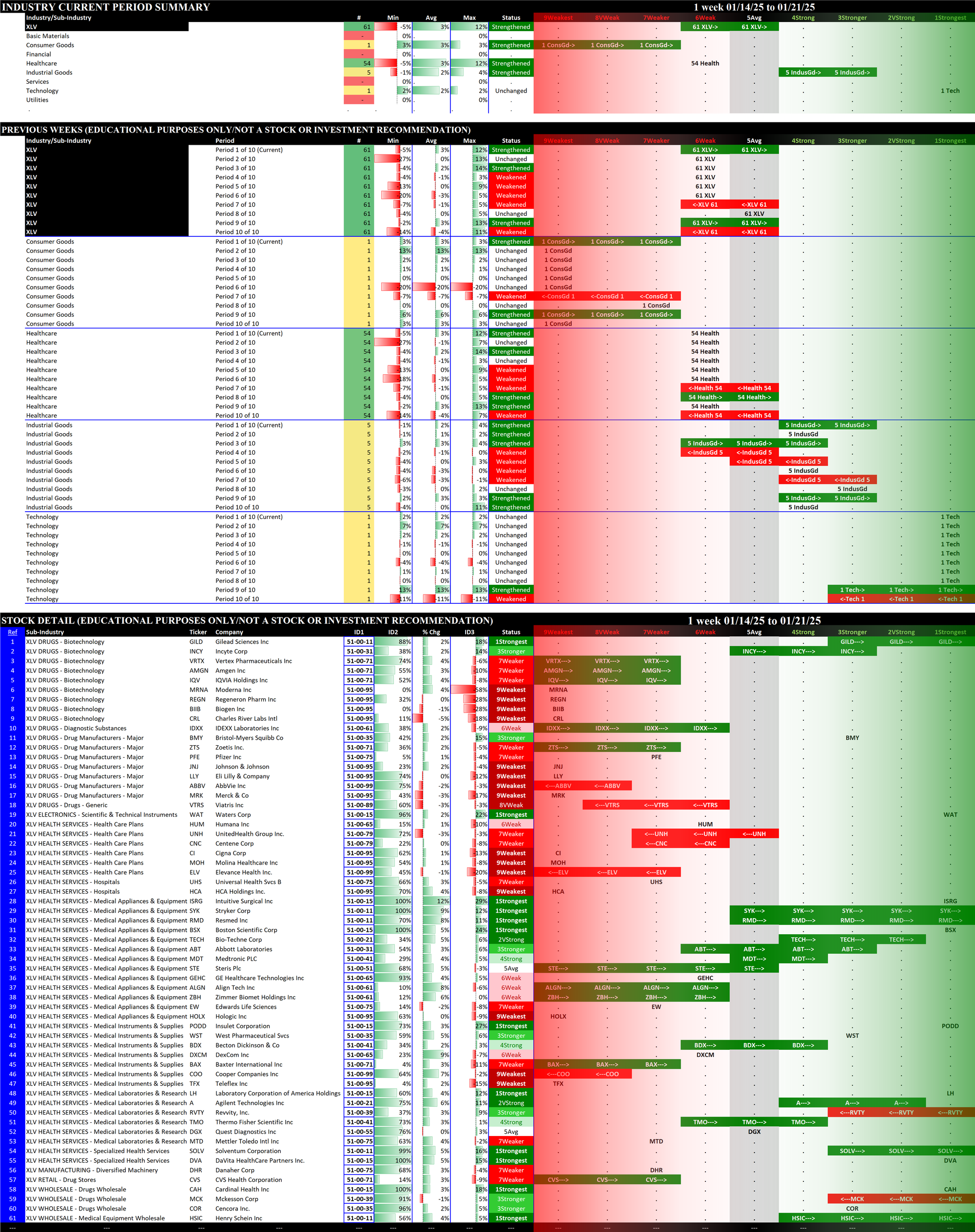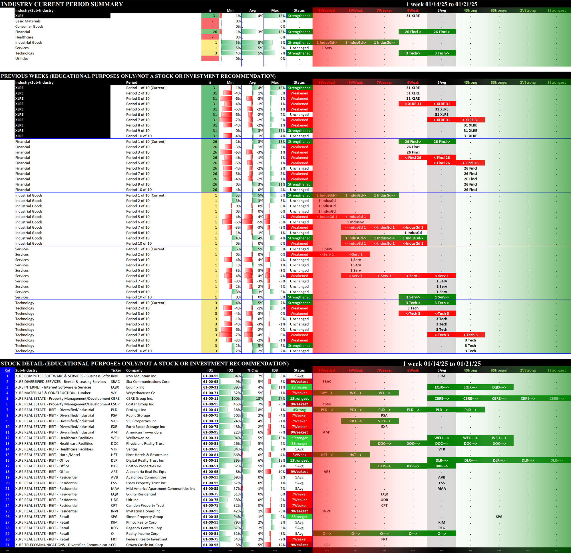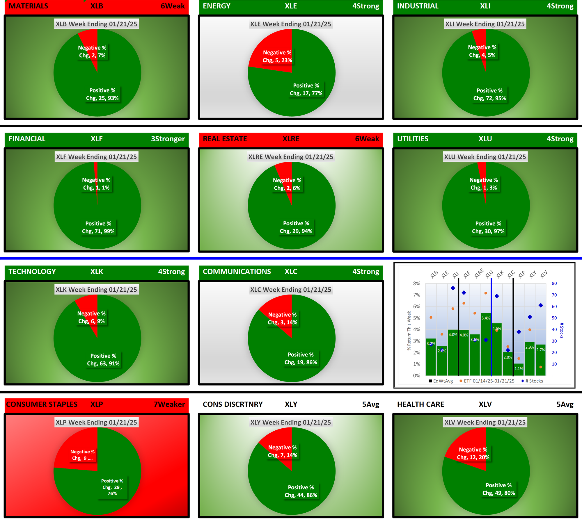 SMO Exclusive: SPDR Sector ETFs Strength Report Tuesday 2025-01-21 Strengthened +0.6 to 4.5 Strength Score