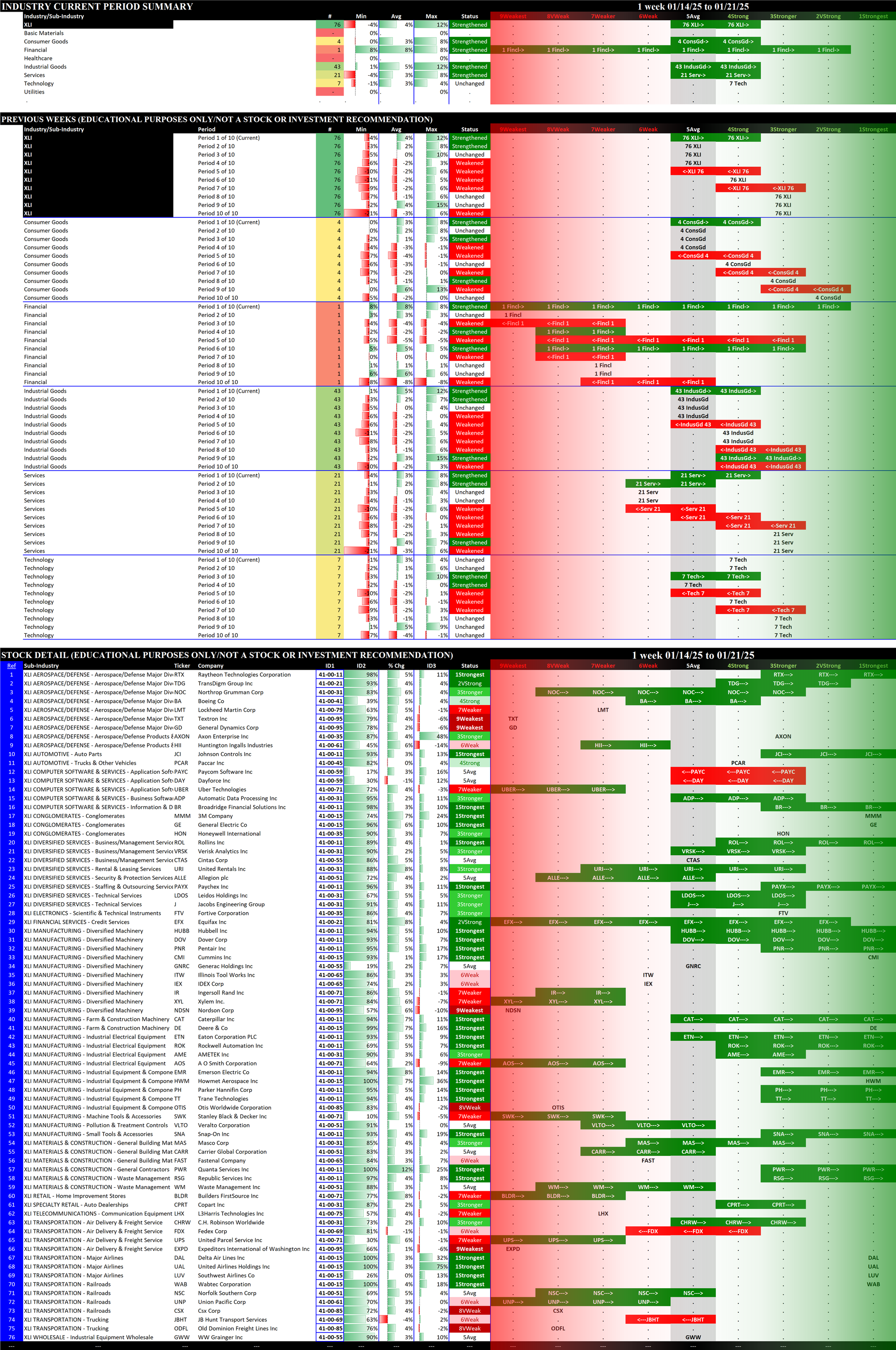 2.5 XLI Industrial (76 stocks, large), STRENGTHENED RATING TO 4Strong