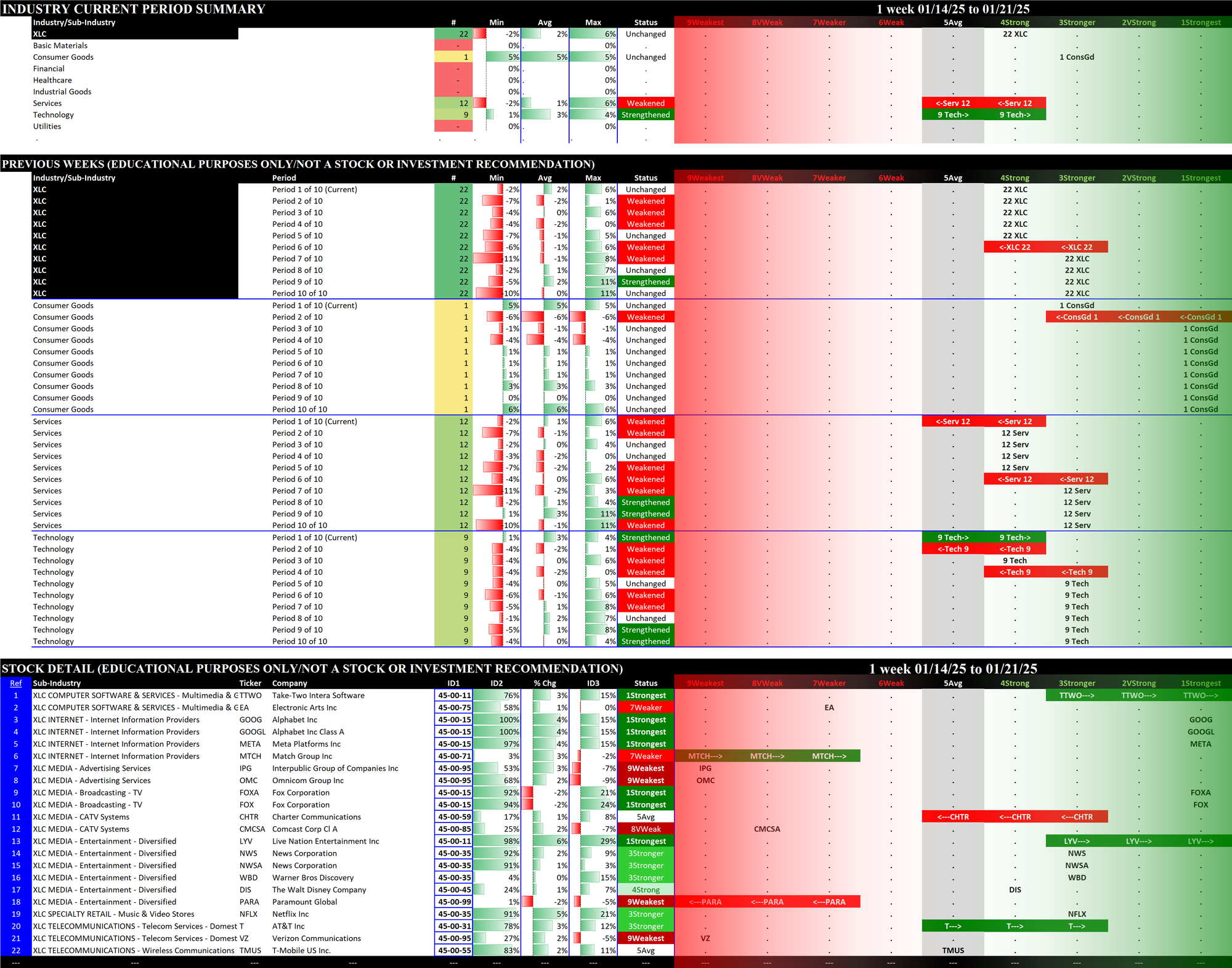 2.2 XLC Communication Services (22 stocks, small), Unchanged at 4Strong